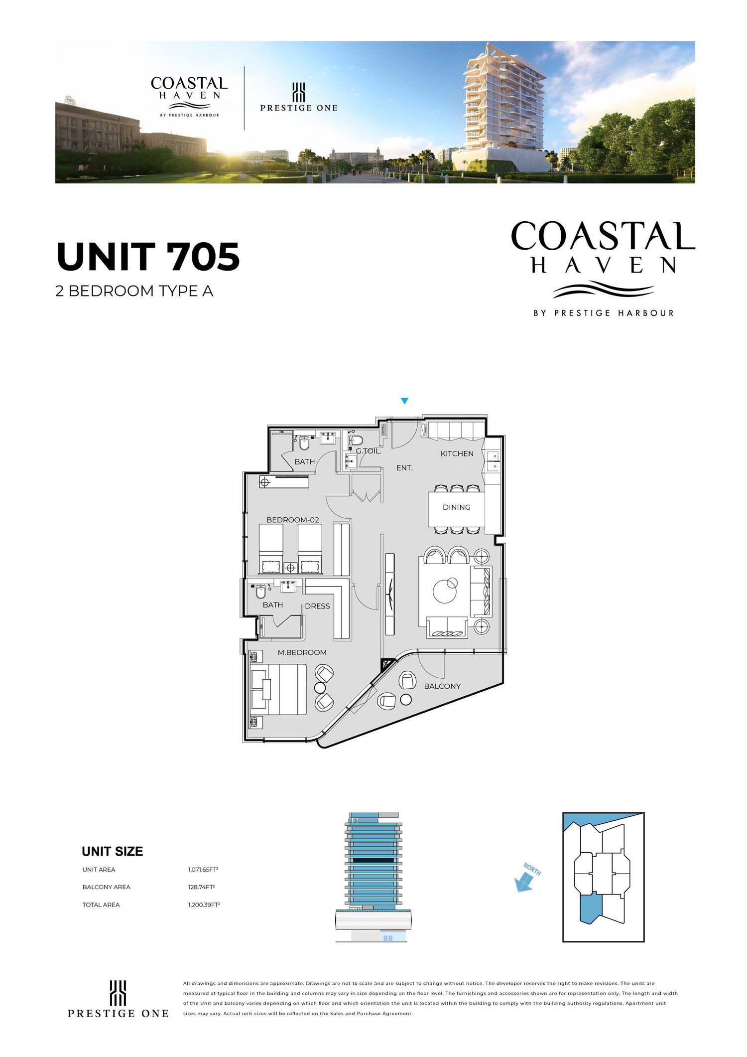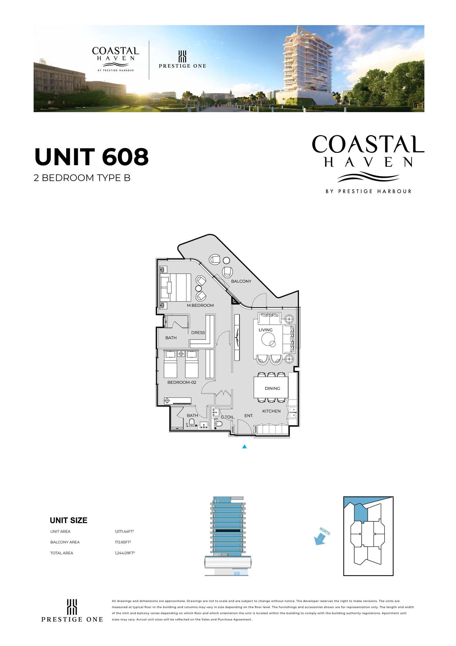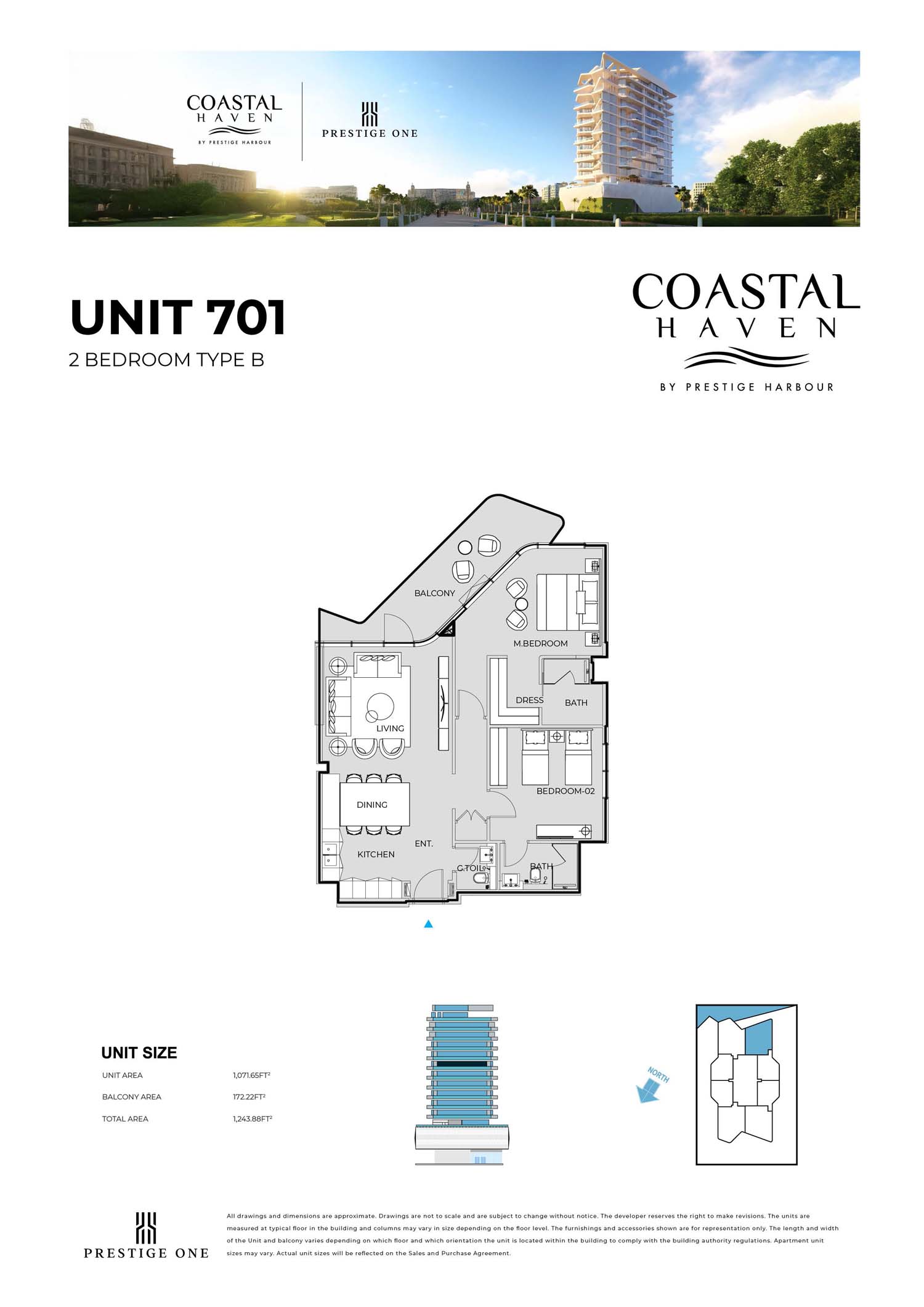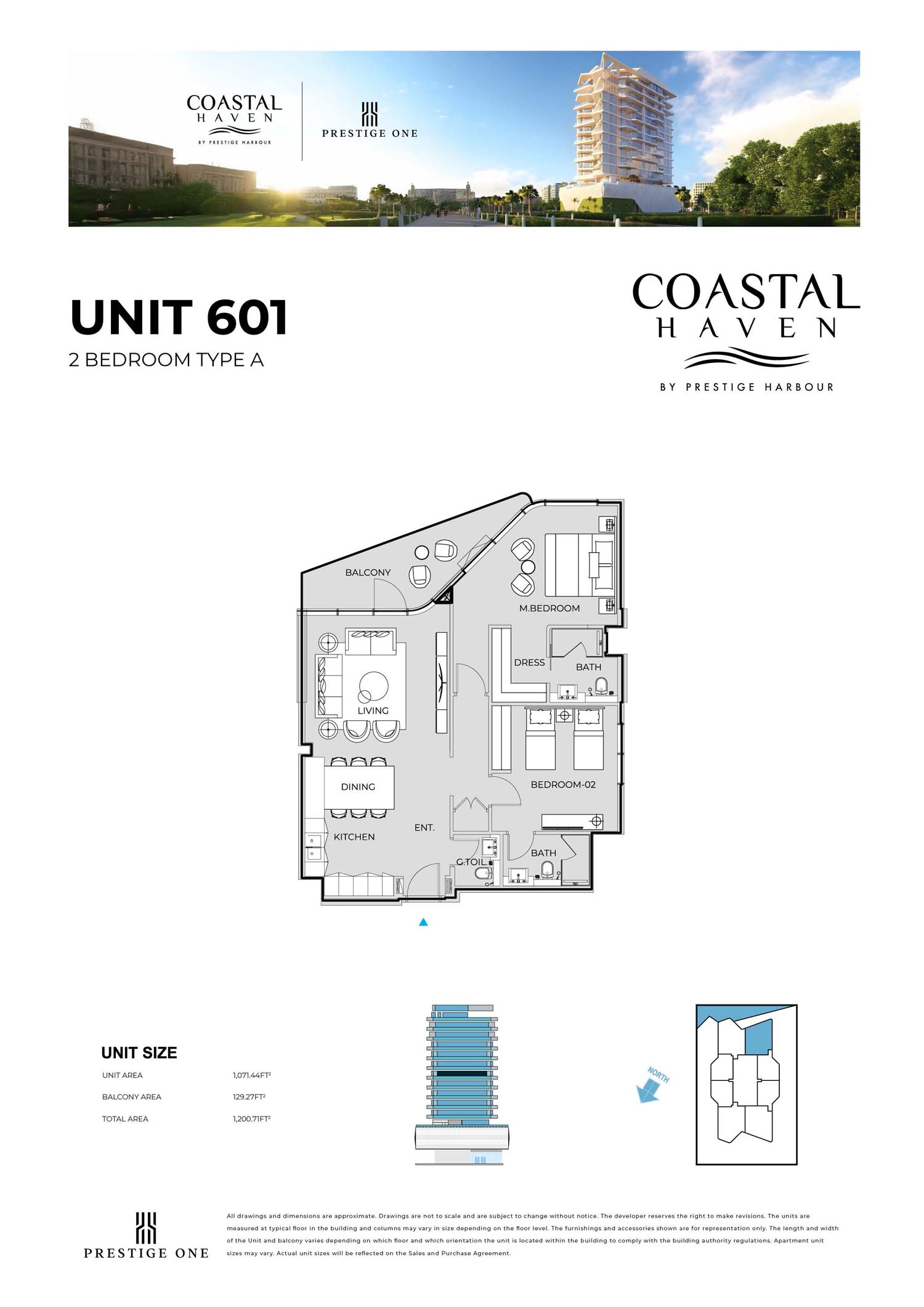 The artfully crafted floor plans of ocean-front chic and urban homes are precisely combined in the eminent Coastal Haven with spacious & inspiring interiors. This bespoke and captivating mid-rise address encompasses an ideal range of spacious homes, catering to diverse needs and choices of the buyers. The stunning design of each unit ensures the seamless connection of opulent indoors to the ever-changing & scenic nature of the shore. Here, living and bedrooms are furnished with large windows for a bright ambience, amazing views and easy access to the balconies.