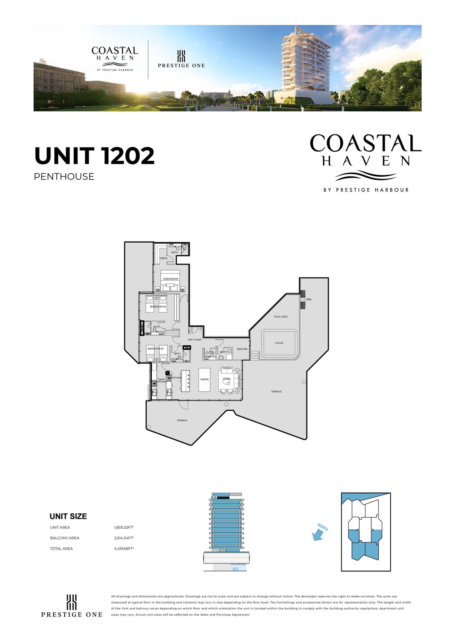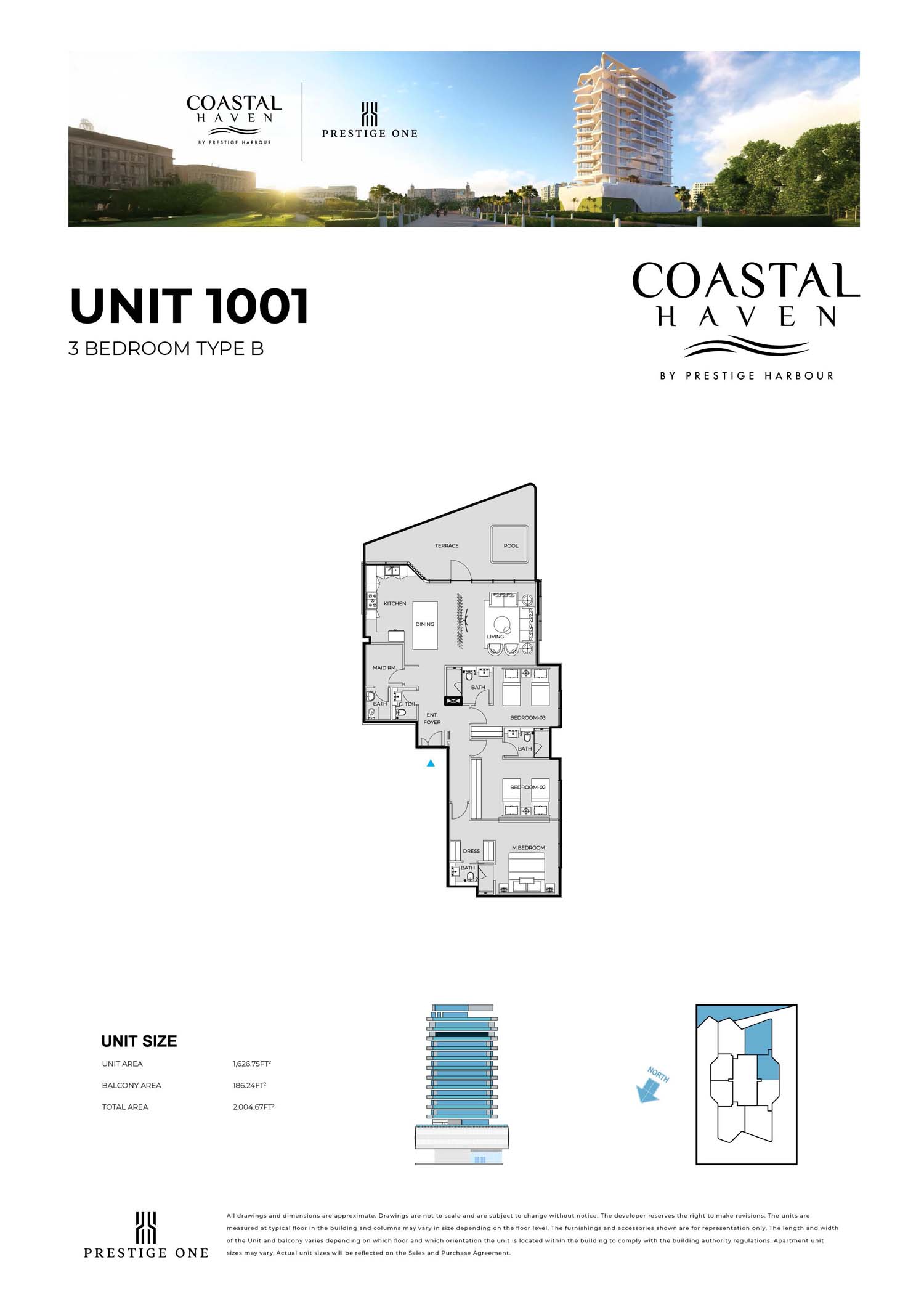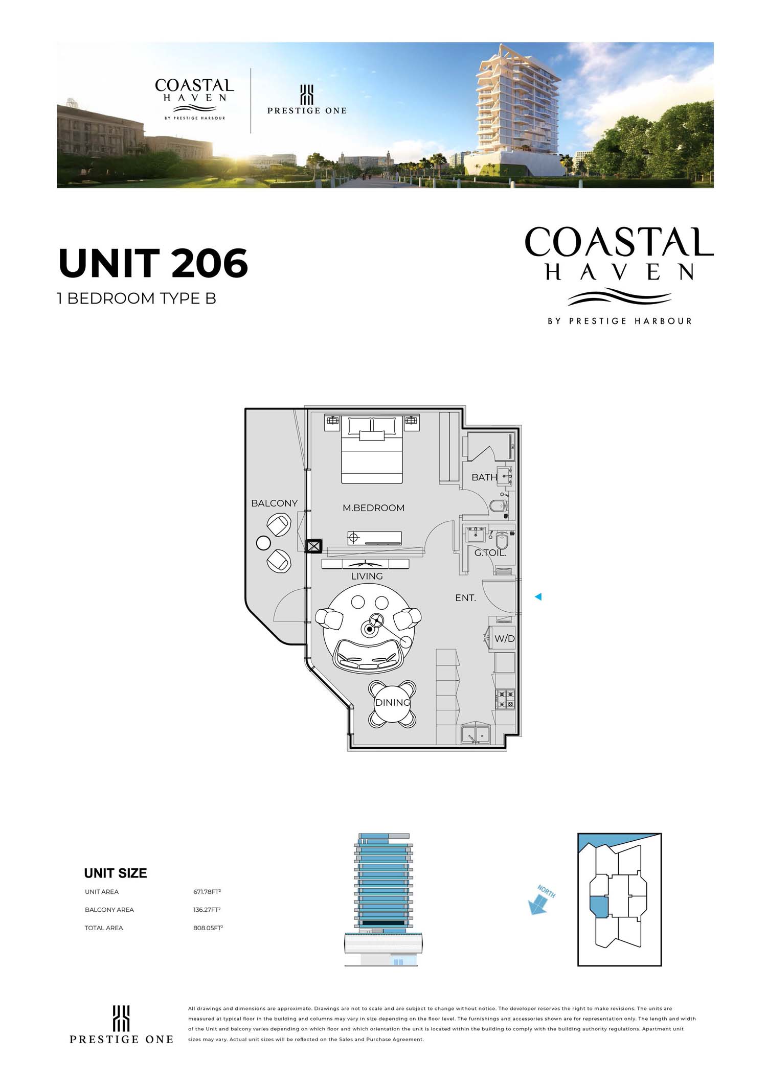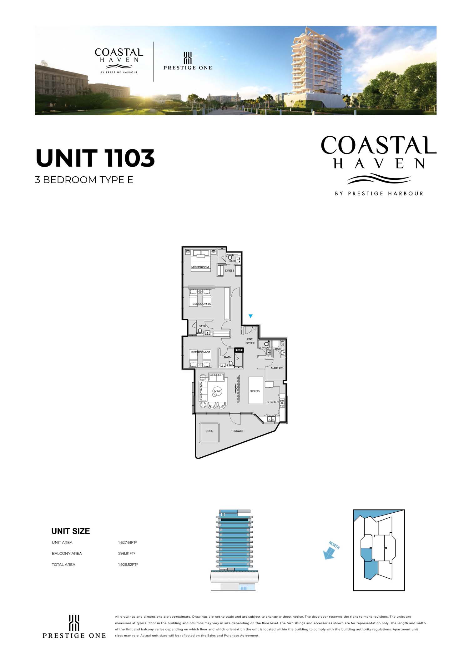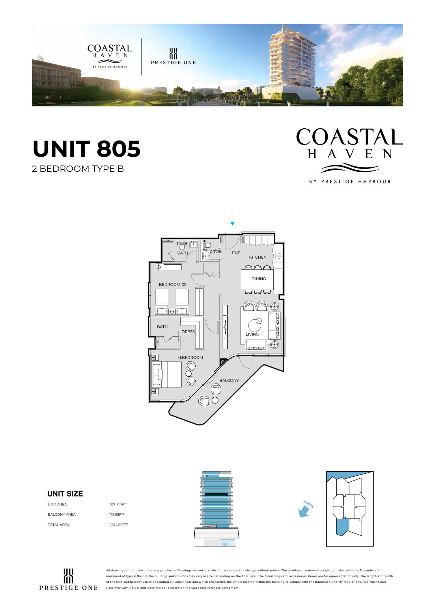 The artfully crafted floor plans of ocean-front chic and urban homes are precisely combined in the eminent Coastal Haven with spacious & inspiring interiors. This bespoke and captivating mid-rise address encompasses an ideal range of spacious homes, catering to diverse needs and choices of the buyers. The stunning design of each unit ensures the seamless connection of opulent indoors to the ever-changing & scenic nature of the shore. Here, living and bedrooms are furnished with large windows for a bright ambience, amazing views and easy access to the balconies.