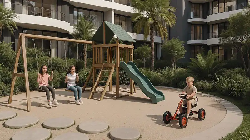 Image yourself within a master planned sanctuary of refined modern style with urban and stunning aesthetic crafted by GFS Developers in the prime Dubai Industrial City. Emerging as the latest symbol of innovation, this 6-storey residential milestone reflects a timeless architecture that is durable, robust, effortlessly functional and elegant to viewers and users. Its facade is defined by smooth and well-arranged curves, sleek lines, smooth & chic white tone, large windows, and balcony railings made of striking glass. A hand-picked series of amenities such as an entrance lobby with opulent seating area, high-speed elevators, a swimming pool, a fitness centre, a kids’ play area, and many more are finely place within it for effortless relaxation, wellness, and conveniently engaging environment.
