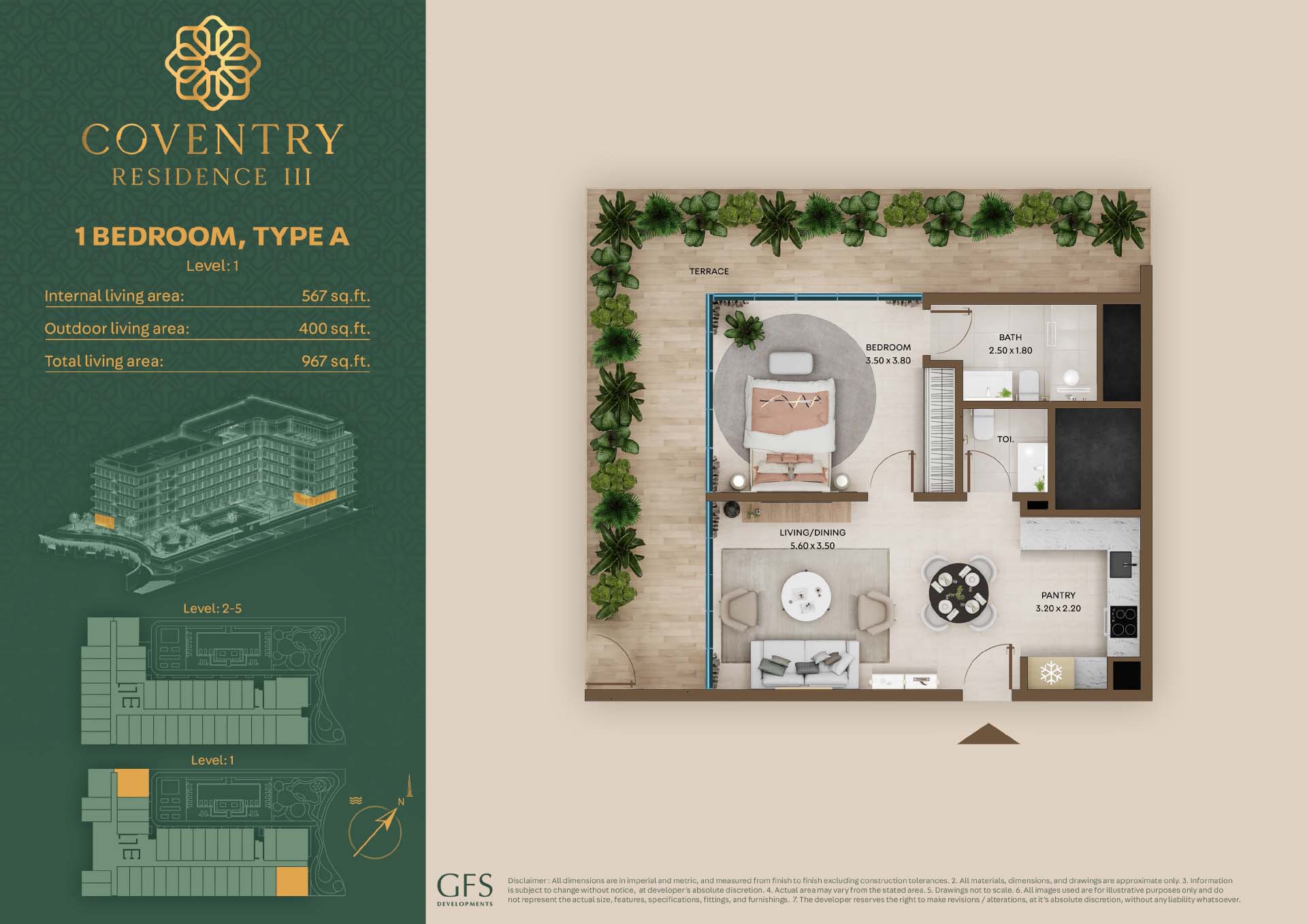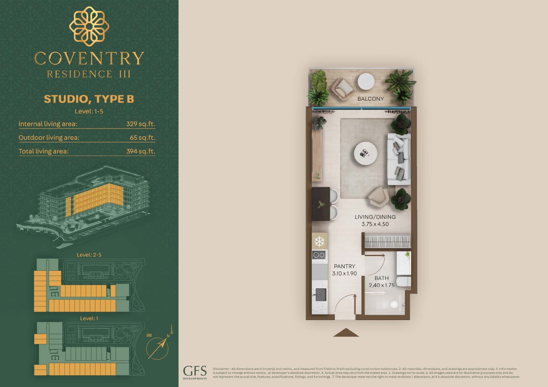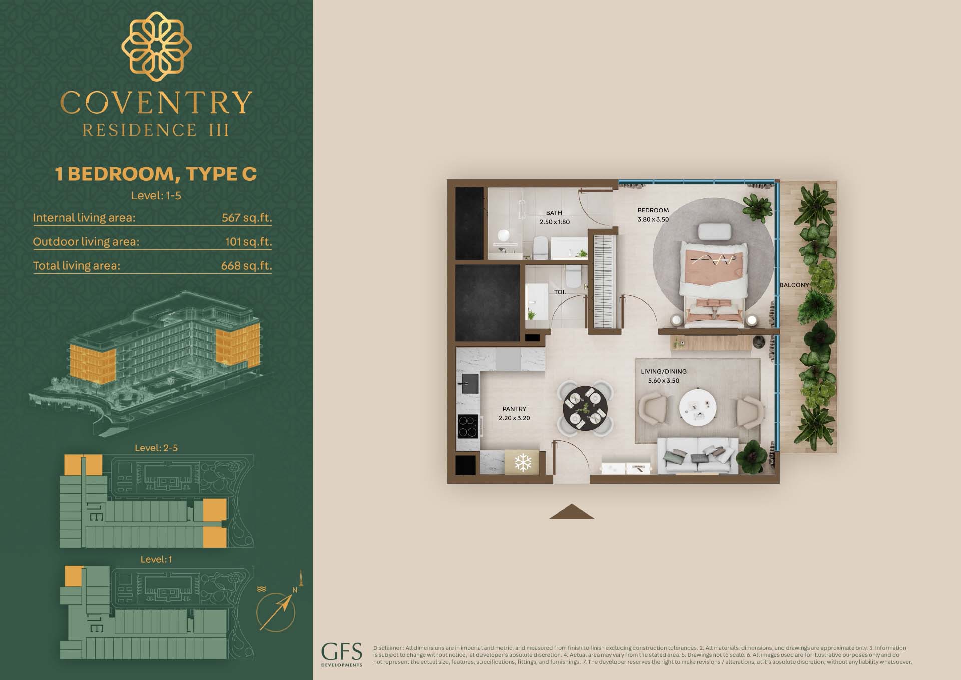 The floor plans at Coventry Residence 3 is created to maximize on the levels of space and a comfortable flow in modern studios and 1-bedroom apartments. The residences design is well balanced to accommodate the lifestyles in the contemporary times and will even have open spaces, delineated living quarters as well as functional kitchens. Big windows contribute to natural lighting and visual openness and the balconies push the living areas to the outside. Internal movement within either unit is natural, and this reduces a lot of wasted space and makes them easy to use.