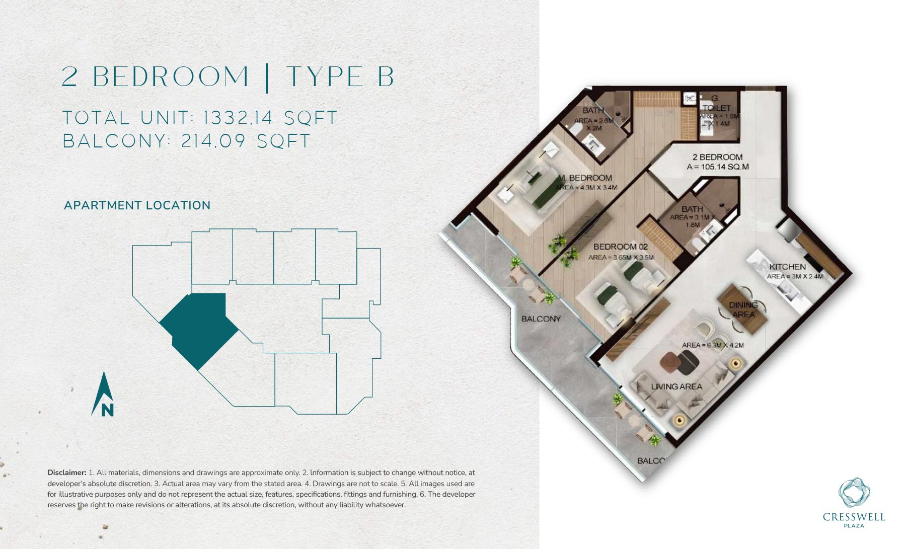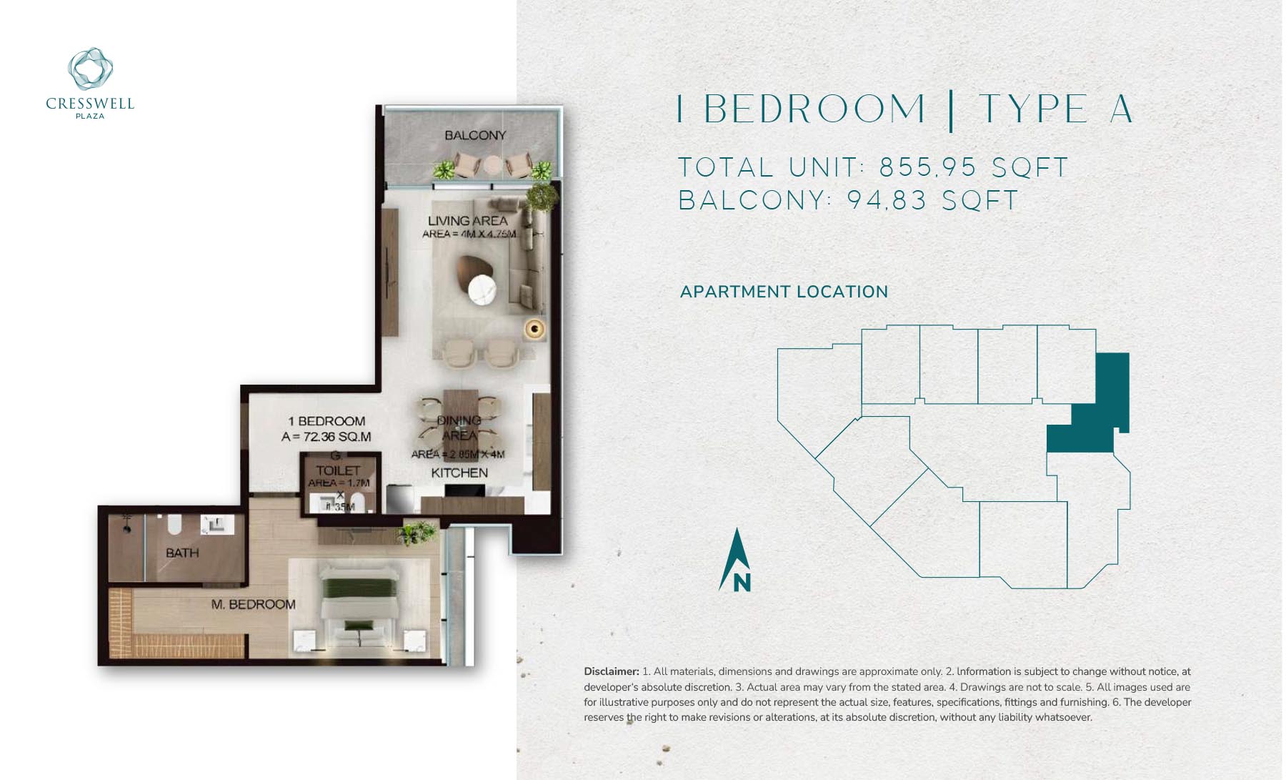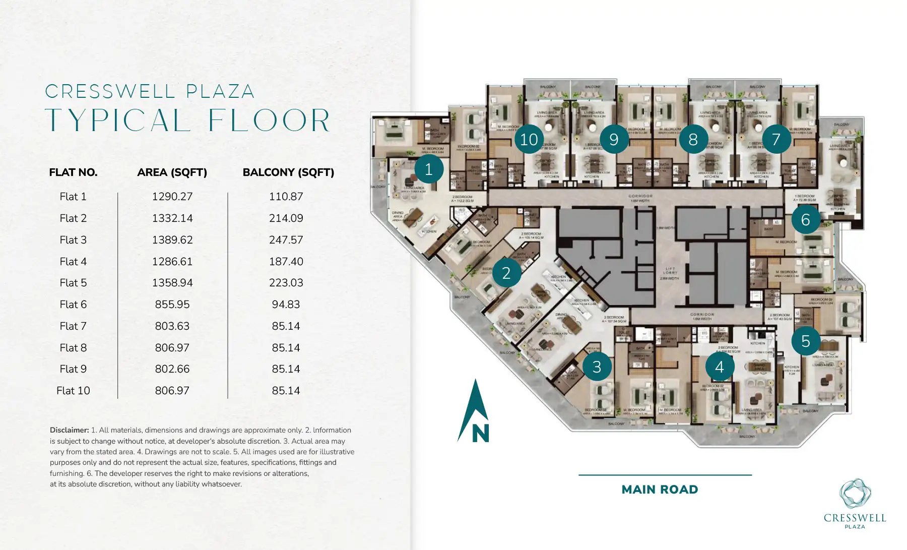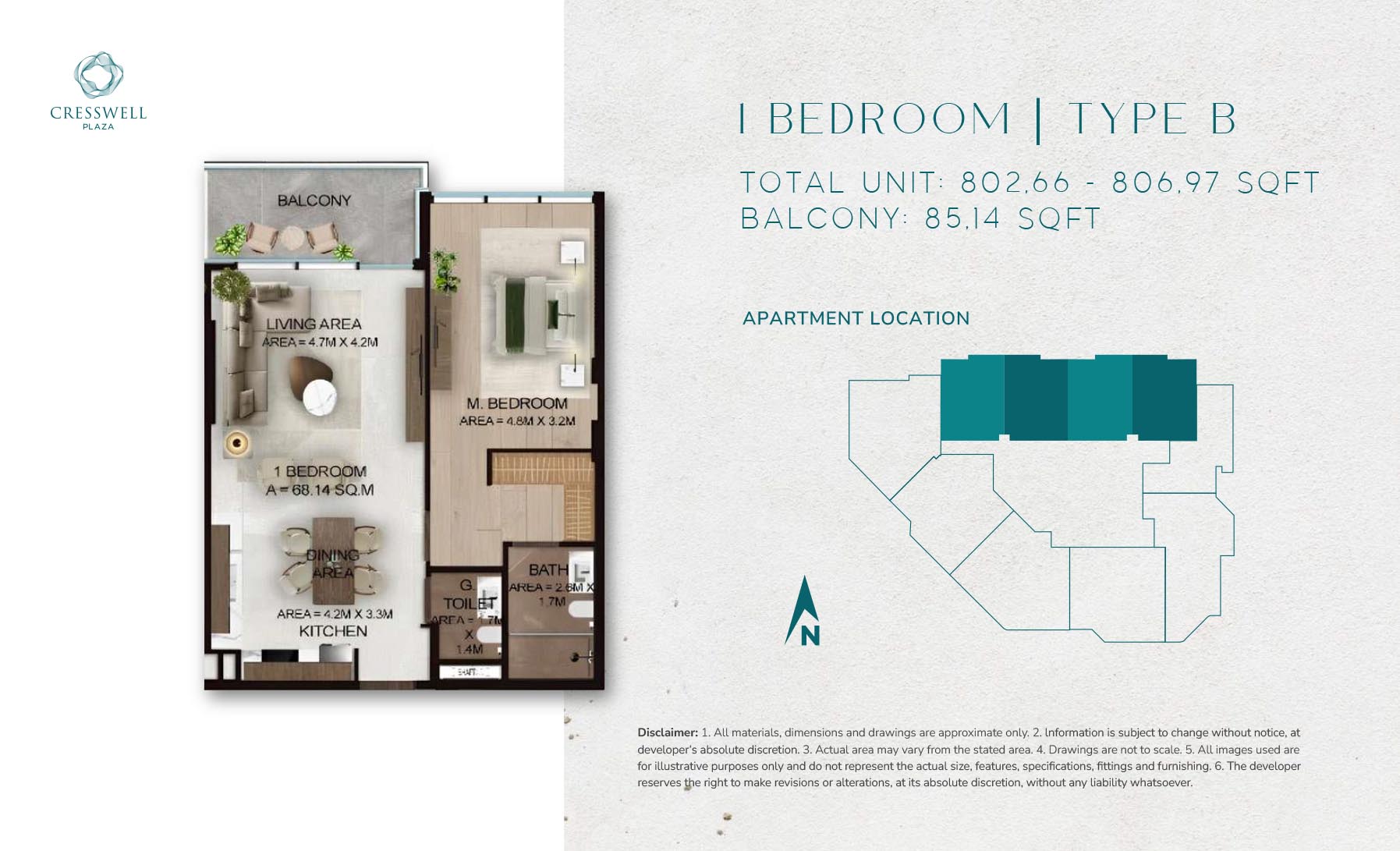 Cresswell Plaza floor plans has been strategically planned with 1 and 2-bedroom units offering. The functional layouts ensure every apartment meets diverse lifestyle needs. All residences are designed considerately with spacious, open concept furnished layout, modular kitchen, and fully fitted bathrooms with quality fixtures.