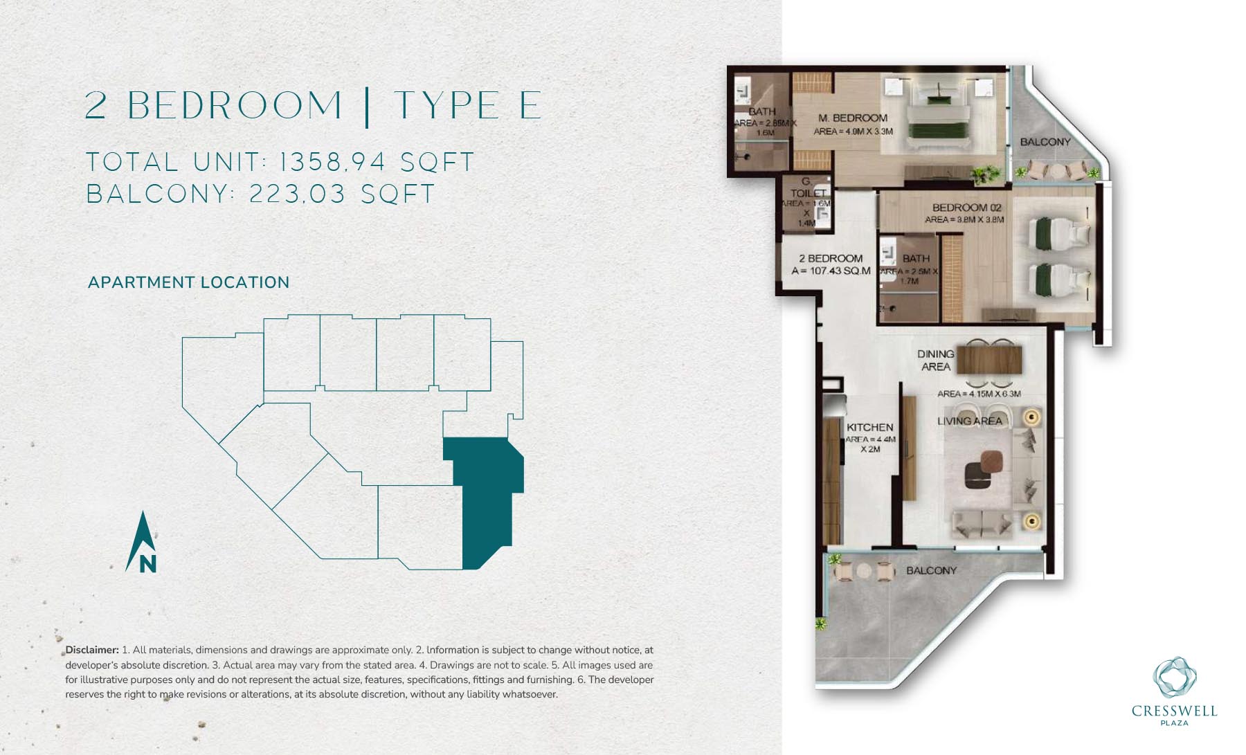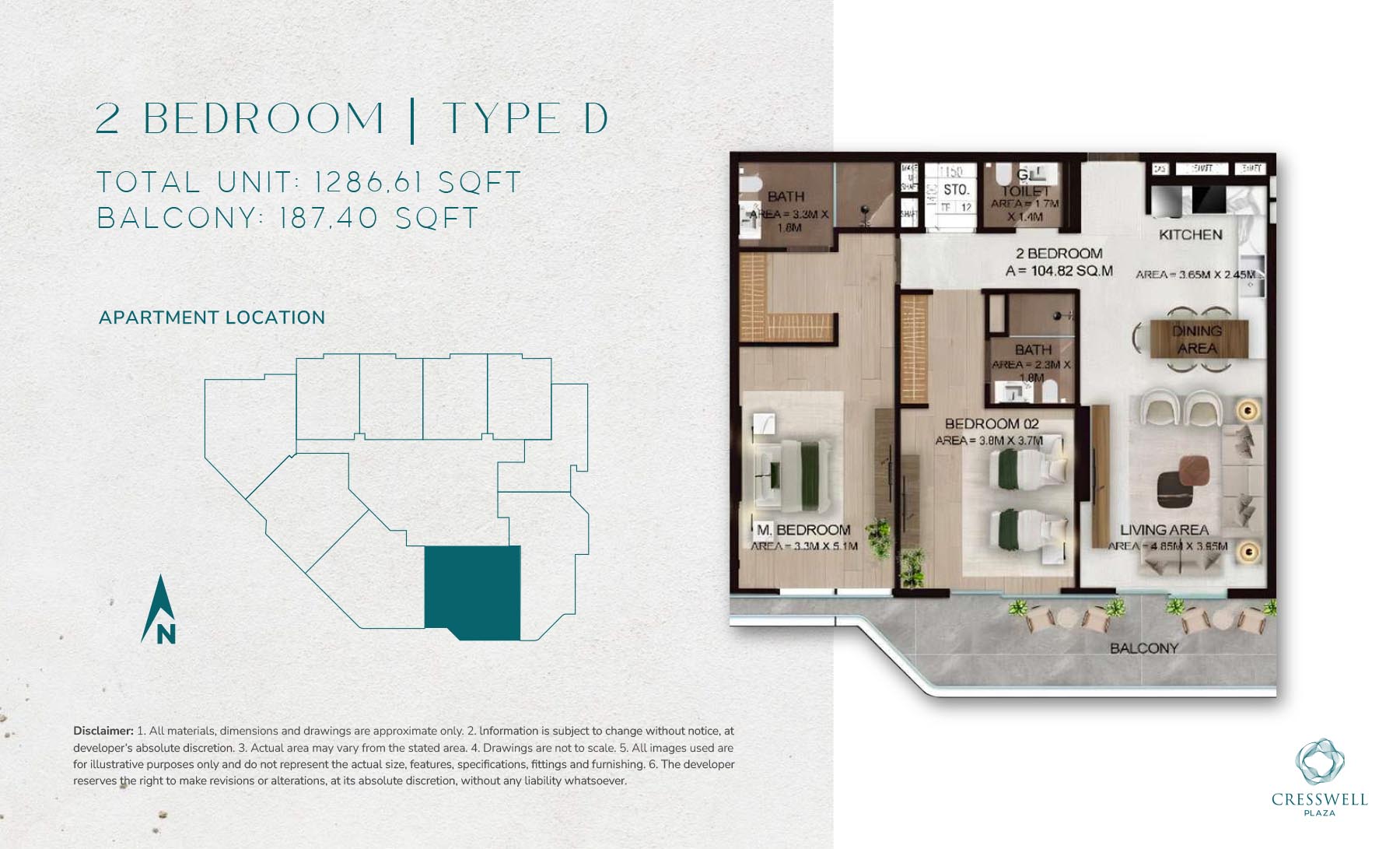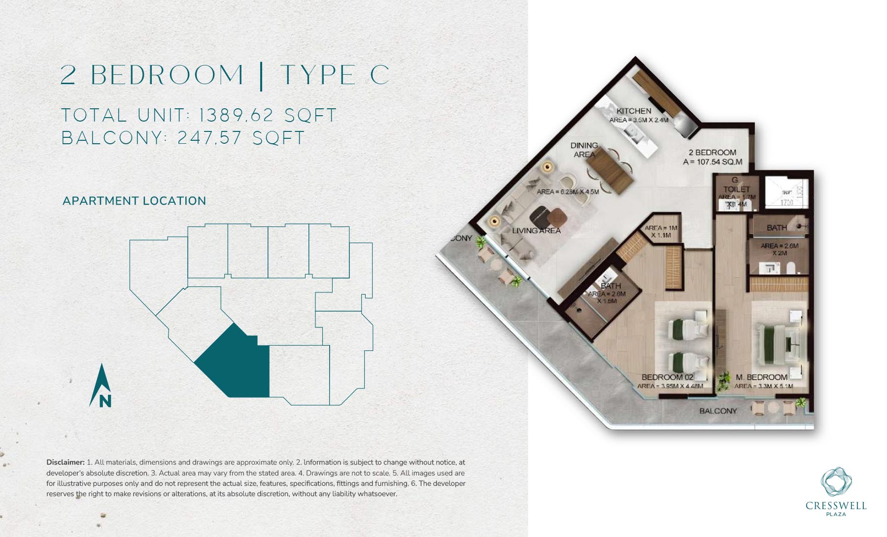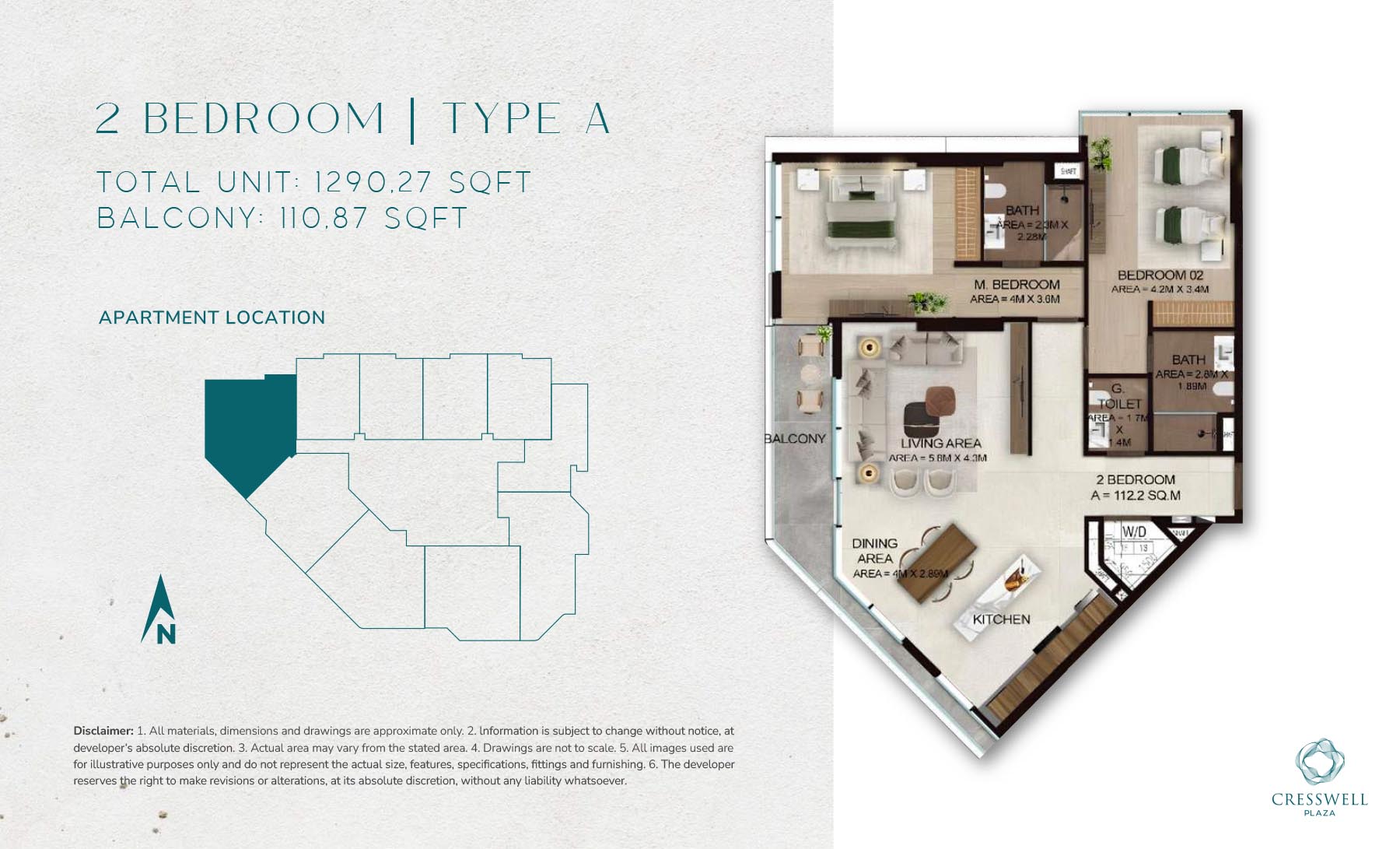 Cresswell Plaza floor plans has been strategically planned with 1 and 2-bedroom units offering. The functional layouts ensure every apartment meets diverse lifestyle needs. All residences are designed considerately with spacious, open concept furnished layout, modular kitchen, and fully fitted bathrooms with quality fixtures.