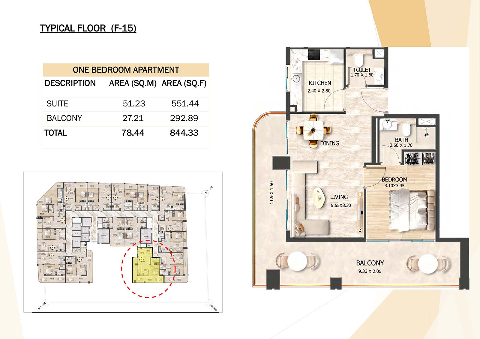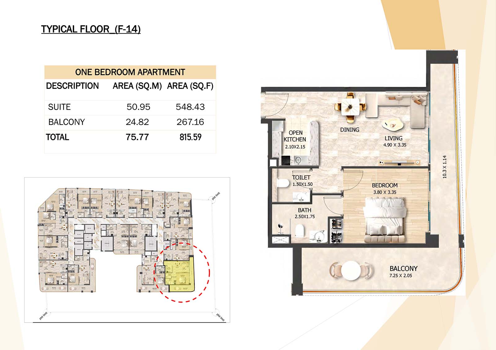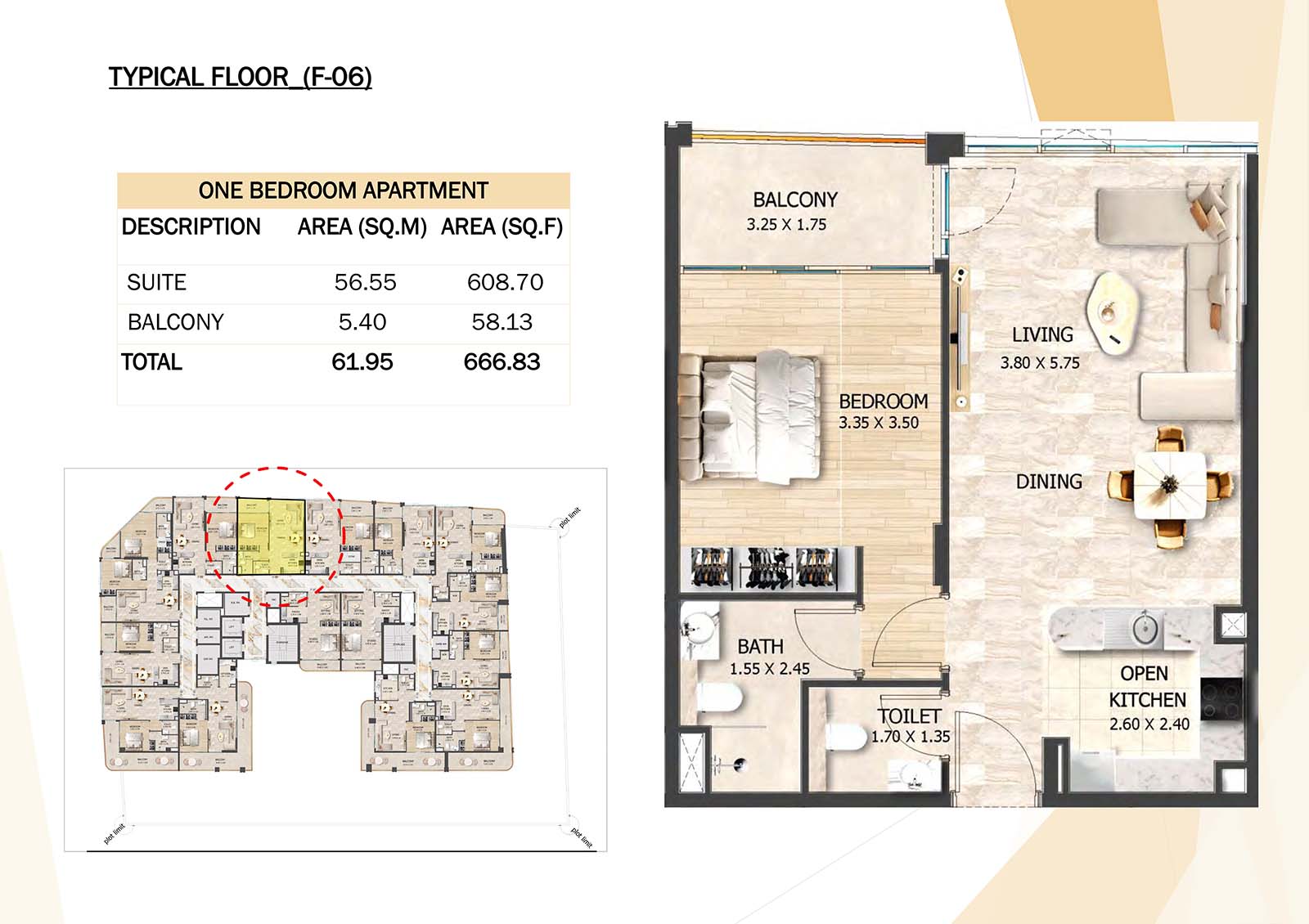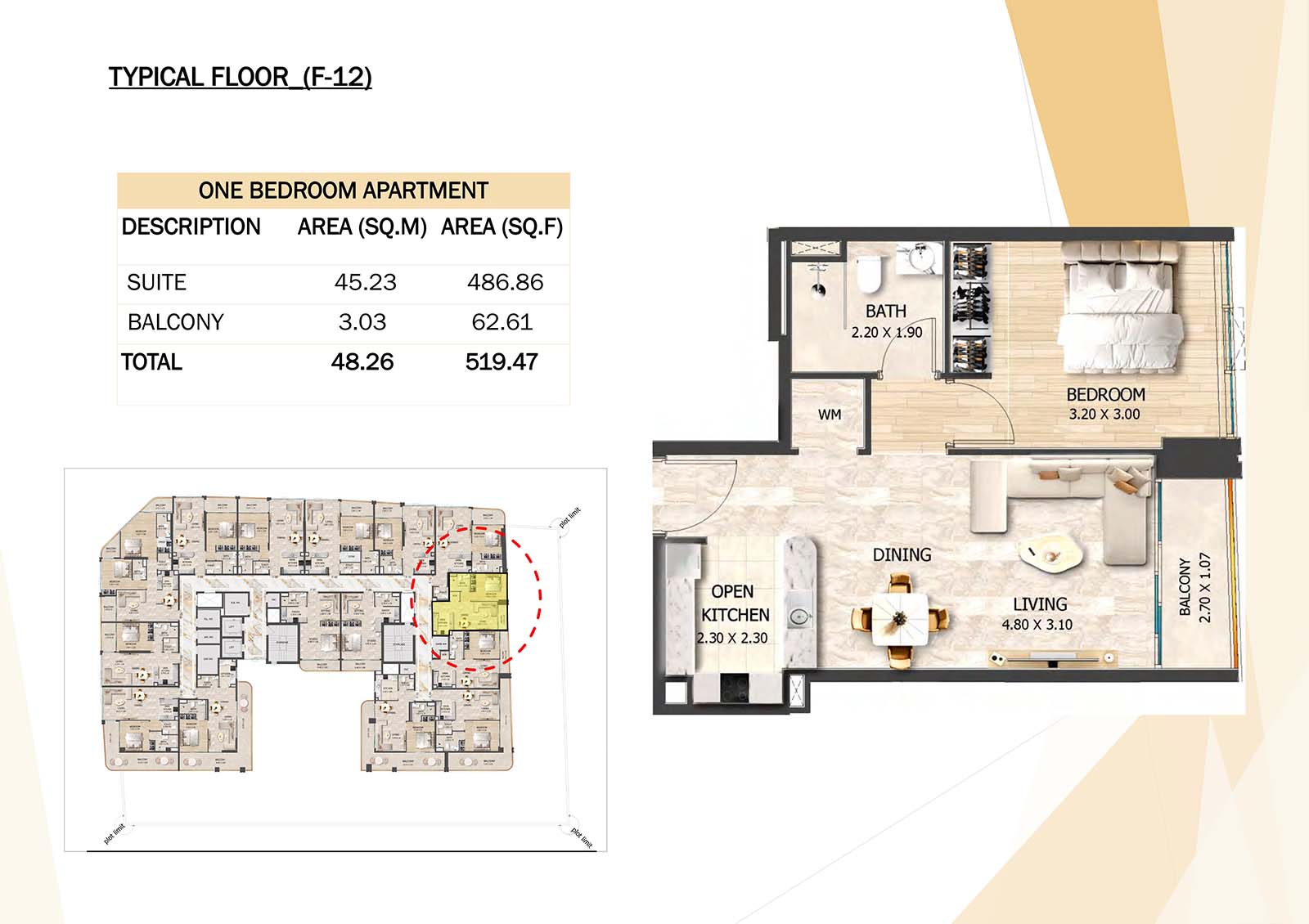 Crystal Tower floor plan with studio, 1, 2 and 3-bedroom apartments stands as a remarkable and luxurious residential mid-rise building. Units include spacious balconies, modular kitchen, and fully fitted bathrooms with quality fixtures and high-end amenities.