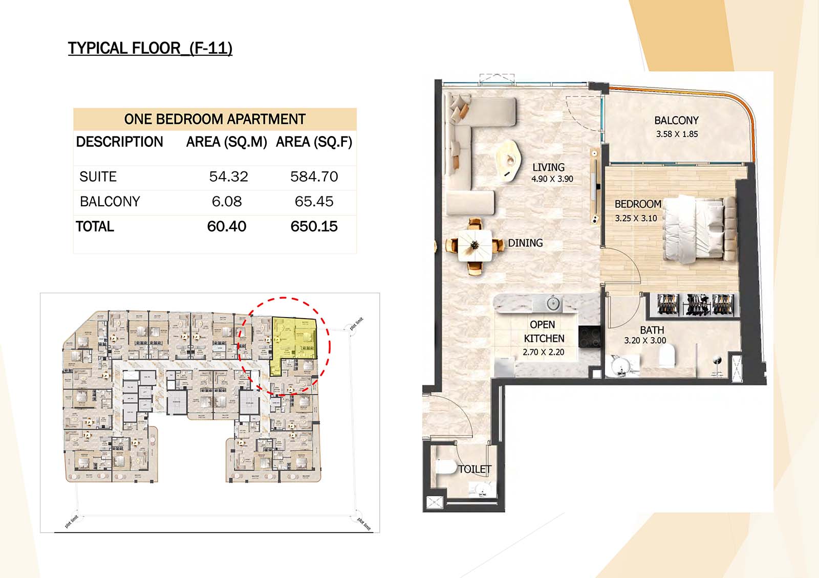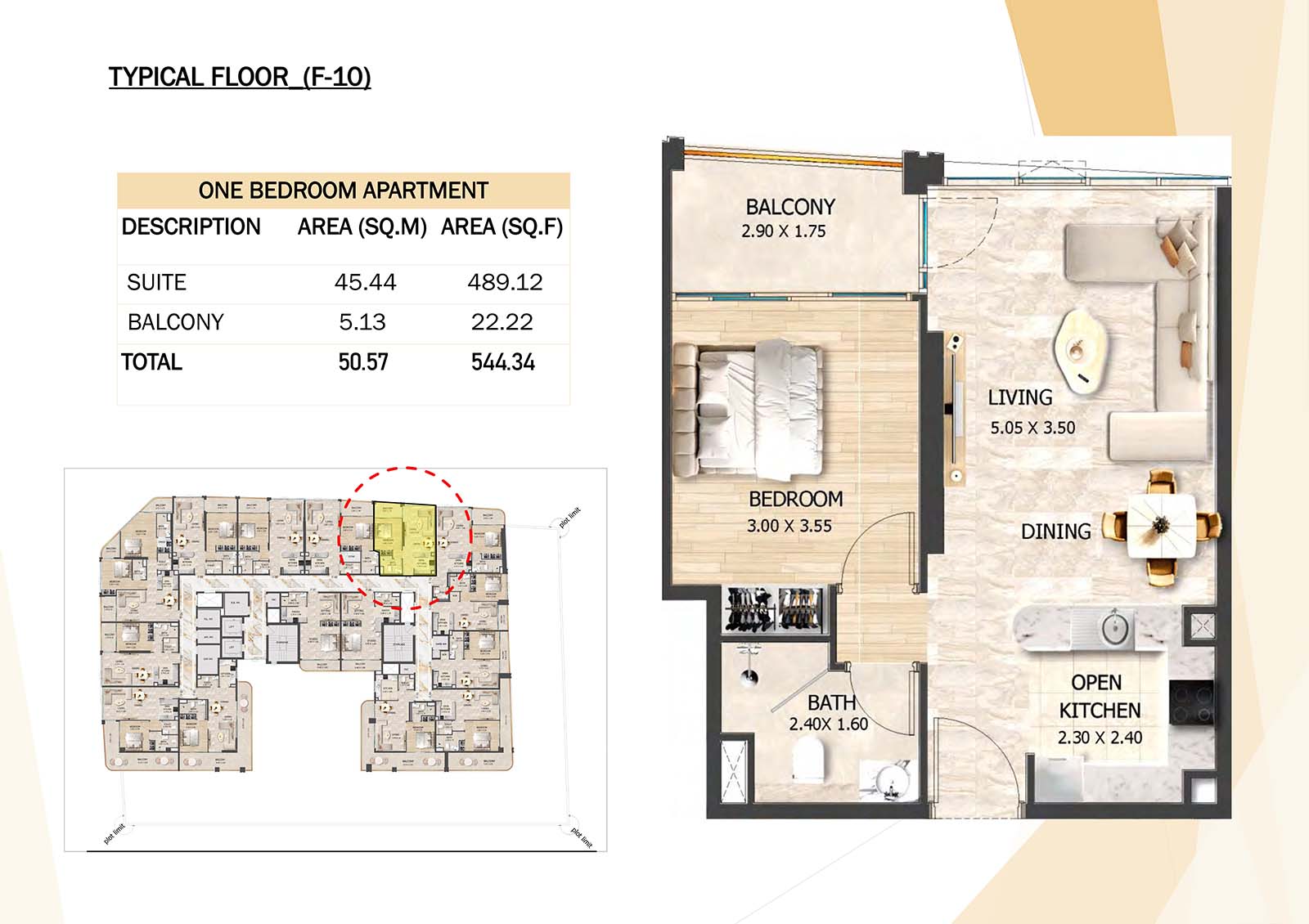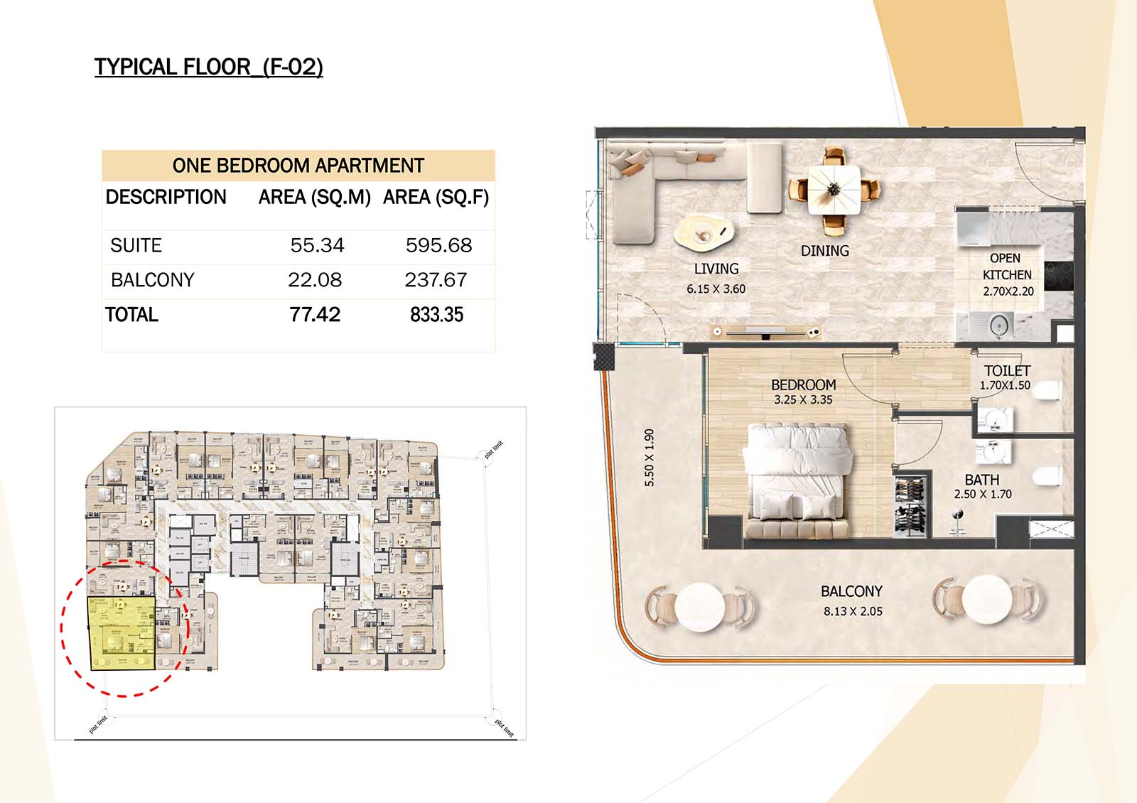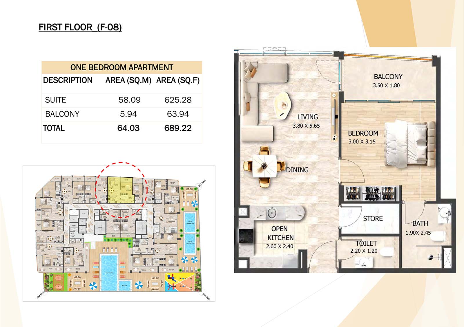 Crystal Tower floor plan with studio, 1, 2 and 3-bedroom apartments stands as a remarkable and luxurious residential mid-rise building. Units include spacious balconies, modular kitchen, and fully fitted bathrooms with quality fixtures and high-end amenities.