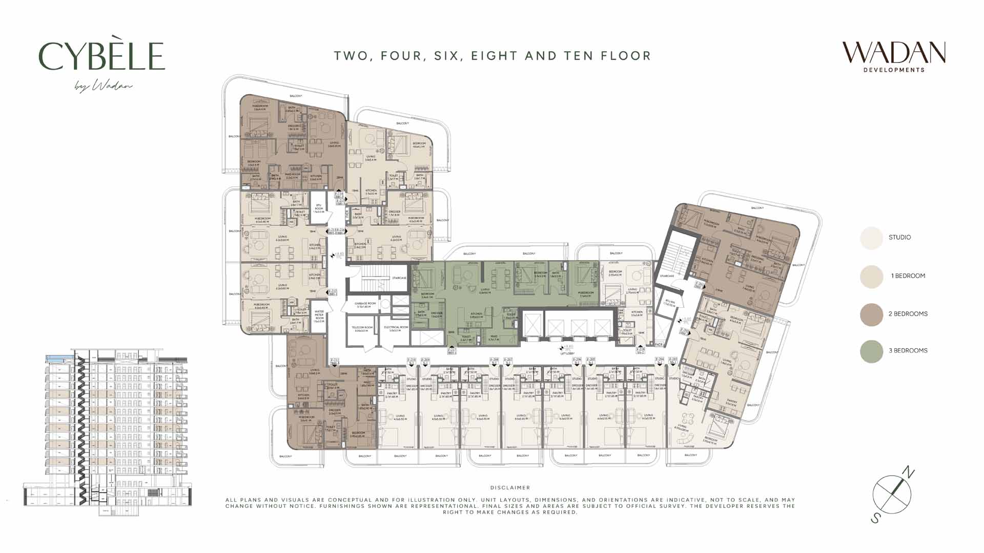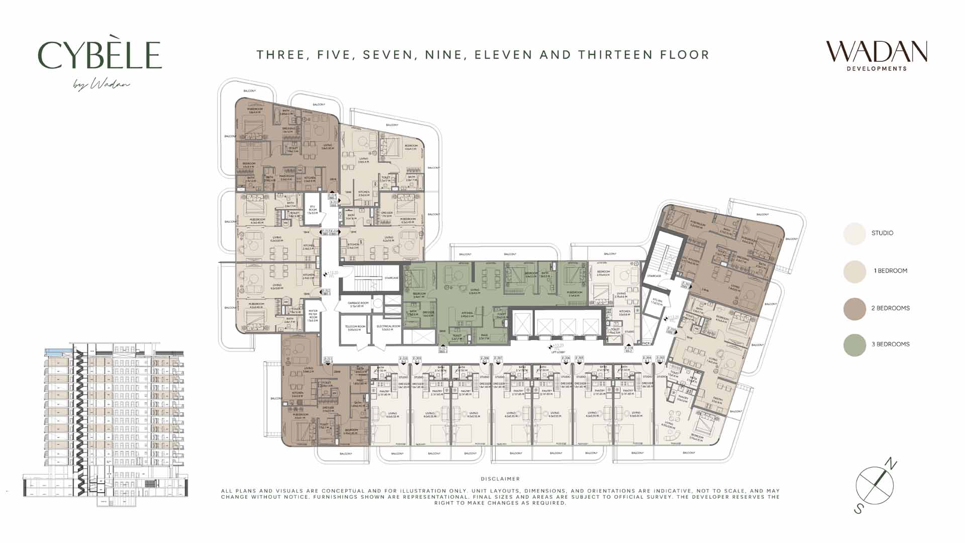Wadan Cybele floor plan are elegant in nature, offering premium class residences with high-end design and interiors within studios, 1, 2 and 3-bedroom apartments. The floor layouts are flow-driven, open and functional to enjoy the spacious configurations. The extensive balconies dilute the boundaries between the internal and external spaces, where the floor to ceiling windows maximises the natural lights. The intelligent design offers comfort and flexibilities, and they feature luxury in terms of refined materials and finishes.