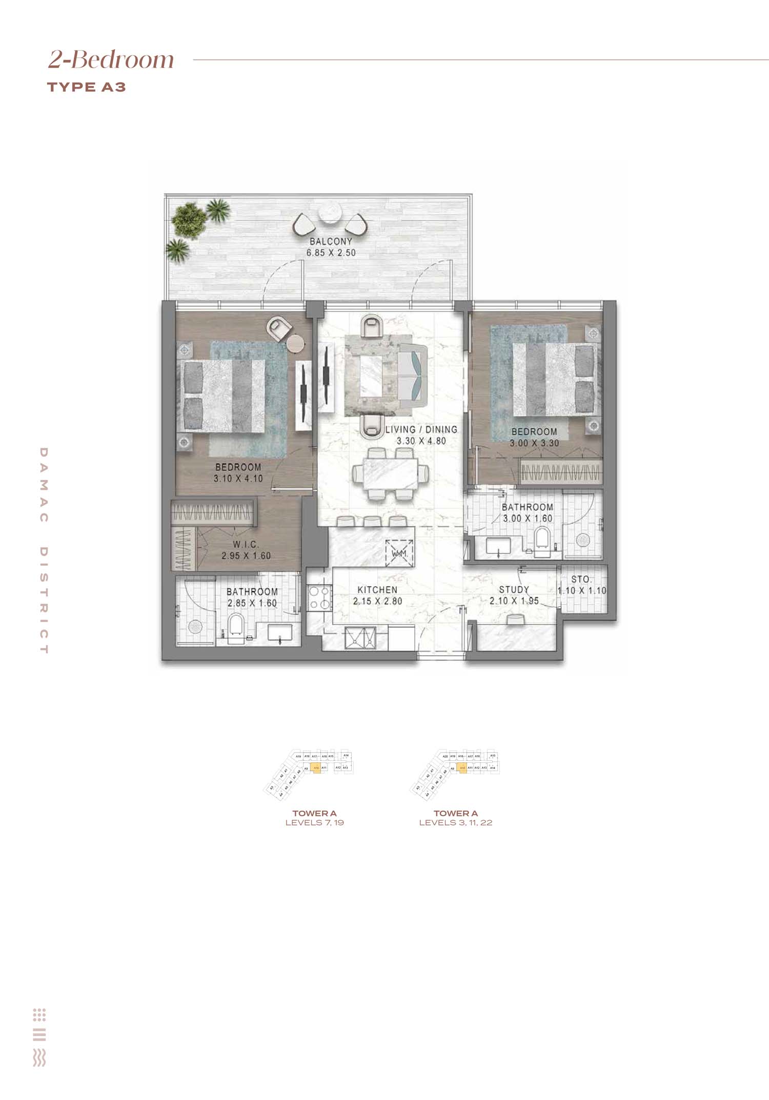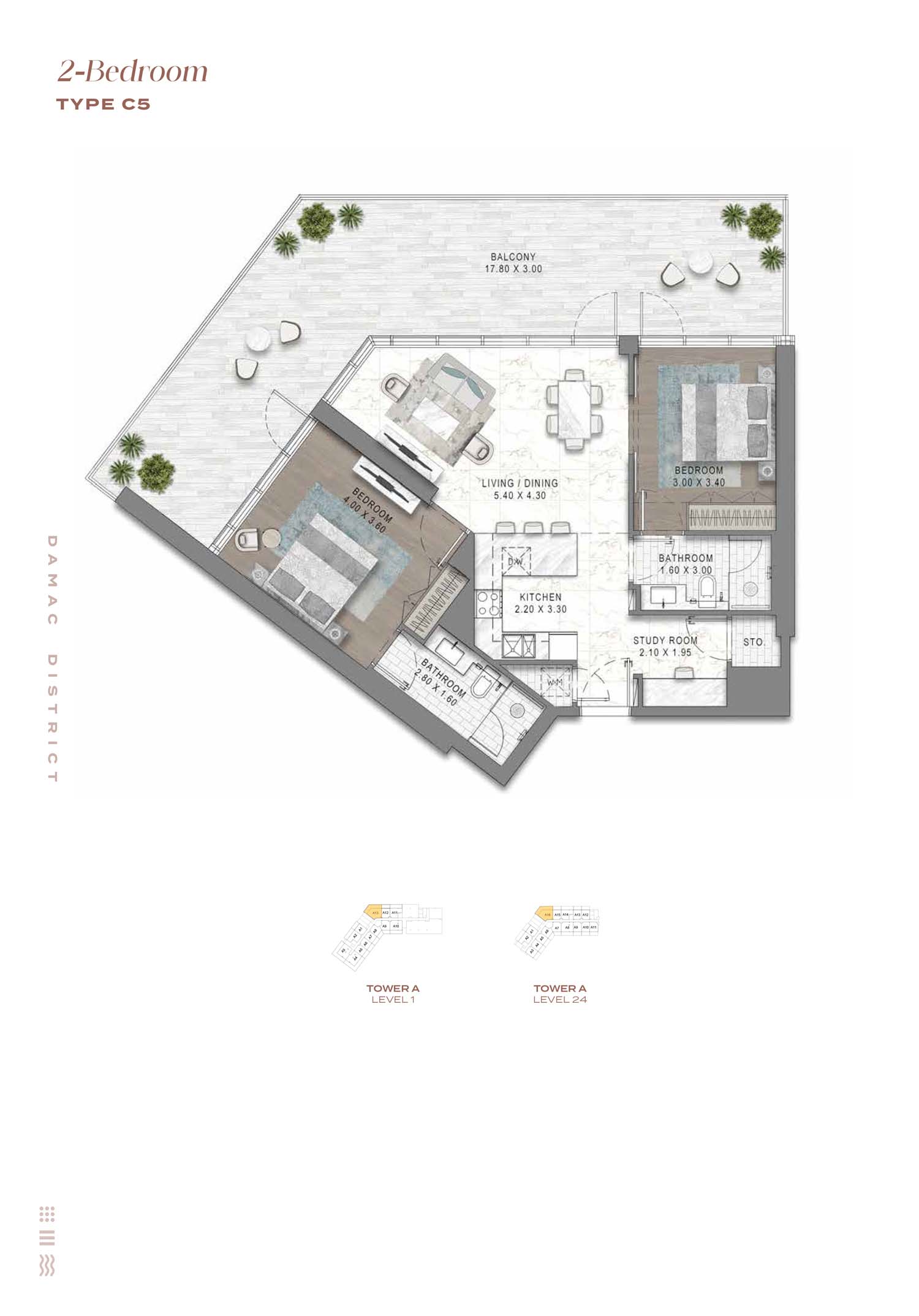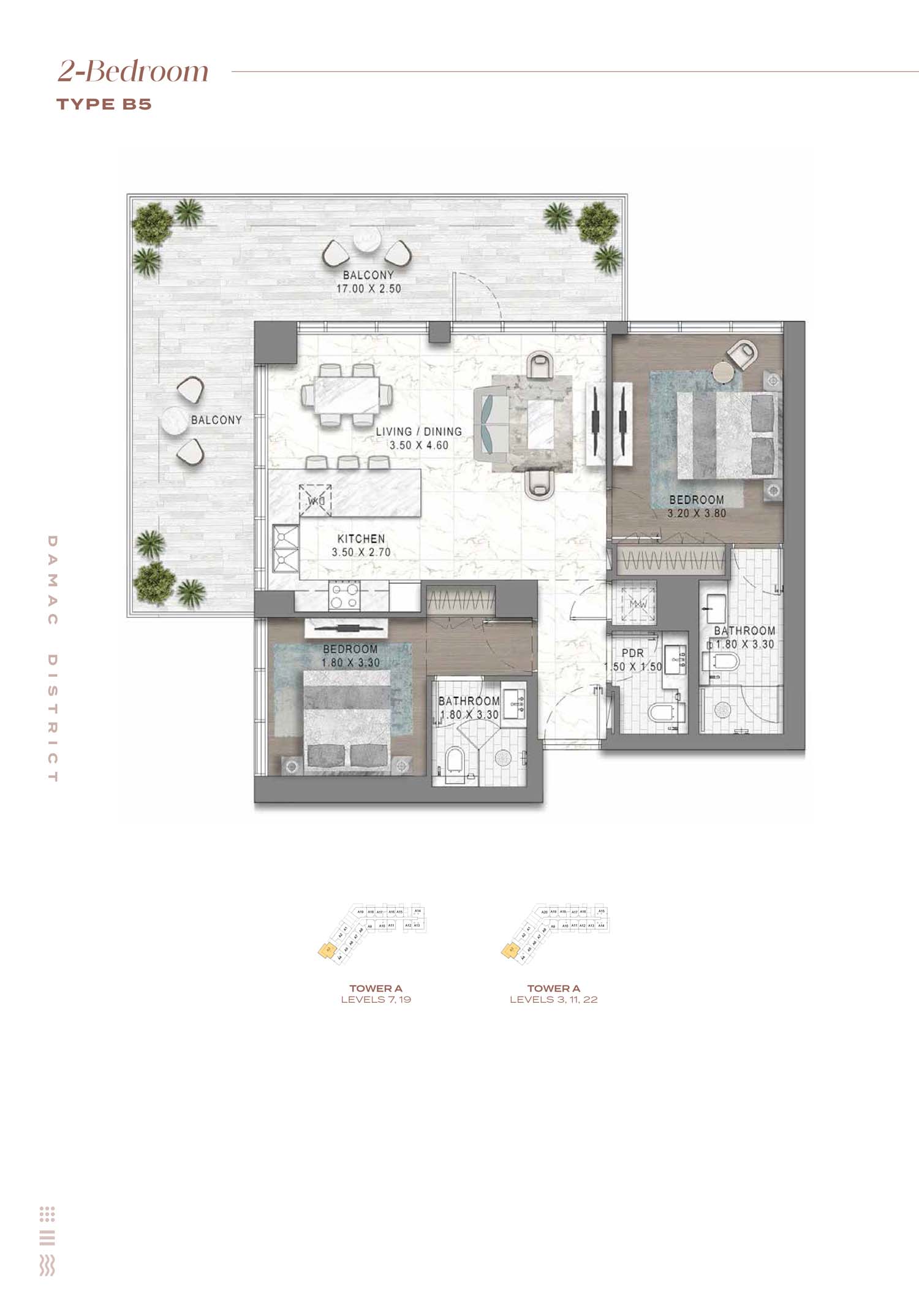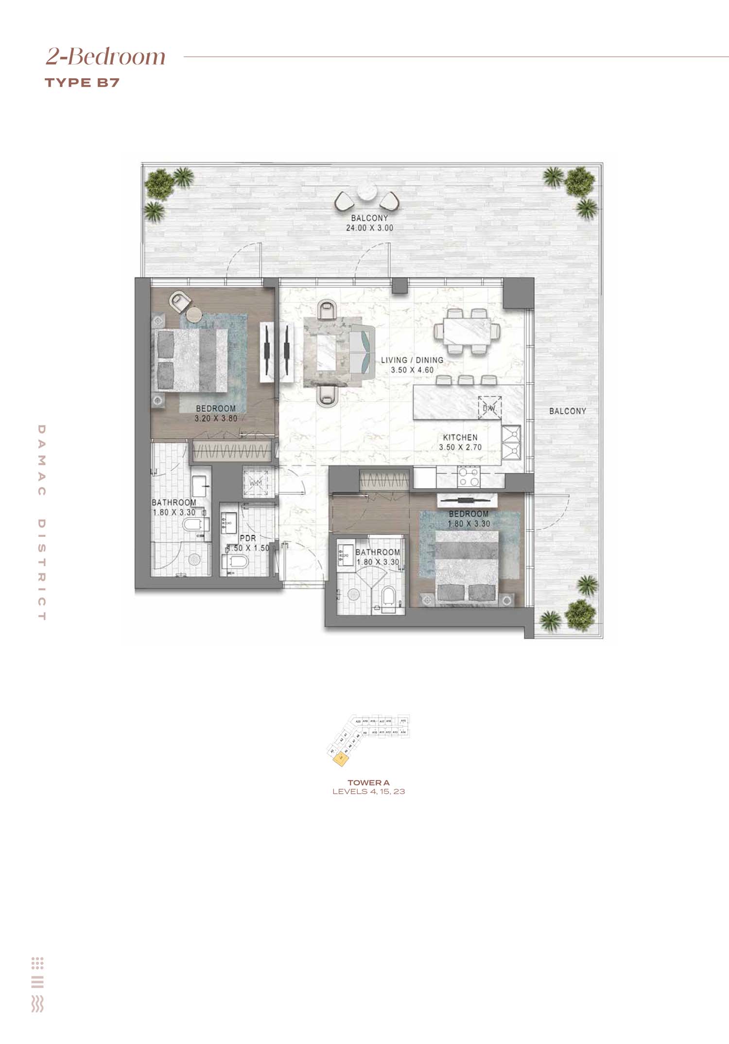 Damac District unveils a unique mix of 1 & 2-bedroom luxury apartments and offices with carefully constructed floor plans that utilize every inch of space with perfection & elegance. There are three different towers with around 1008 units. Every unit comes with an ideal size and type with open, aesthetic, and functional layouts ideal for small families and professionals. A separate collection of commercial office space is also available designed to meet the modern needs and comfort, and convenience of business setups.