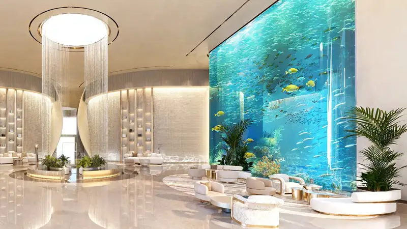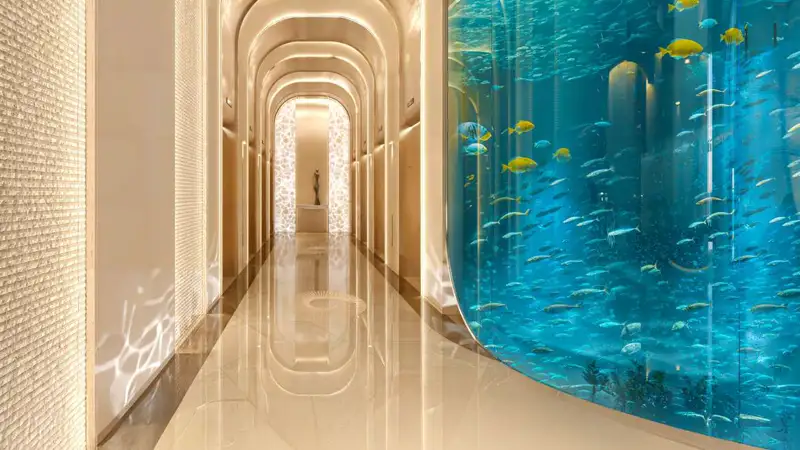 - A luxurious welcome in the luxury lobby with a waterfall atrium inspired by the ocean’s rhythm