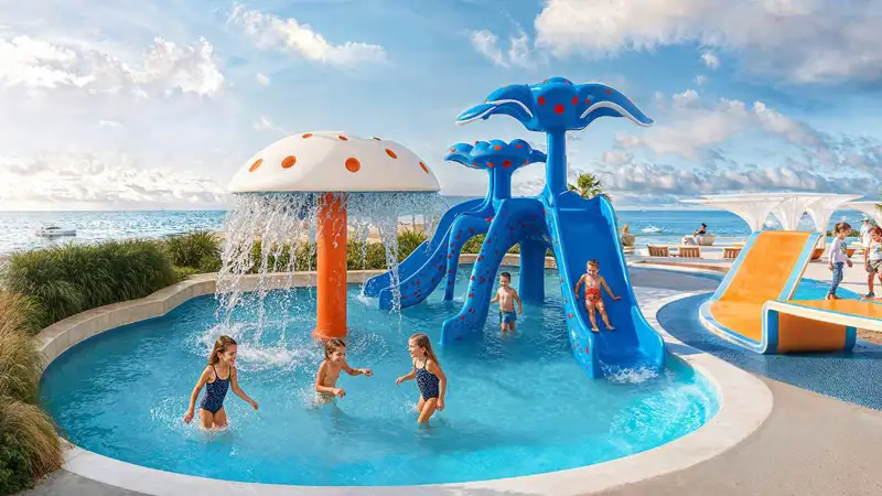 - Facilities are divided to cater to water, wellness, and activity experiences, including an infinity pool, a lagoon pool, gyms, fitness areas, running tracks, gardens, a yoga deck, and a steam & saunas