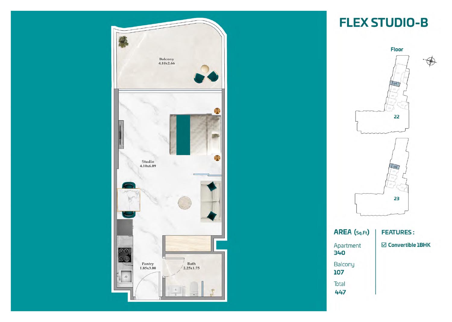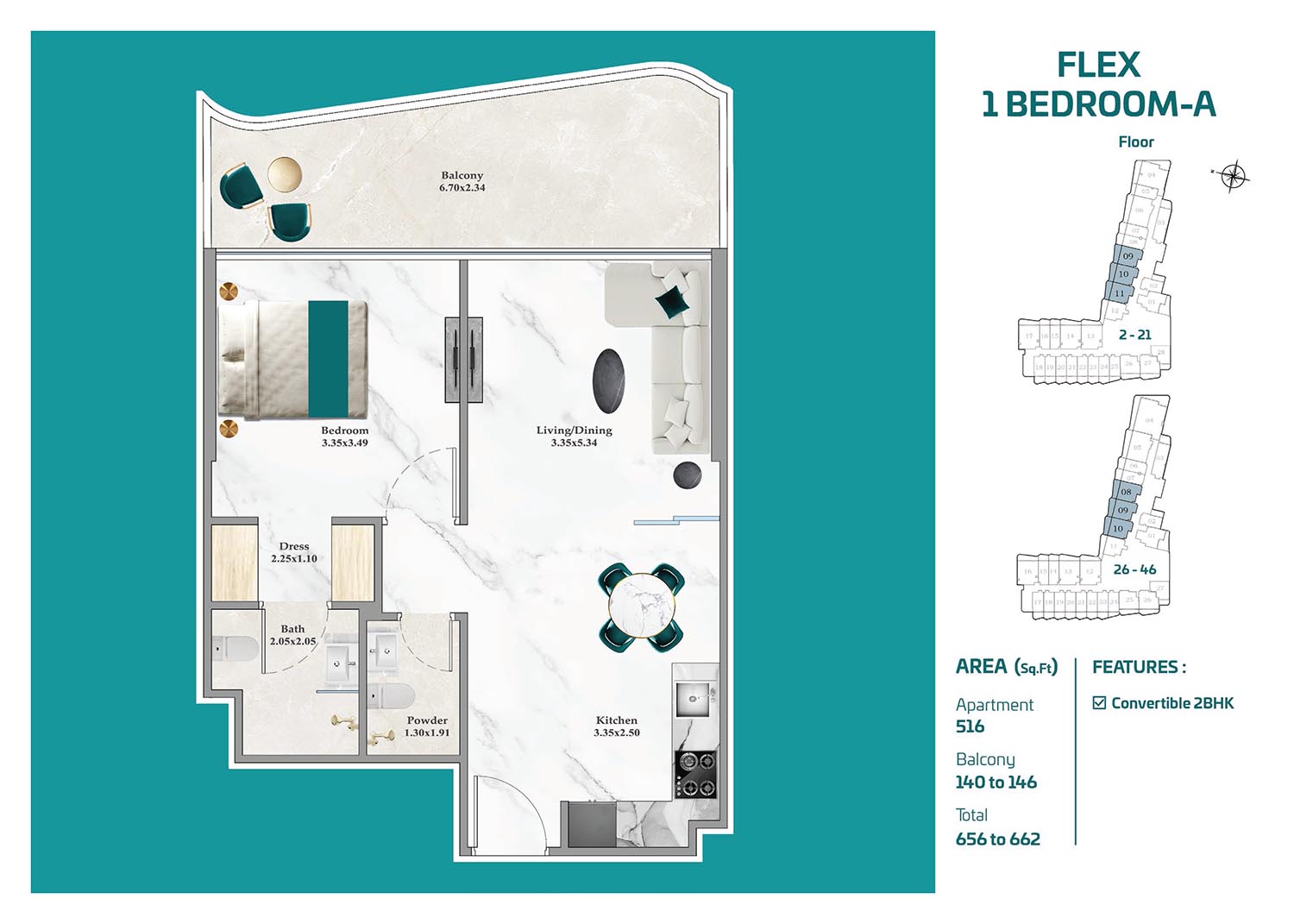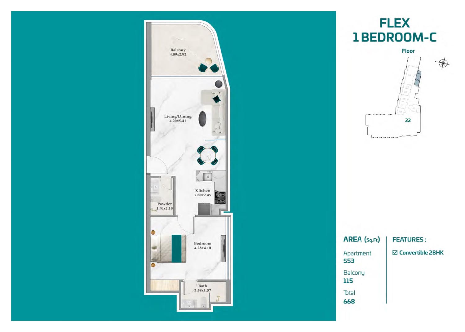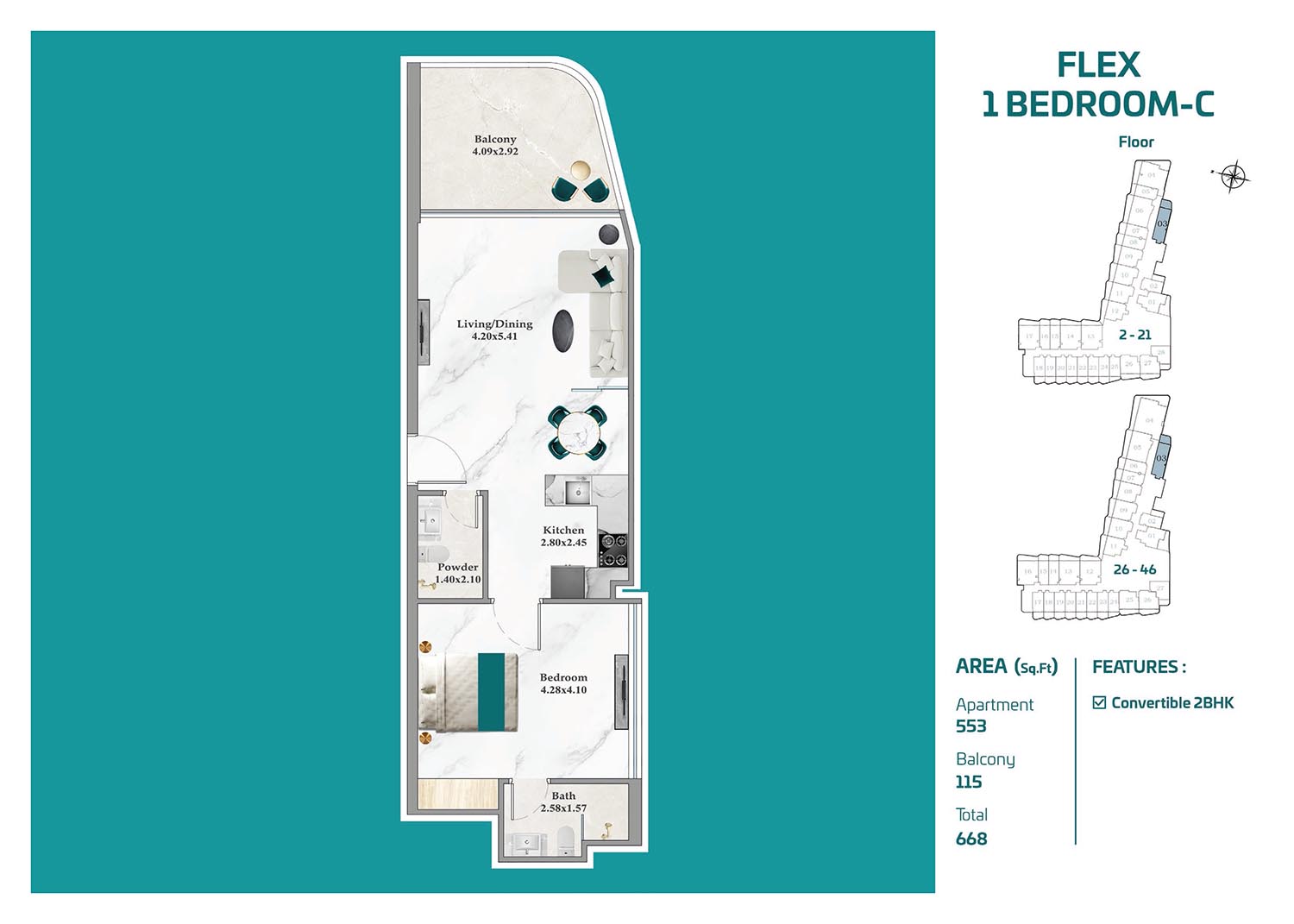 Danube Breez is a 60-storey residential milestone with mindfully crafted floor plans to cultivate a community catering to all its residents within studios to 5-bedroom apartments, duplex villas. This rising jewel features waterfront units ranging from studio flex to three-bedroom flex residences. The carefully designed layouts of each unit ensure a home with sufficient spaces to relax, rejoice, and rejoice with family, where stunning views of the ocean and the towering landscape come together. Distinguished into the Blanco Luxe and Aqua Luxe, the two unique styles of interiors that showcase inspiring and exceptional ambience with a touch of natural elements and modernity.