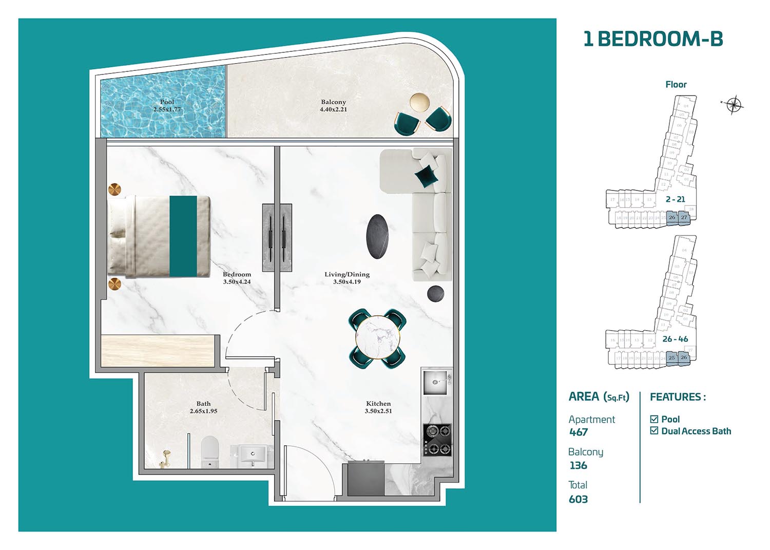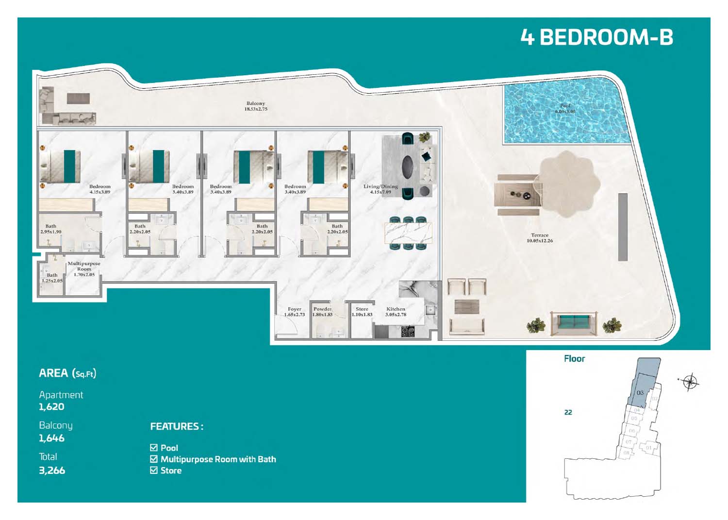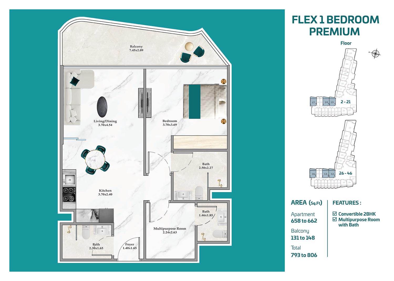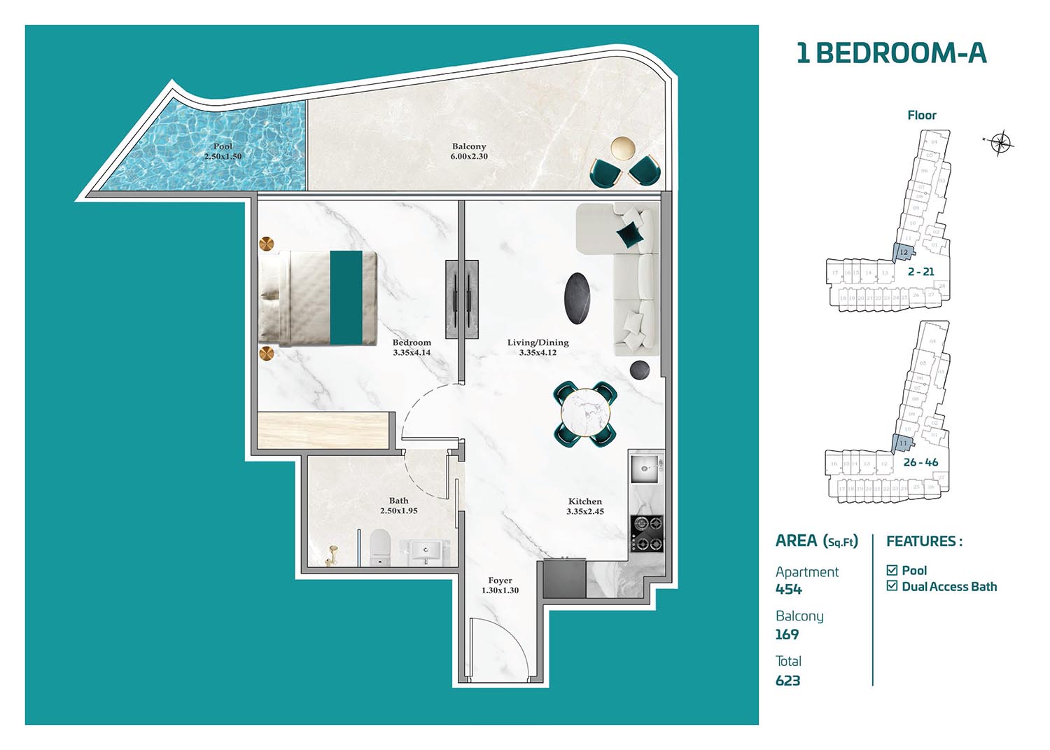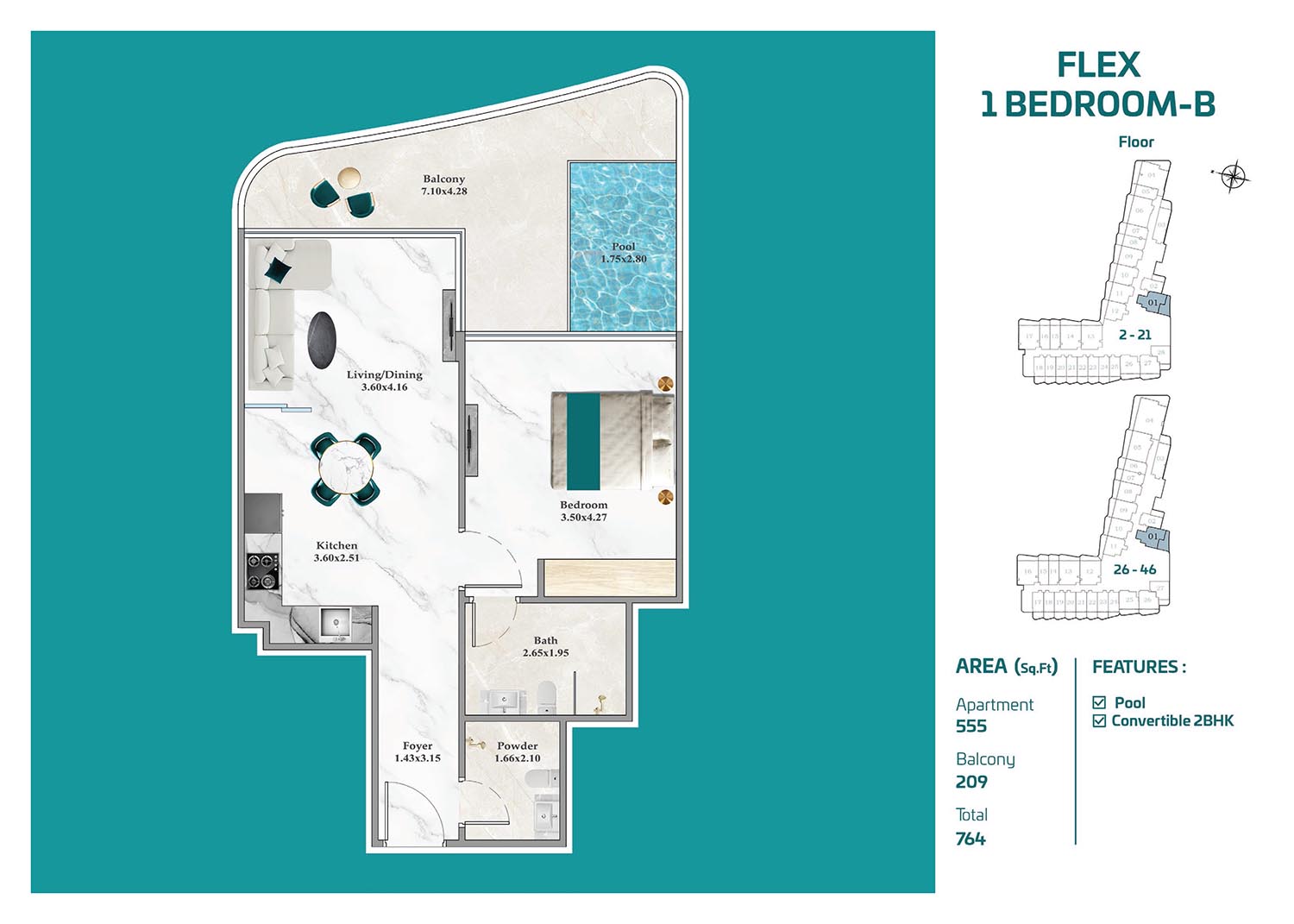 Danube Breez is a 60-storey residential milestone with mindfully crafted floor plans to cultivate a community catering to all its residents within studios to 5-bedroom apartments, duplex villas. This rising jewel features waterfront units ranging from studio flex to three-bedroom flex residences. The carefully designed layouts of each unit ensure a home with sufficient spaces to relax, rejoice, and rejoice with family, where stunning views of the ocean and the towering landscape come together. Distinguished into the Blanco Luxe and Aqua Luxe, the two unique styles of interiors that showcase inspiring and exceptional ambience with a touch of natural elements and modernity.
