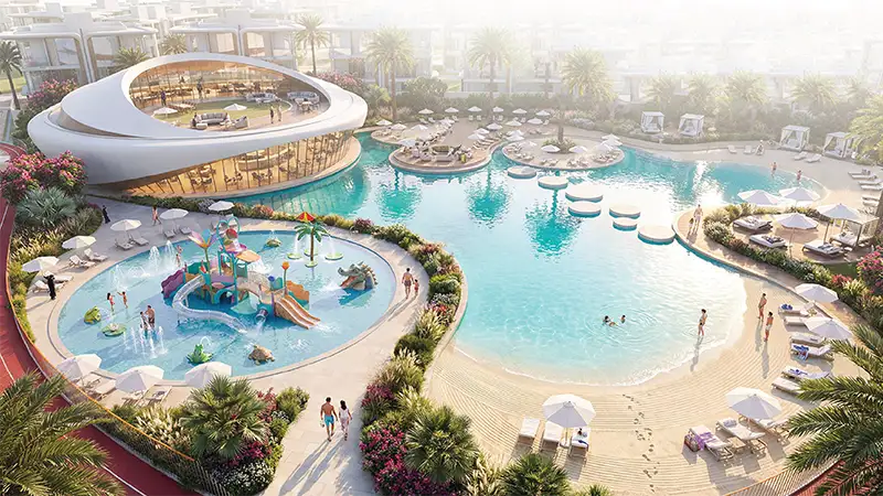 - Beach hub featuring lagoon-style water experiences, relaxation zones, and resort-inspired living within the community.