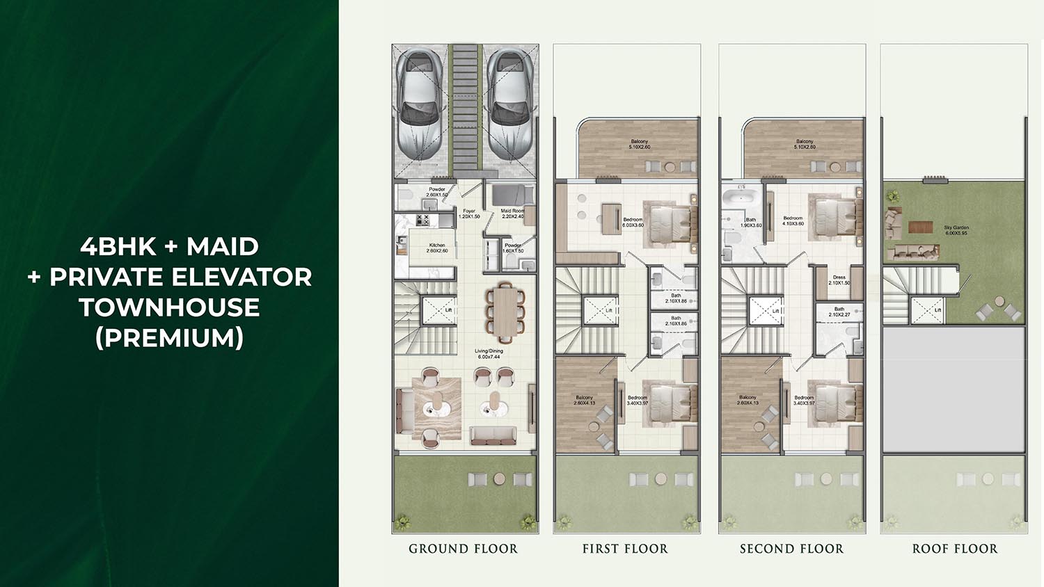 The floor plan of Greenz comes in typologies of 3, 4, and 5-bedrooms townhouses and villas focused on lean spaces and lifestyle. The core of every house is open-space living and dining areas, which promote natural communication and free flow. The integration of kitchens is defined, and it provides contemporary layouts that can be used by family members and also hosting. Bedrooms are spaced out to provide space to the rooms and the master suite has additional storage capacity and en-suite. Bigger setups will present new family rooms, terrace or multifunctional rooms that can be converted into a study room or an invited family room. Each strategy is designed in the way that it is open and at the same time structured in such a way that it is functional without interfering with the aesthetic harmony.