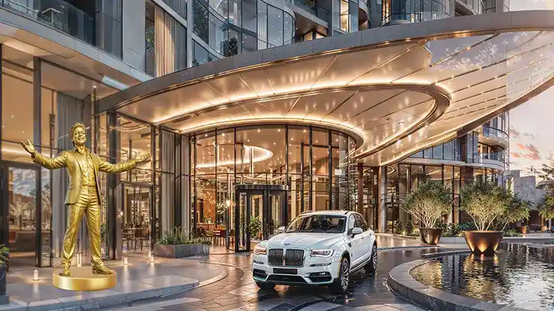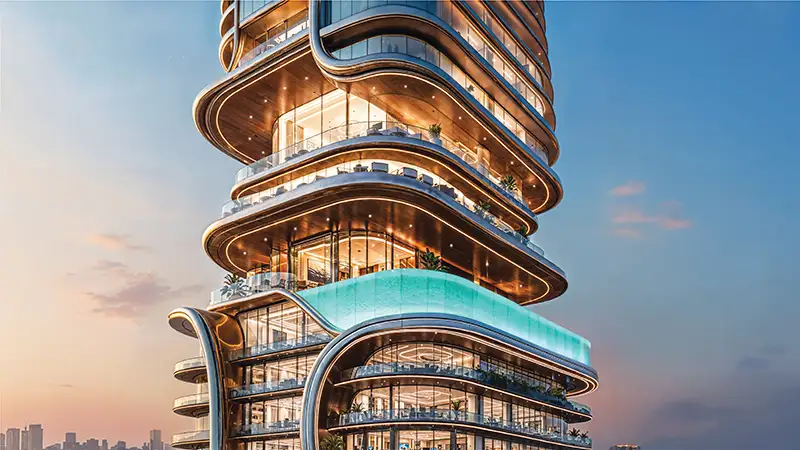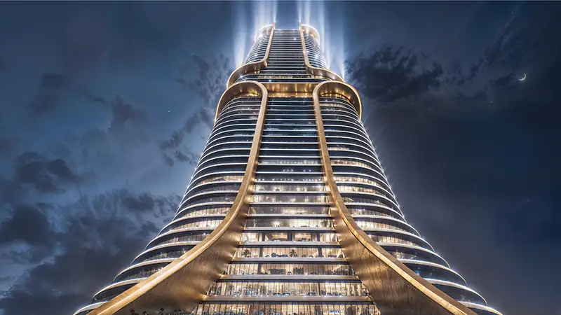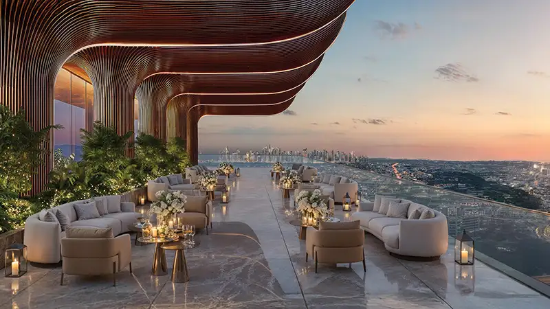 - Striking architectural form with double-height arrivals, grand lobbies and a skyline-defining façade crafted for maximum visual impact.