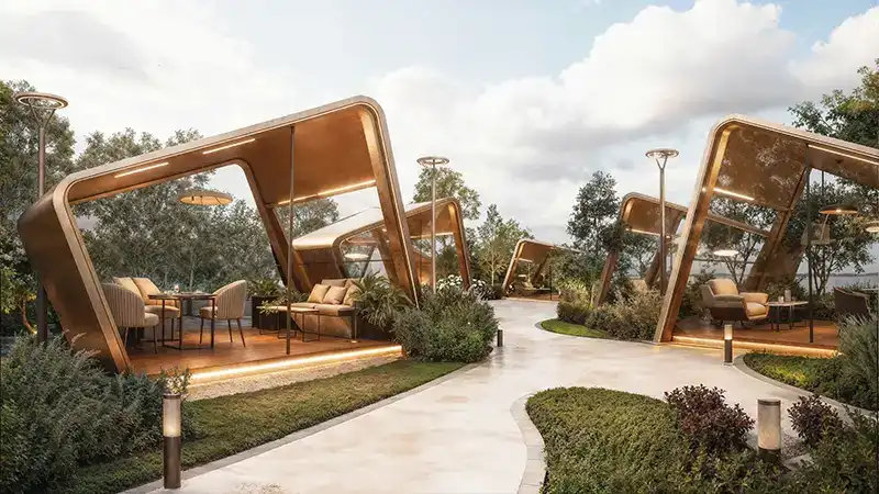 - Future-forward mobility features with drone docking, e-scooter bays and provisions for helipad/air-taxi connections.