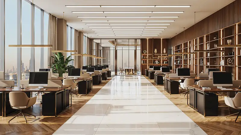 - Office typologies ranging from compact executive units to expansive signature floors, each planned with high-productivity layouts and panoramic views.