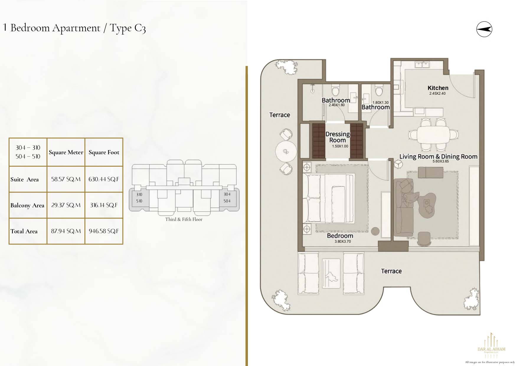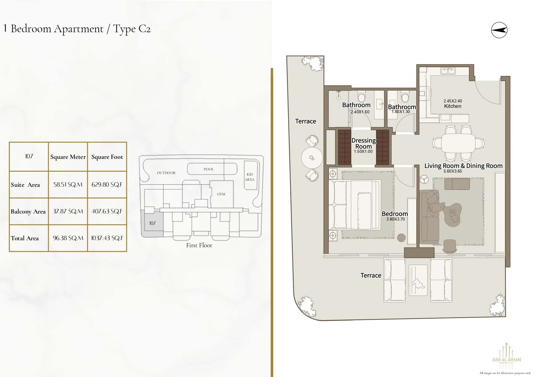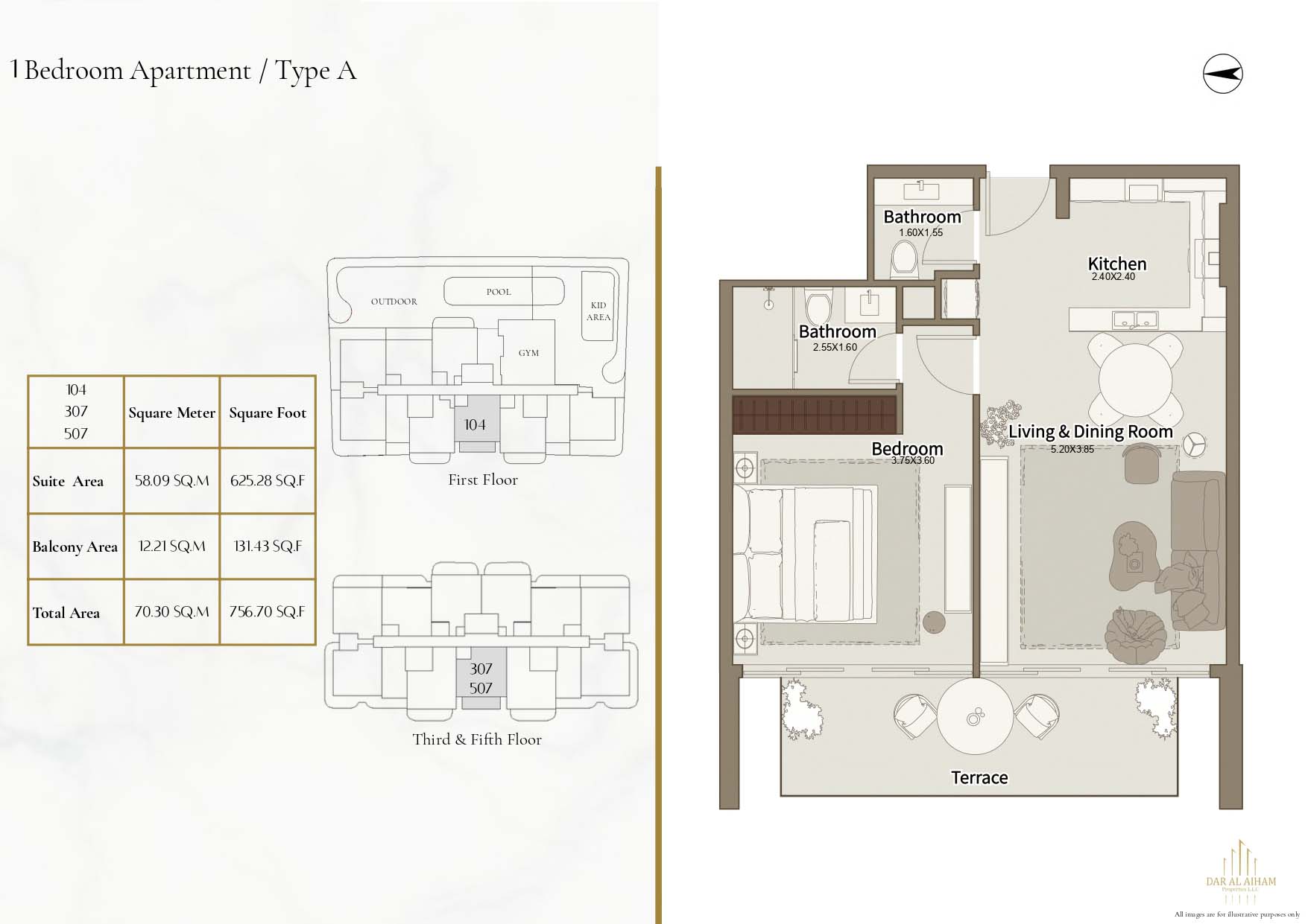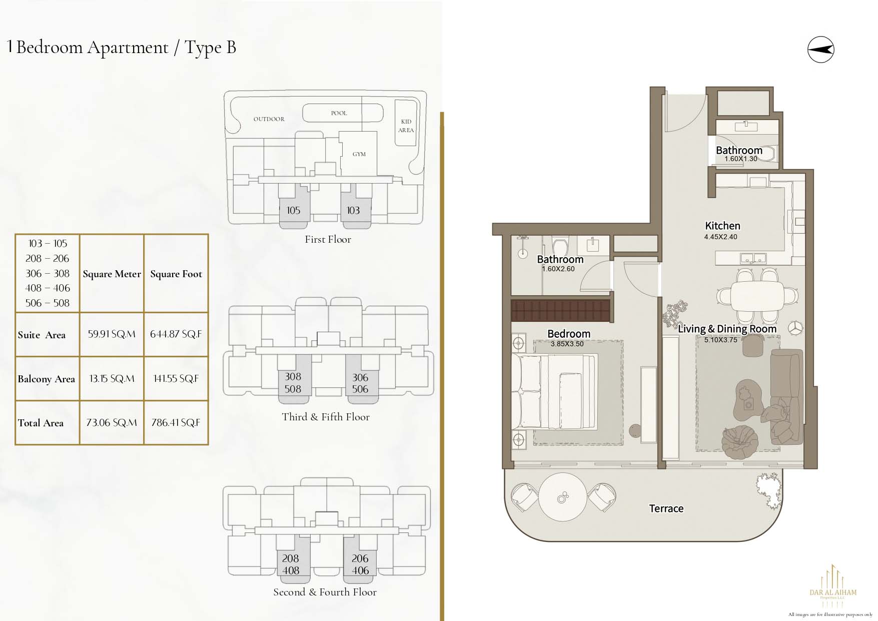 The floor plans of Dar Al Aiham One are diverse to suit the various lifestyle needs, offering studios, 1, 2 and 3-bedroom apartments. The larger-bedroom houses provide increased comfort complete with established individual and communal space. All of the layouts are focused on natural lighting, ventilation, and functional storage. Balconies are designed in a way that they can expand the living space and enhance the connection between indoors and the outside. The general planning guarantees free-flow movement and openness in each house.
