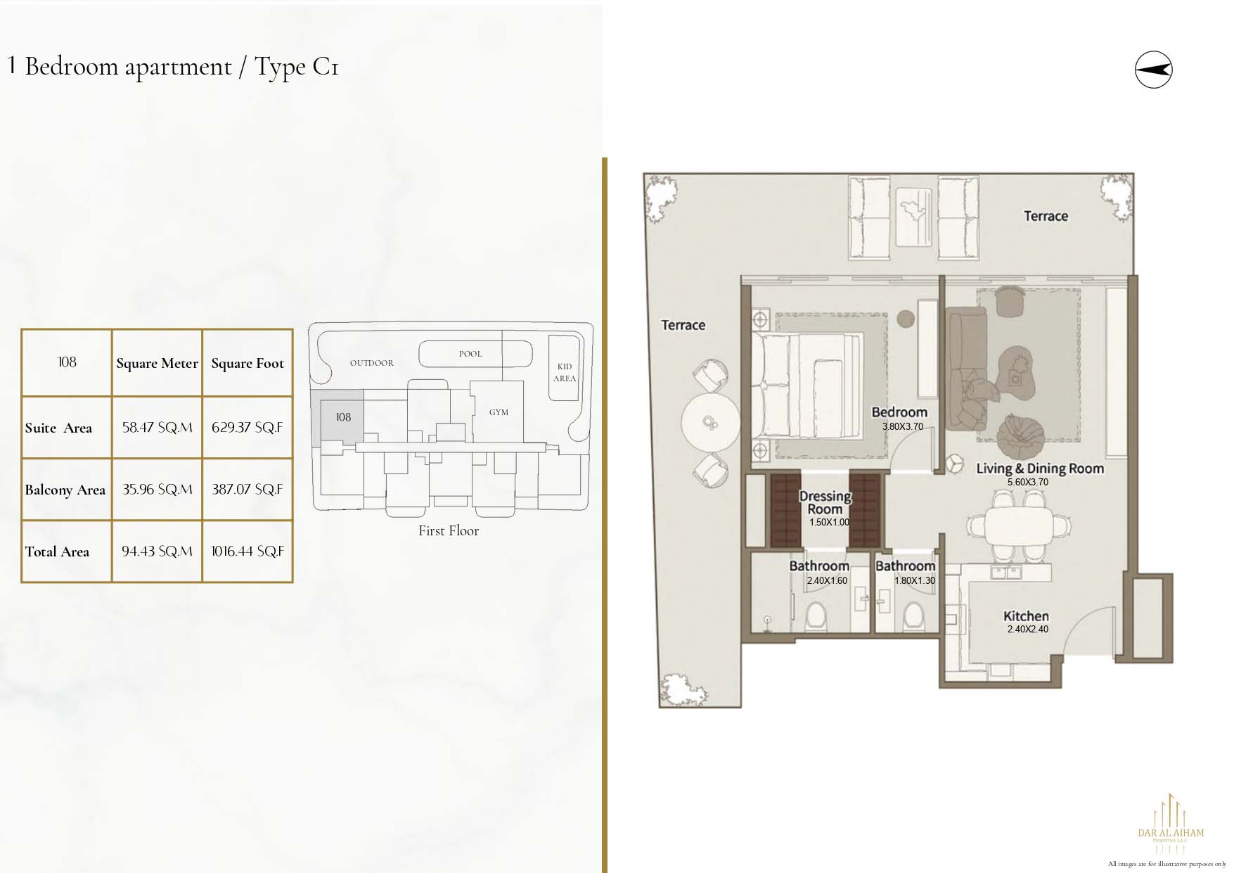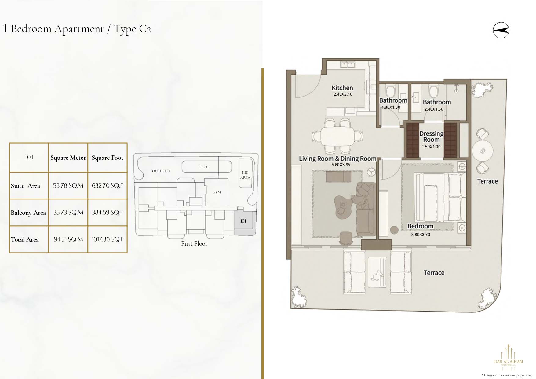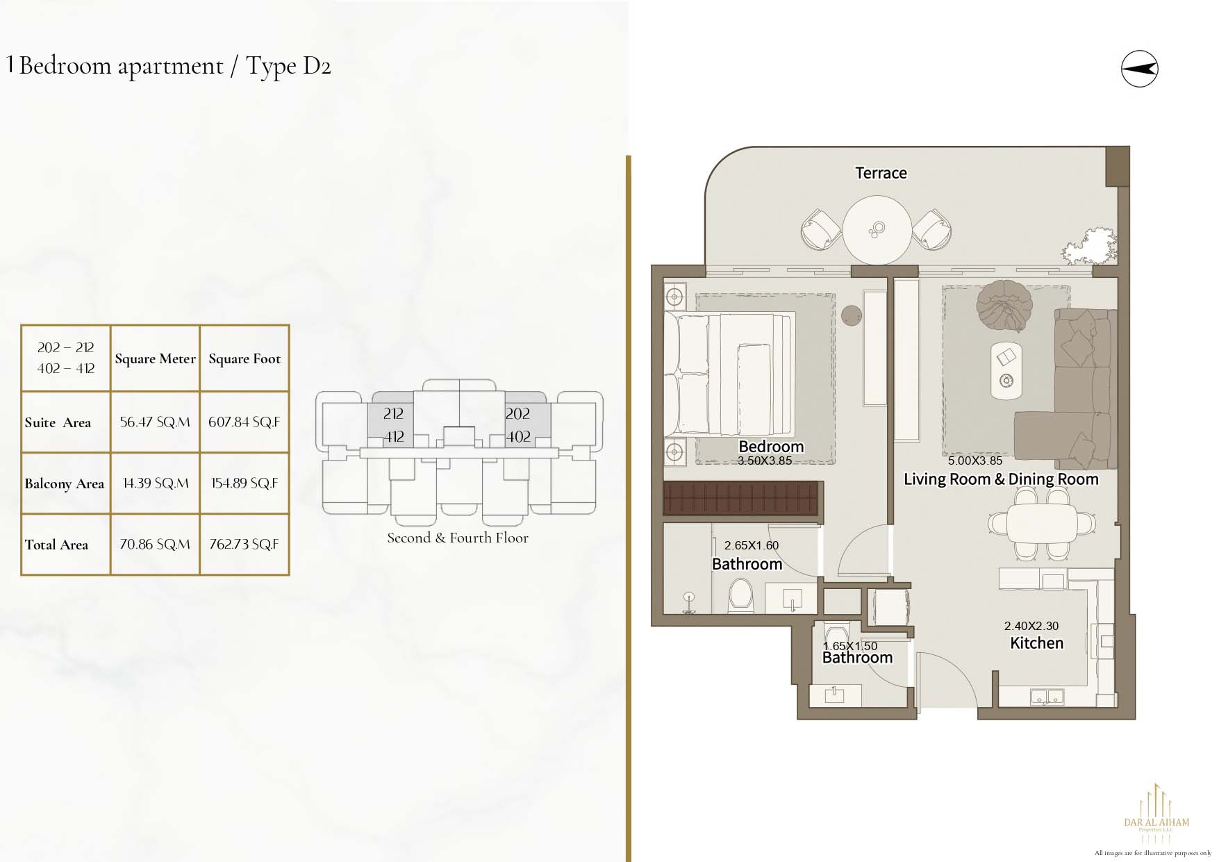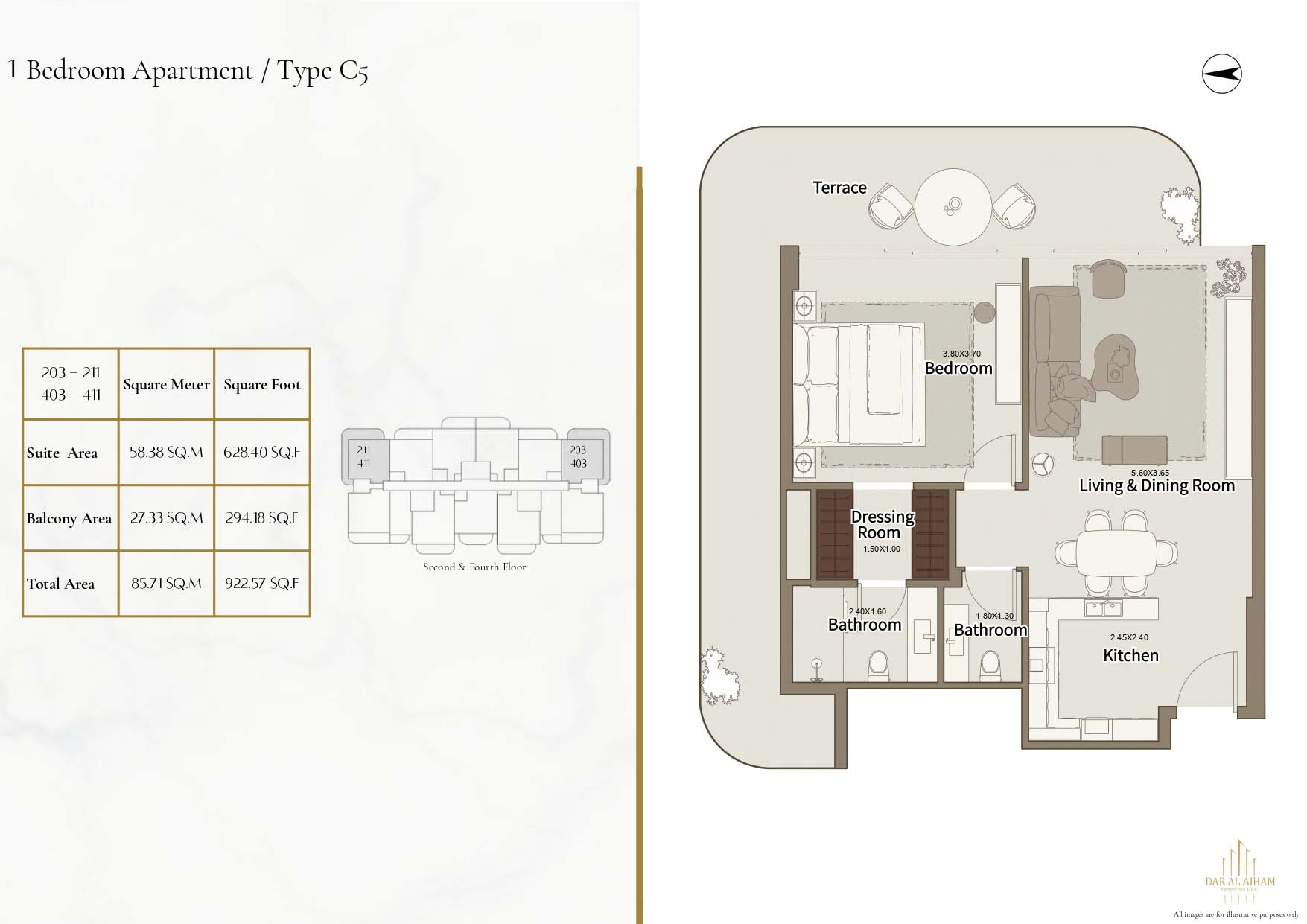 The floor plans of Dar Al Aiham One are diverse to suit the various lifestyle needs, offering studios, 1, 2 and 3-bedroom apartments. The larger-bedroom houses provide increased comfort complete with established individual and communal space. All of the layouts are focused on natural lighting, ventilation, and functional storage. Balconies are designed in a way that they can expand the living space and enhance the connection between indoors and the outside. The general planning guarantees free-flow movement and openness in each house.