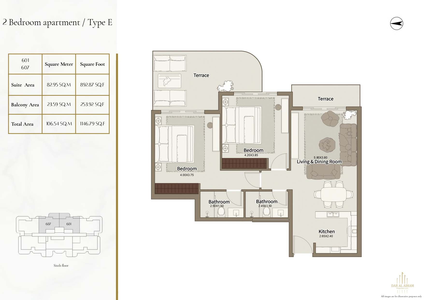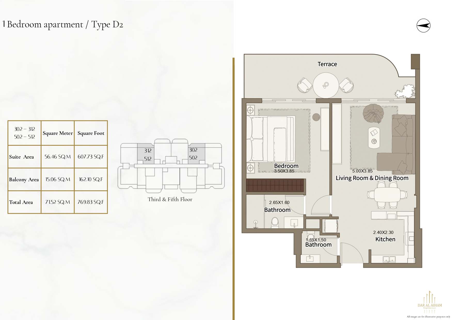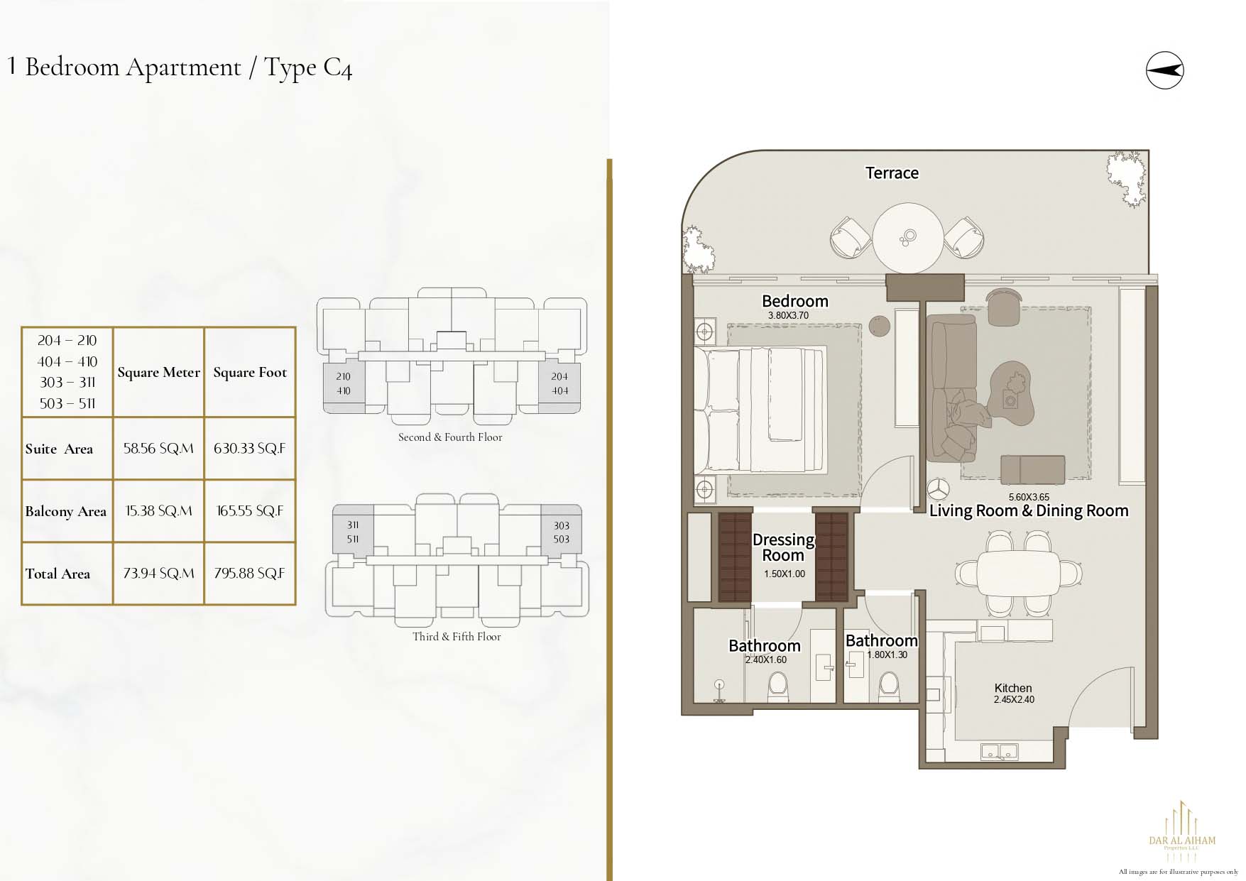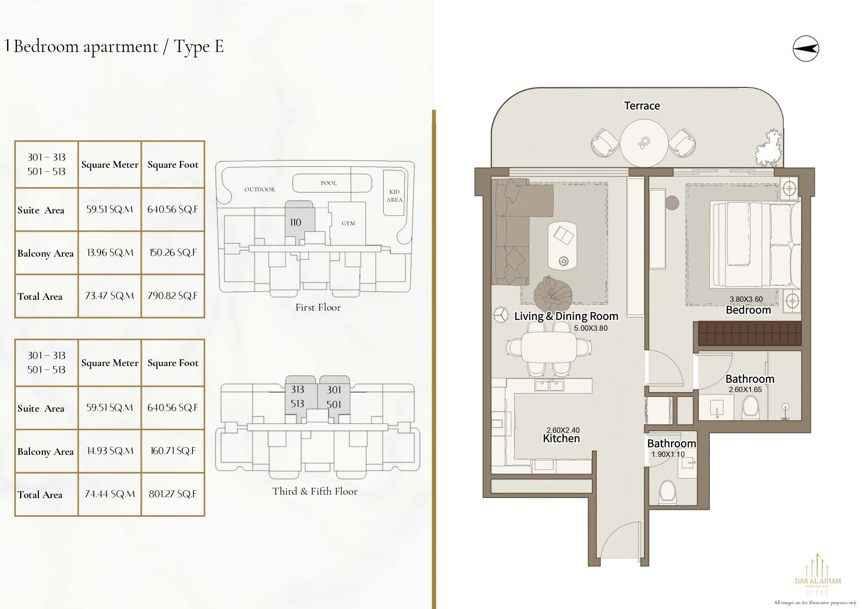 The floor plans of Dar Al Aiham One are diverse to suit the various lifestyle needs, offering studios, 1, 2 and 3-bedroom apartments. The larger-bedroom houses provide increased comfort complete with established individual and communal space. All of the layouts are focused on natural lighting, ventilation, and functional storage. Balconies are designed in a way that they can expand the living space and enhance the connection between indoors and the outside. The general planning guarantees free-flow movement and openness in each house.