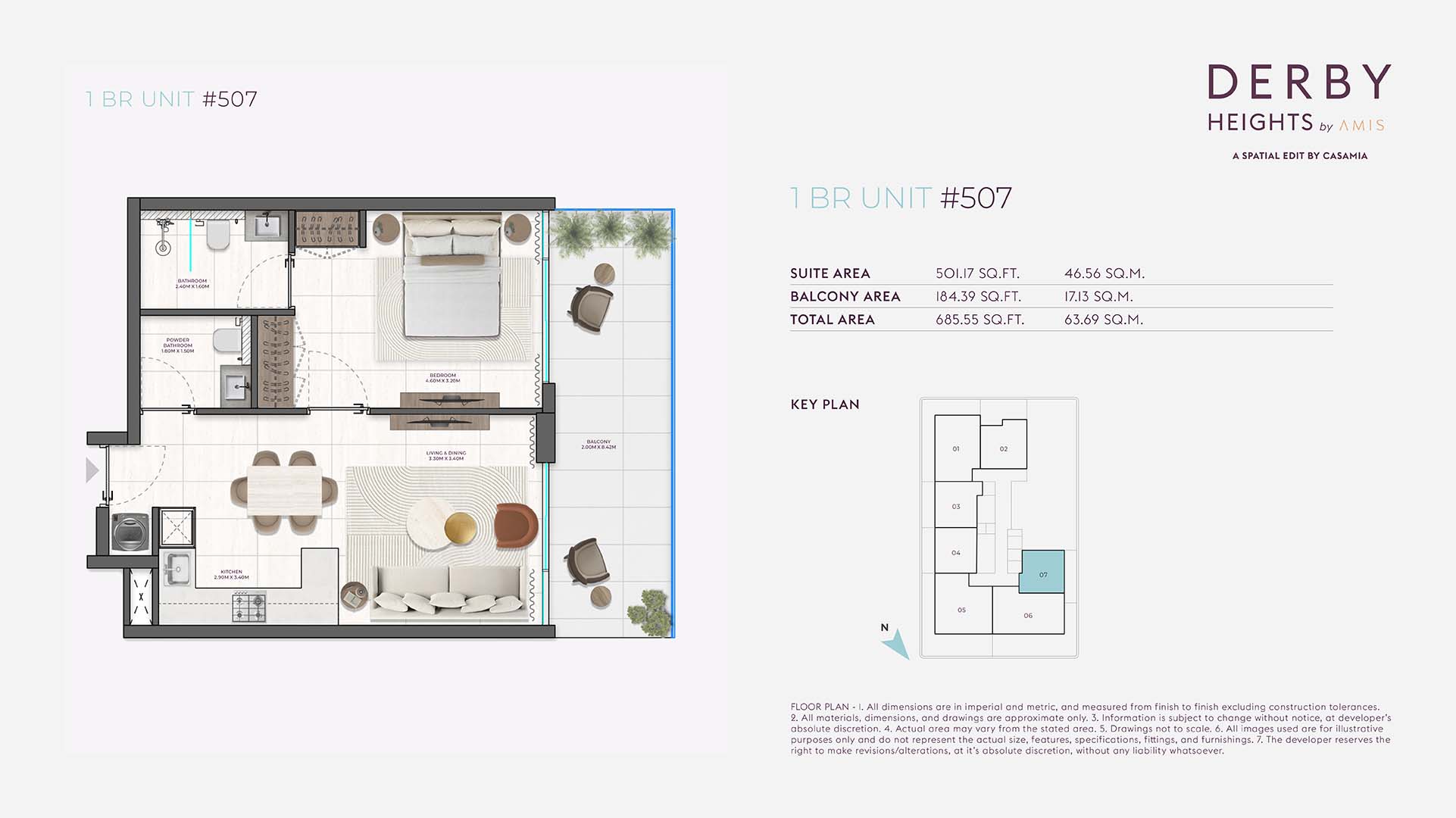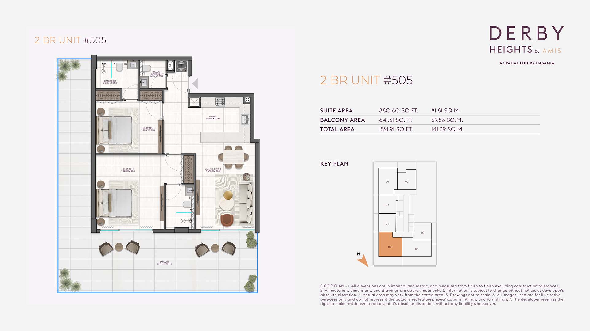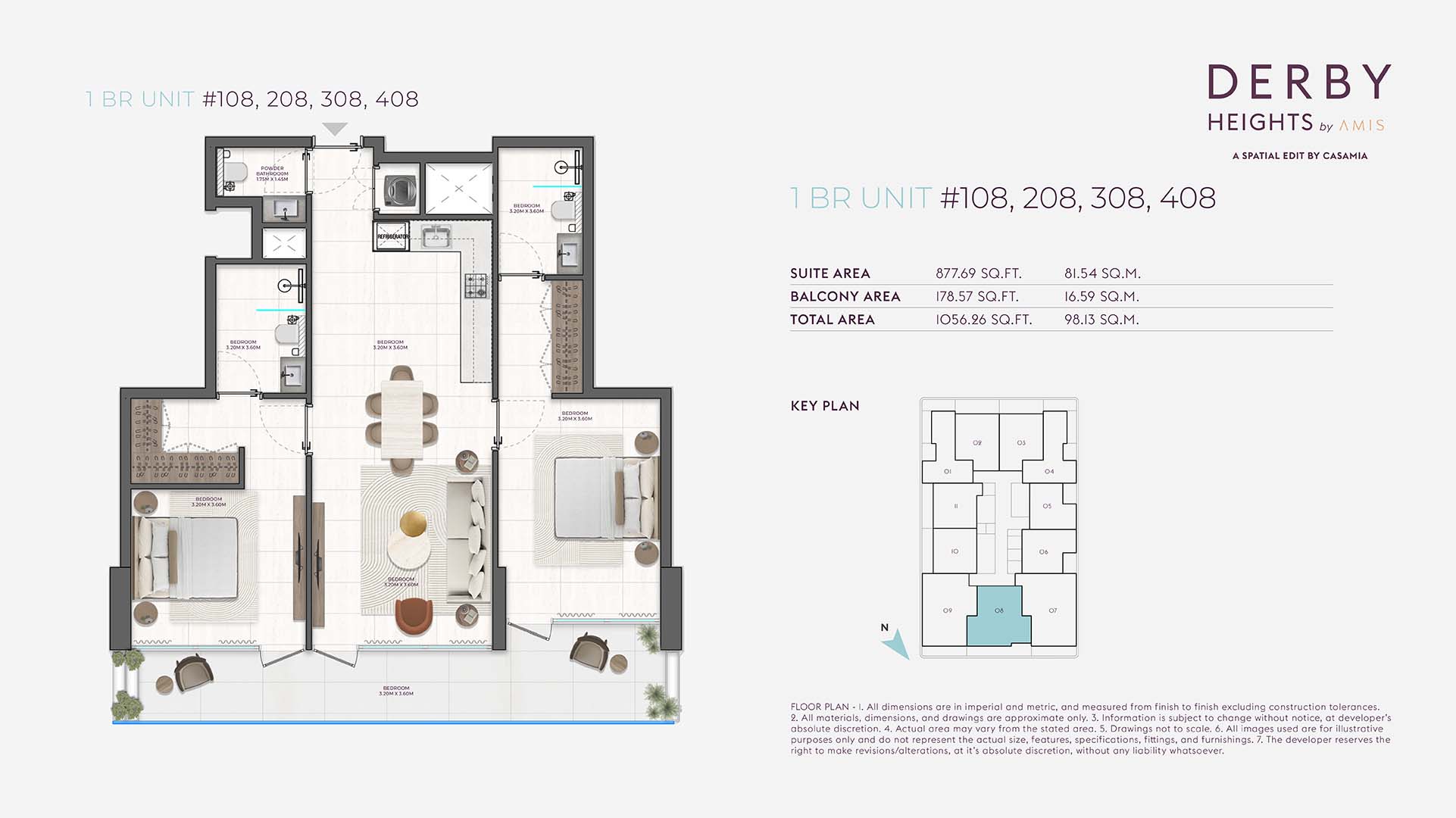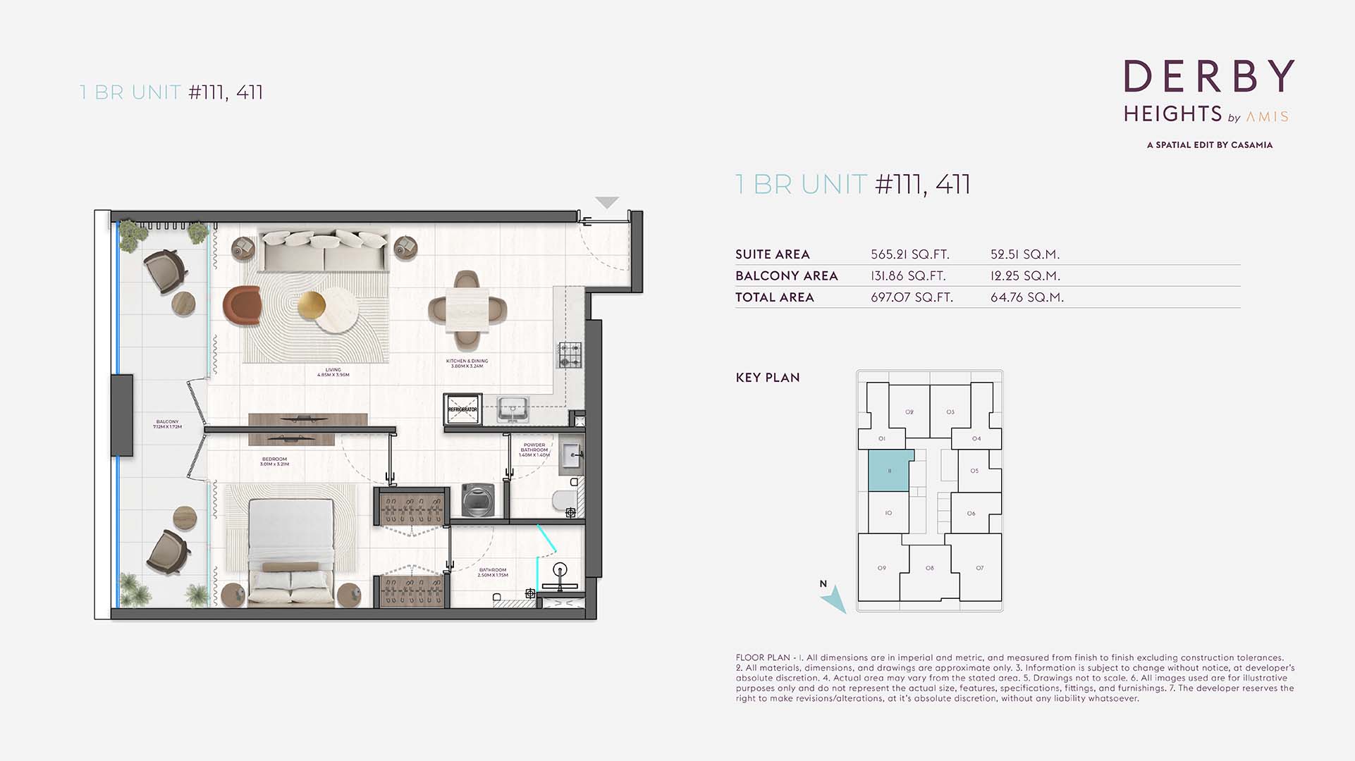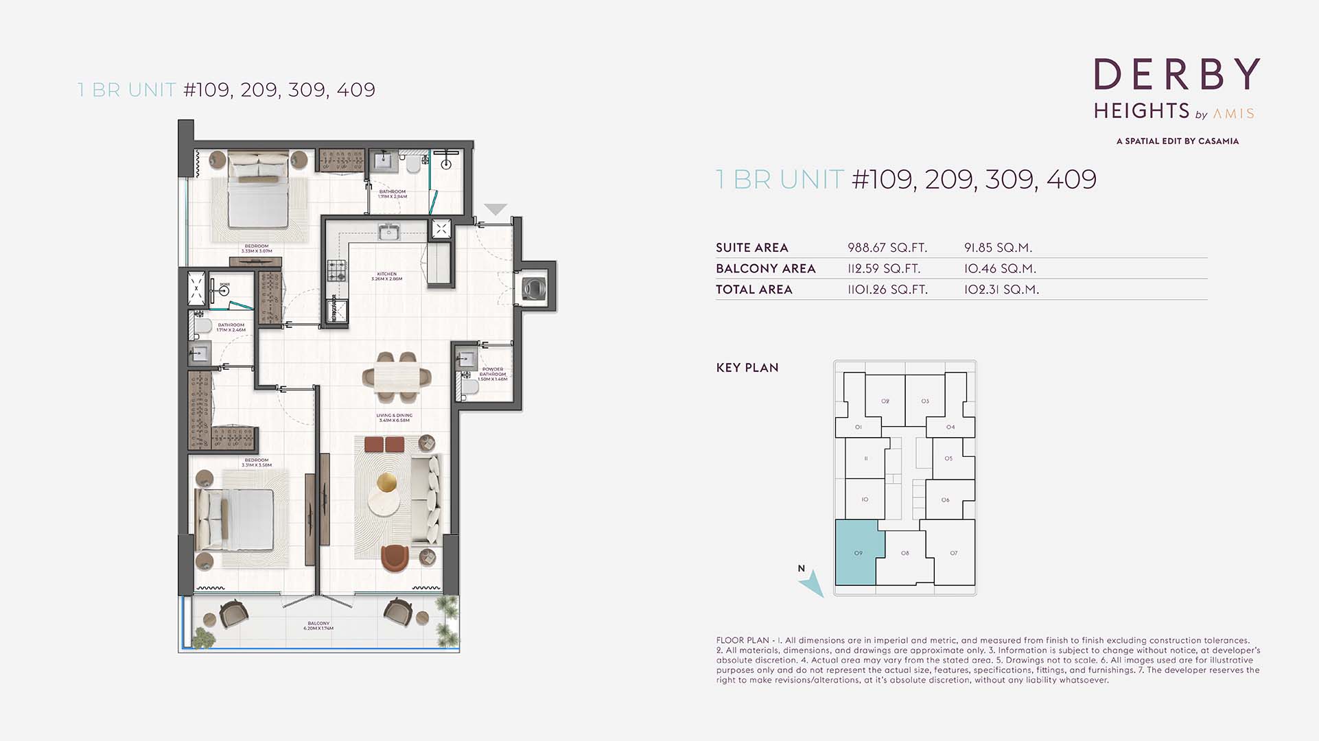 Derby Heights floor plan has been strategically planned with 1 and 2-bedroom units. The planned layout suits a variety of lifestyles, ensuring each apartment feels comfortable. Each residence has spacious open layout design with elegant furnishings, modern modular kitchen and fully fitted bathrooms finished with high-quality fixtures.