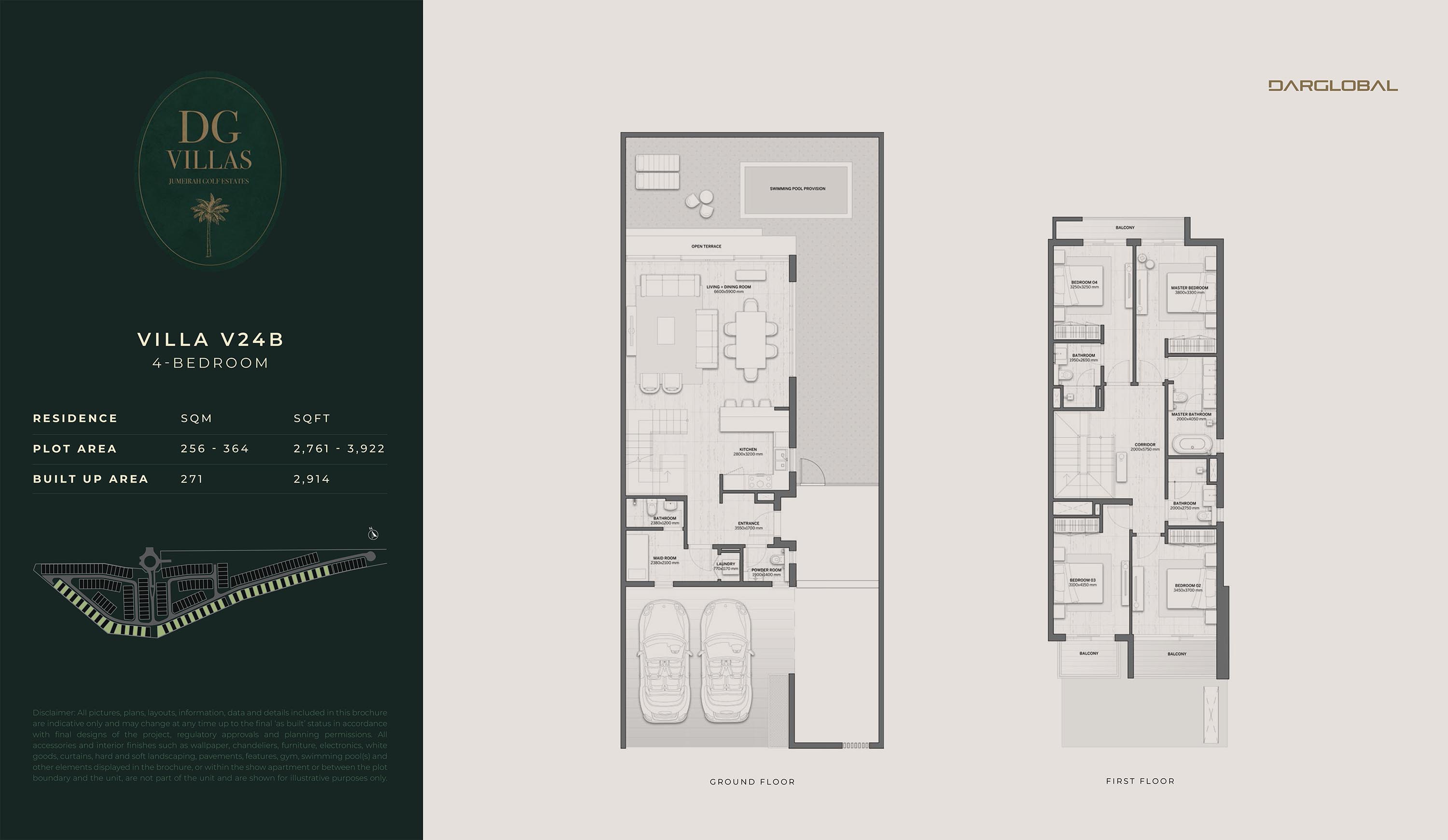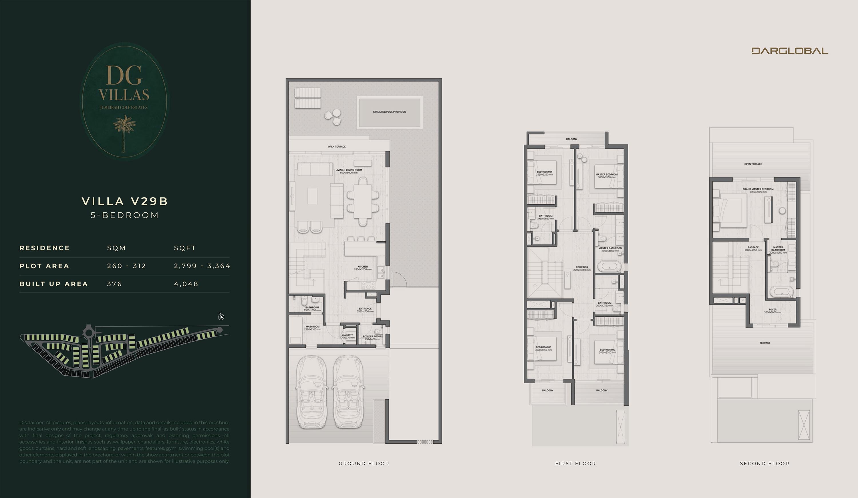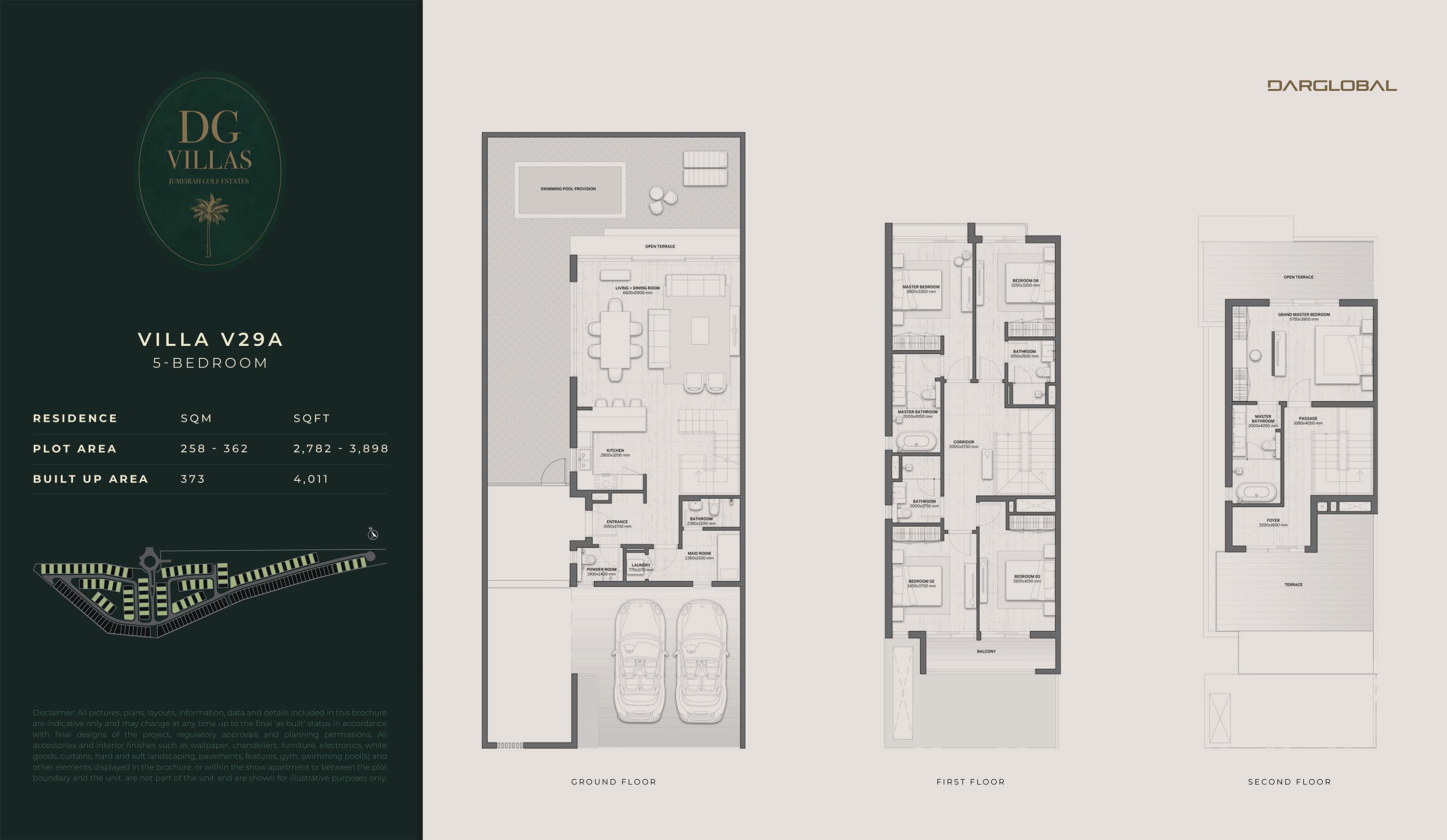 Floor plans of 4 & 5-bedroom villas are impressively built in the large and premium residential development of Dar Global Villas to deliver an upscale lifestyle. Here, each home is made massively with contemporary and meticulous aesthetics, while the traditional design, soft & striking themes easily blend into the verdant greenery. The inviting and spacious layouts of interiors with modern & sustainable features, premium elements and furnished rooms ensure the fusion of style and comfort.