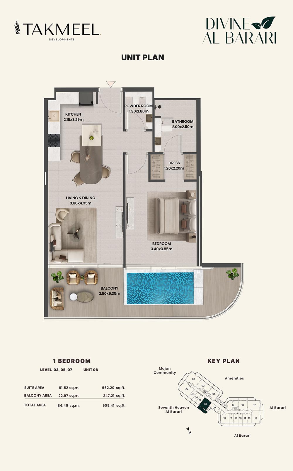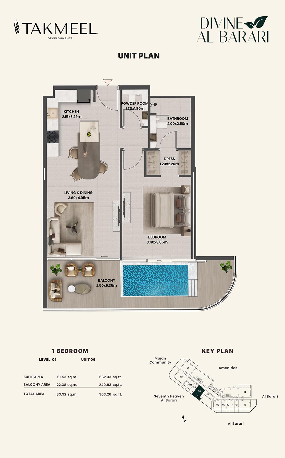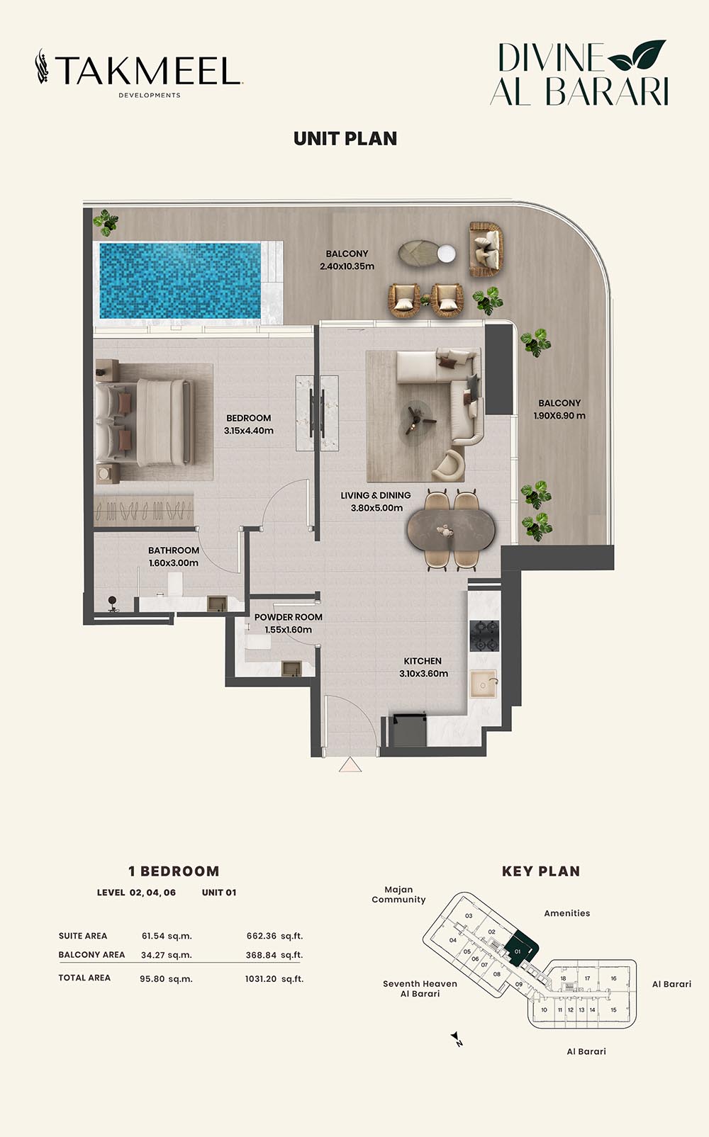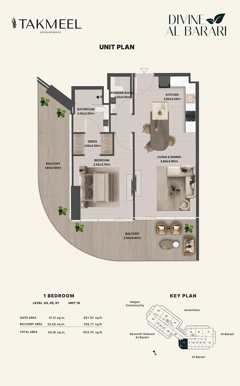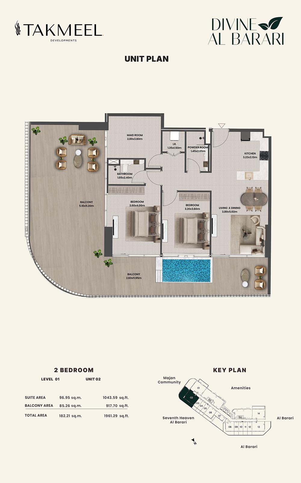 Divine Al Barari, set in Wadi Al Safa 3, offers a meticulously planned floor plan, offering residents large, luxurious spaces each and every day. For example, there are generous floorplans in the villas ranging from multiple bedrooms, living rooms, private outdoor areas which make the rooms spacious enough for families, retreating individuals, and the alike, ensuring comfort and privacy.