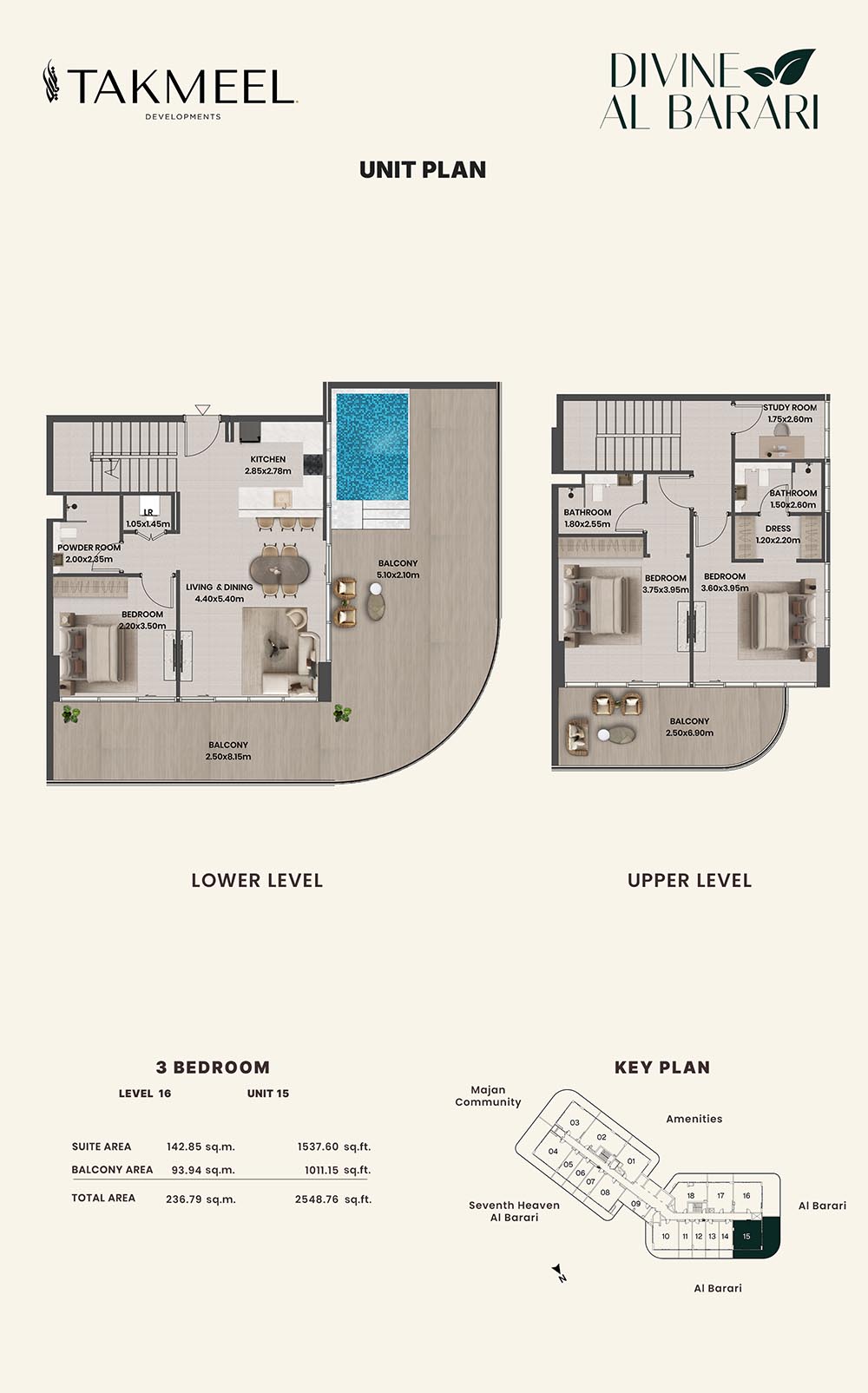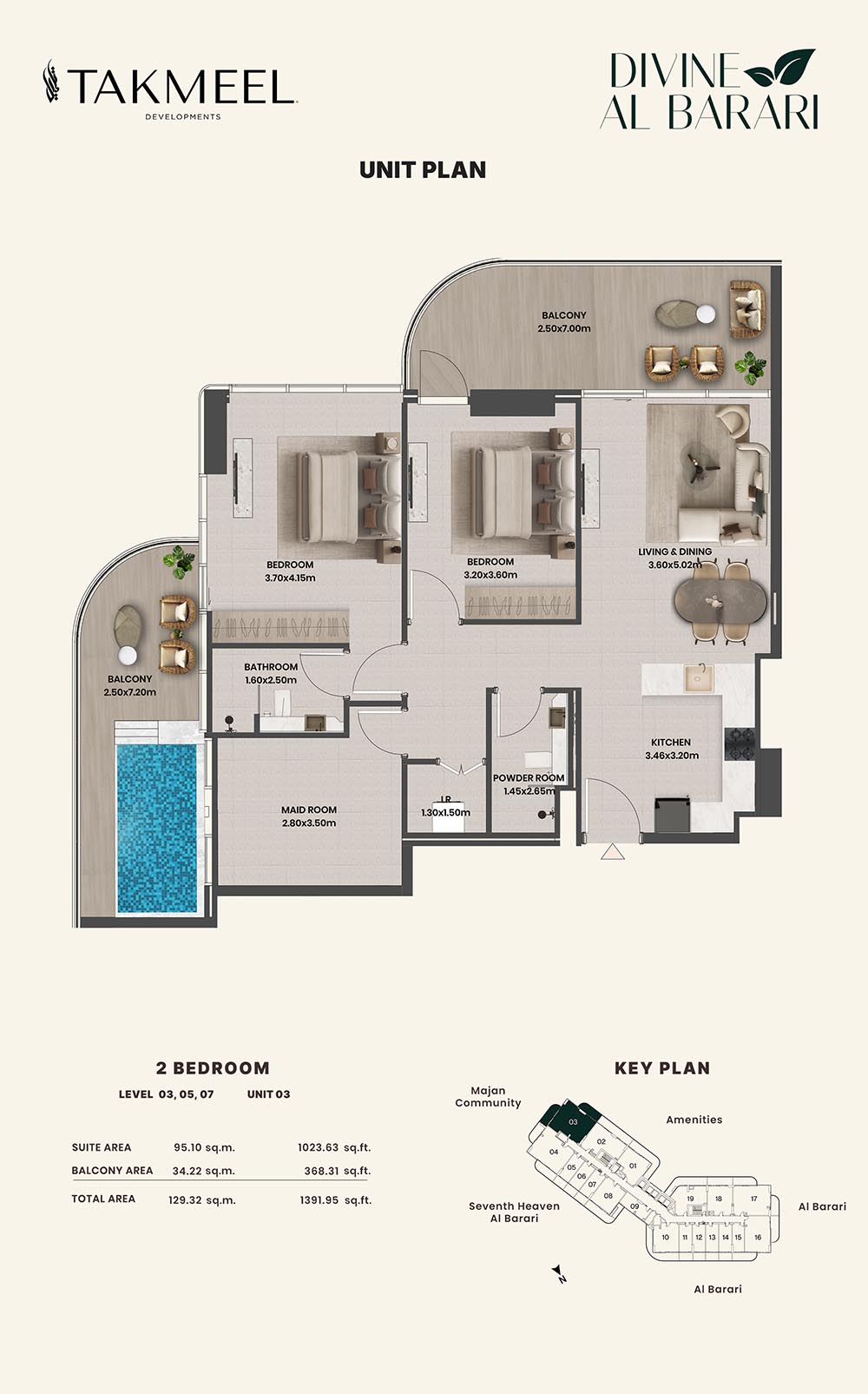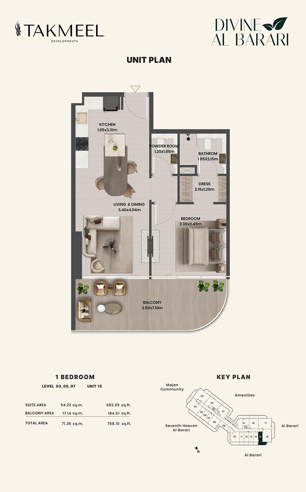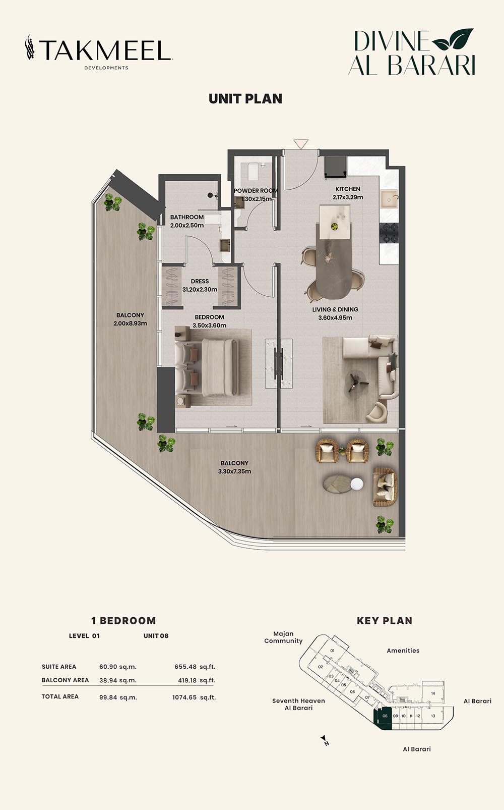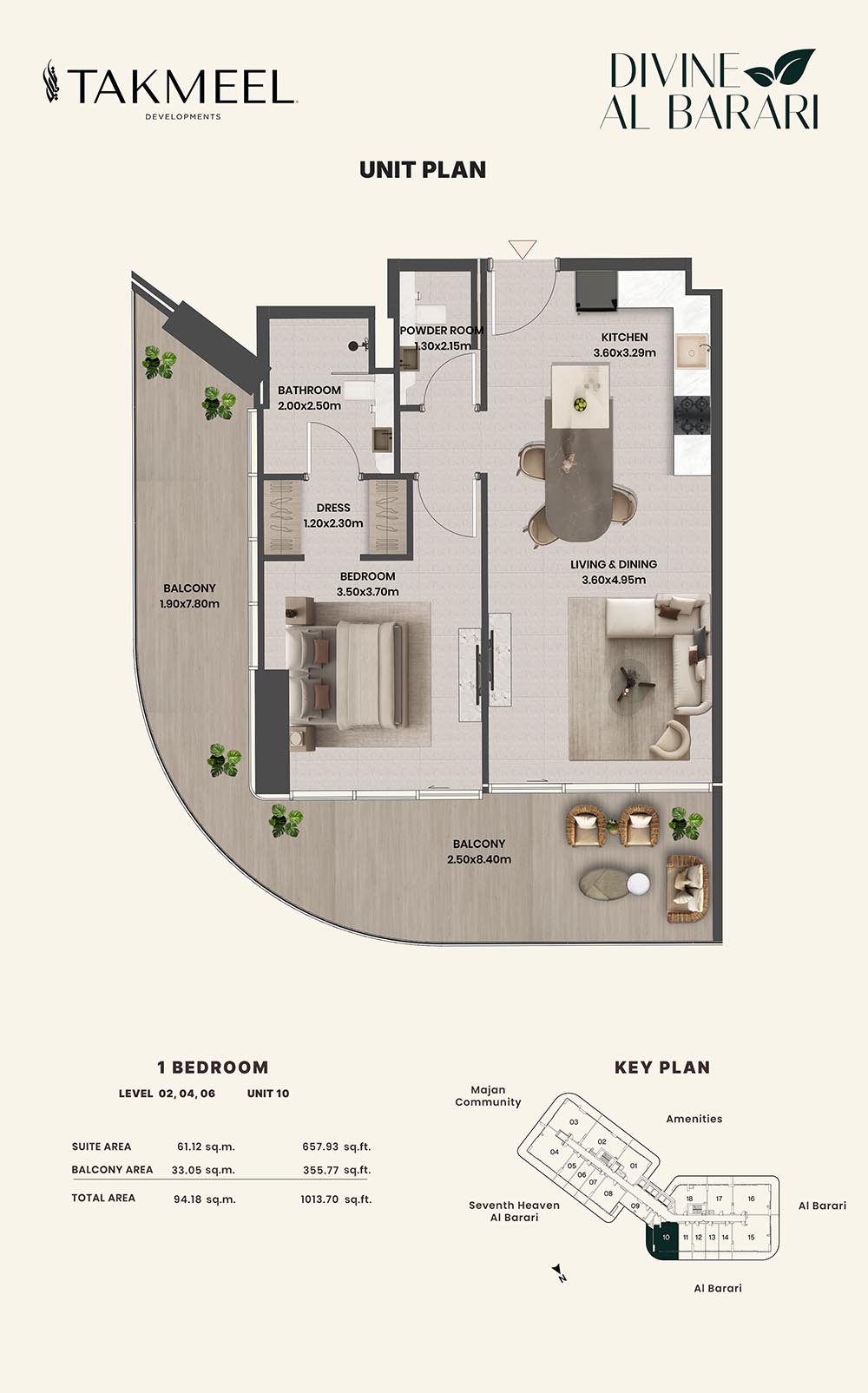 Divine Al Barari, set in Wadi Al Safa 3, offers a meticulously planned floor plan, offering residents large, luxurious spaces each and every day. For example, there are generous floorplans in the villas ranging from multiple bedrooms, living rooms, private outdoor areas which make the rooms spacious enough for families, retreating individuals, and the alike, ensuring comfort and privacy.