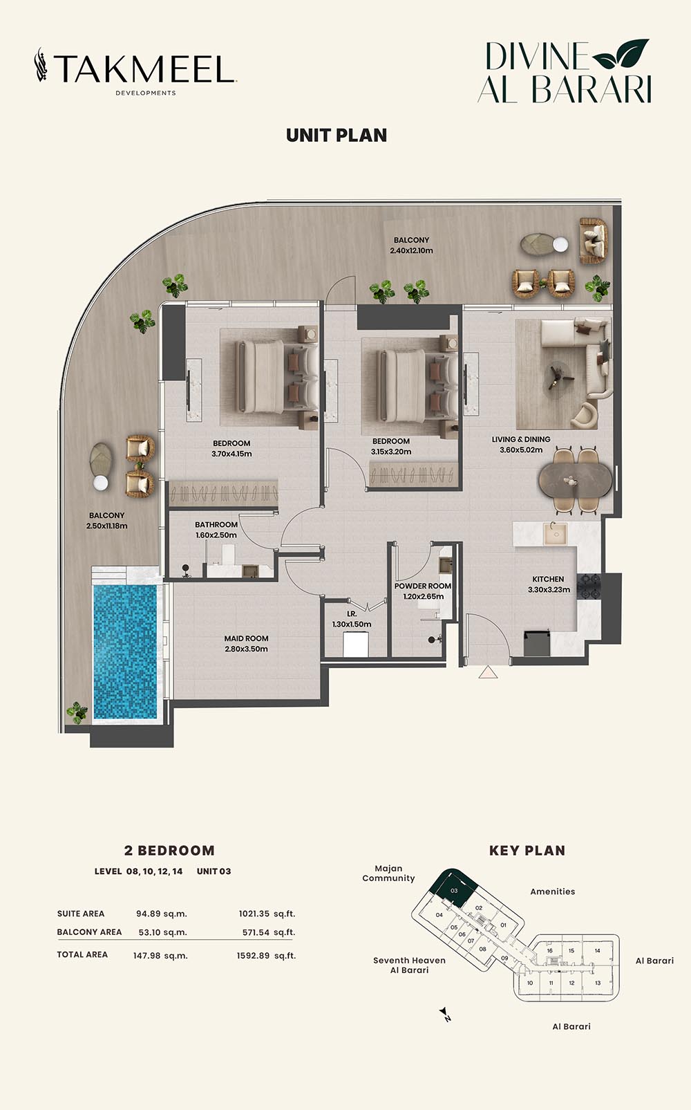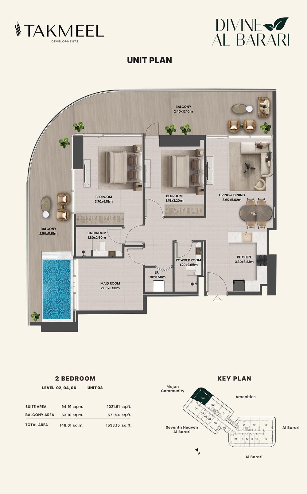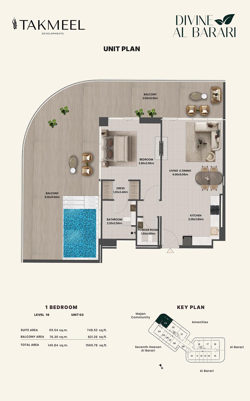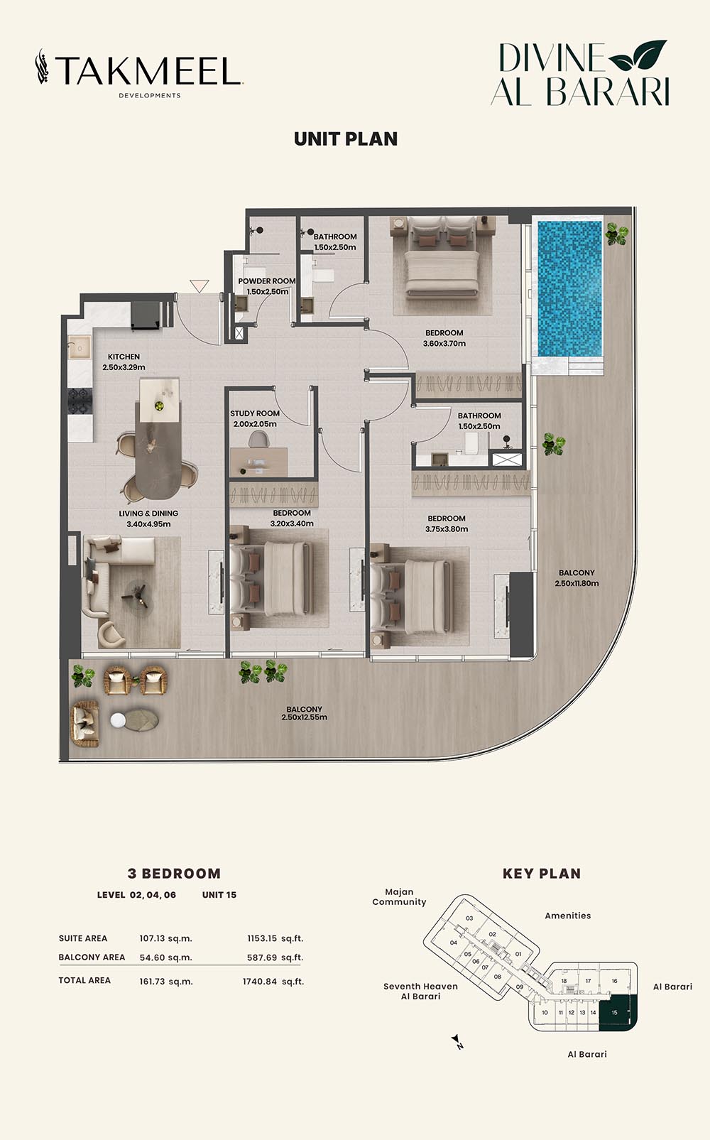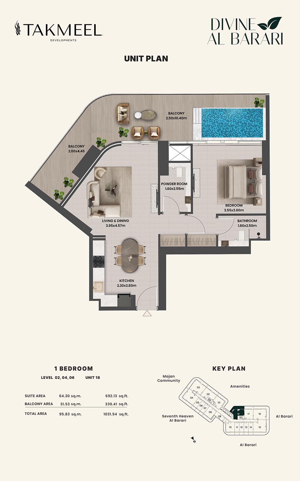 Divine Al Barari, set in Wadi Al Safa 3, offers a meticulously planned floor plan, offering residents large, luxurious spaces each and every day. For example, there are generous floorplans in the villas ranging from multiple bedrooms, living rooms, private outdoor areas which make the rooms spacious enough for families, retreating individuals, and the alike, ensuring comfort and privacy.