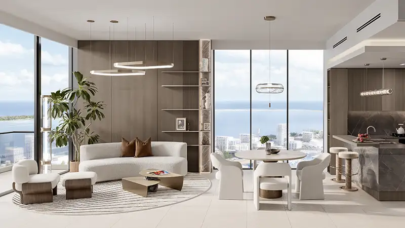- Premium apartments and penthouses, designed to echo the sails of Dubai’s maritime past while embracing the sleek geometry of modern architecture.
