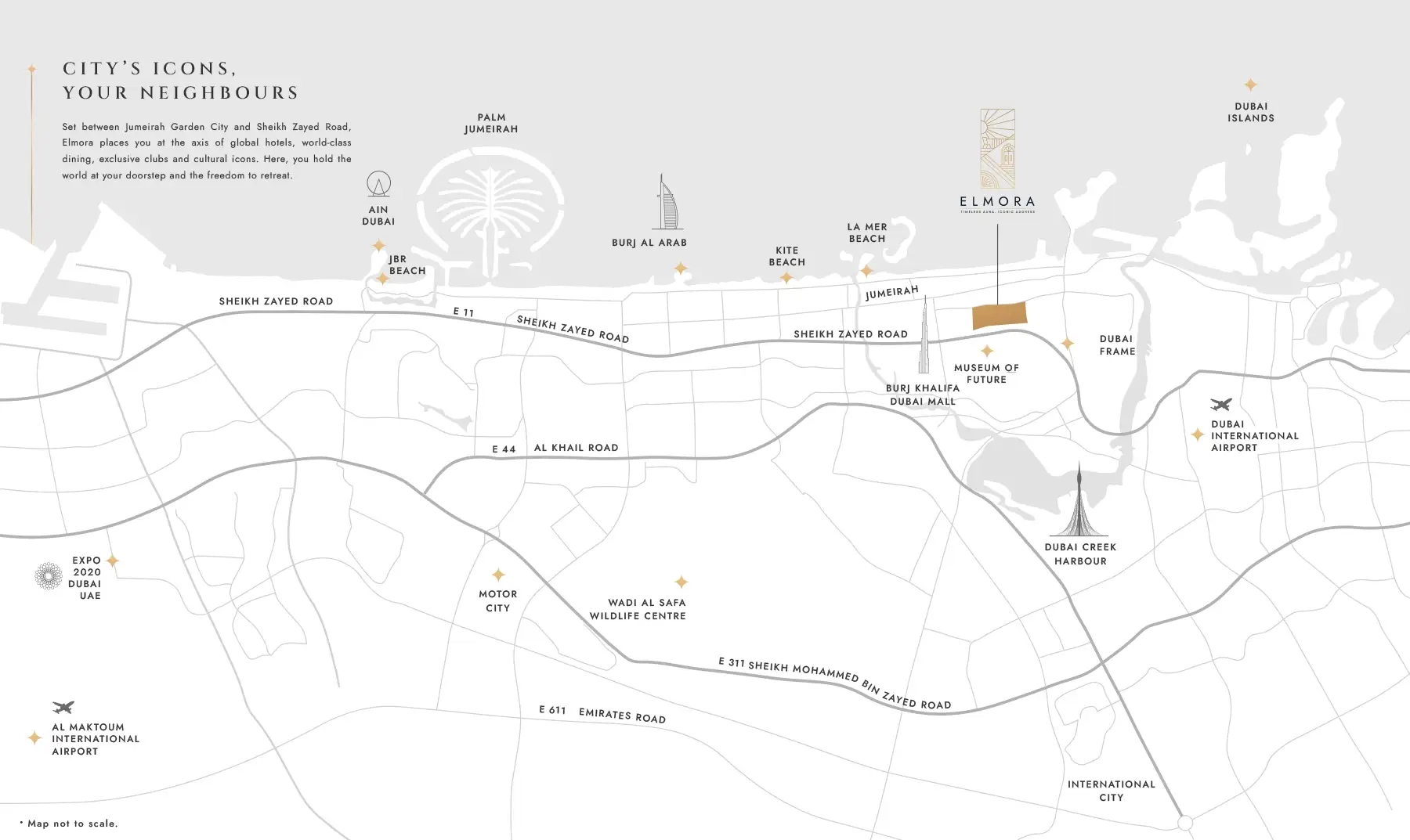 - Prime location in Jumeirah Garden City near Sheikh Zayed Road and iconic Dubai landmarks.