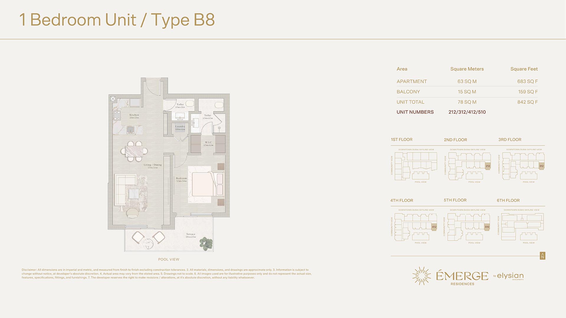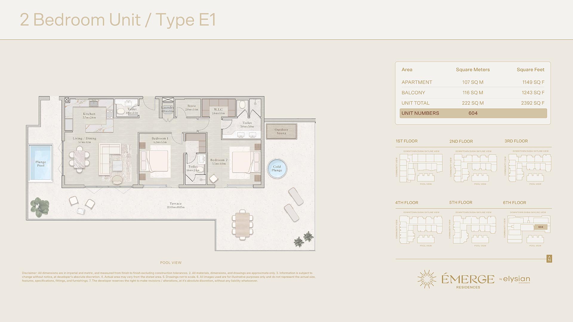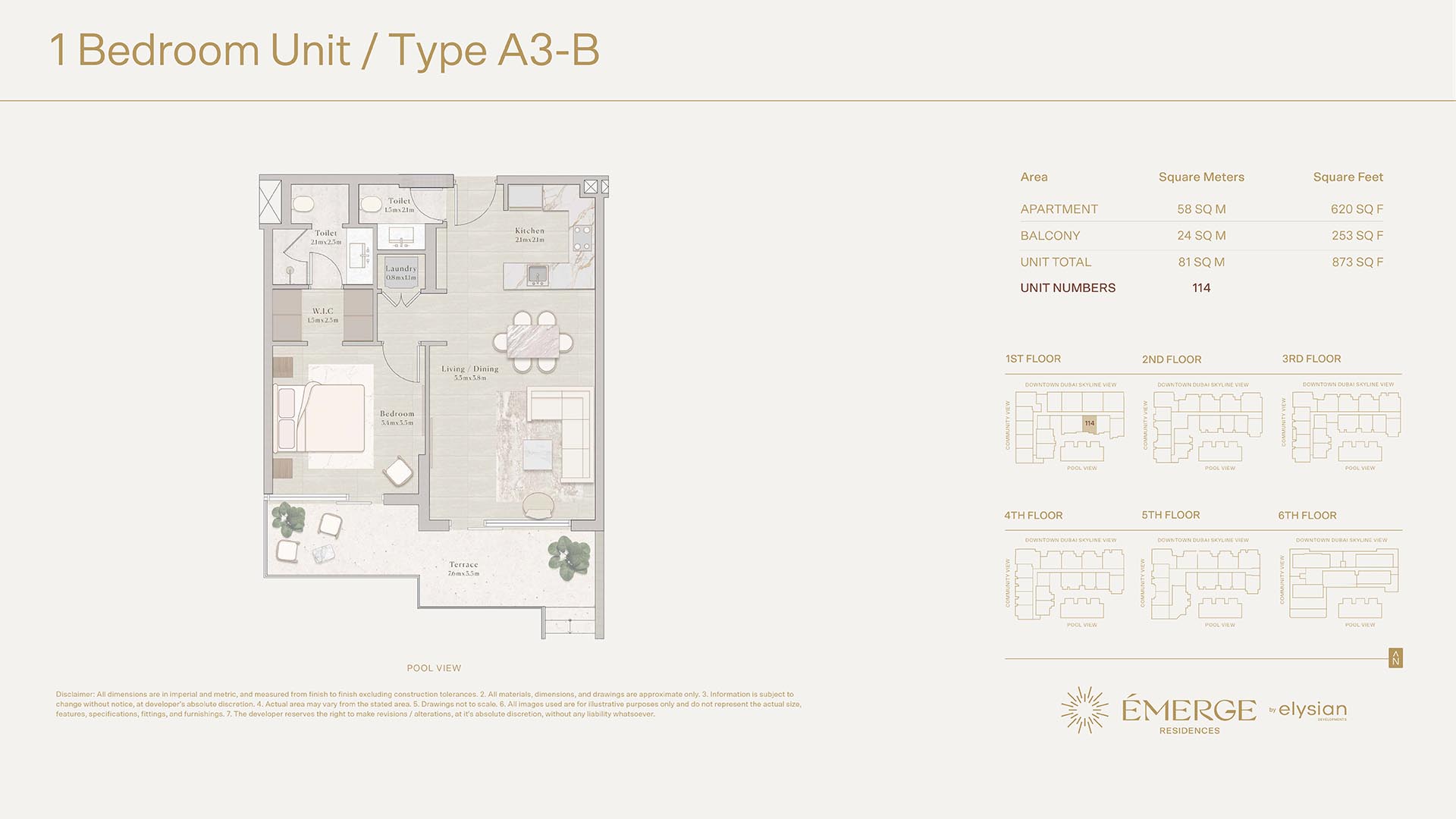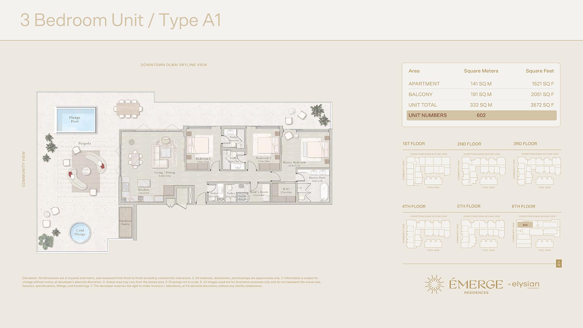 Emerge Residences is a statement of elevated and wellness lifestyle, offering within its luxury 1, 2, & 3-bedroom apartments and well-sculpted floor plans. This 6-storey boutique-style residential icon features only 78 residences, where 11 extraordinary units are designed to complement the well-being of its dwellers. The well-being collection consists of a private pool, outdoor sauna, and cold plunge. However, all homes are defined by rich and inviting sun-lit ambience with intricate, soft bright, and stylish looks. All residences come with chef-grade kitchens and integration of Miele appliances, spa-inspired bathrooms curated with Travertine-finished flooring.