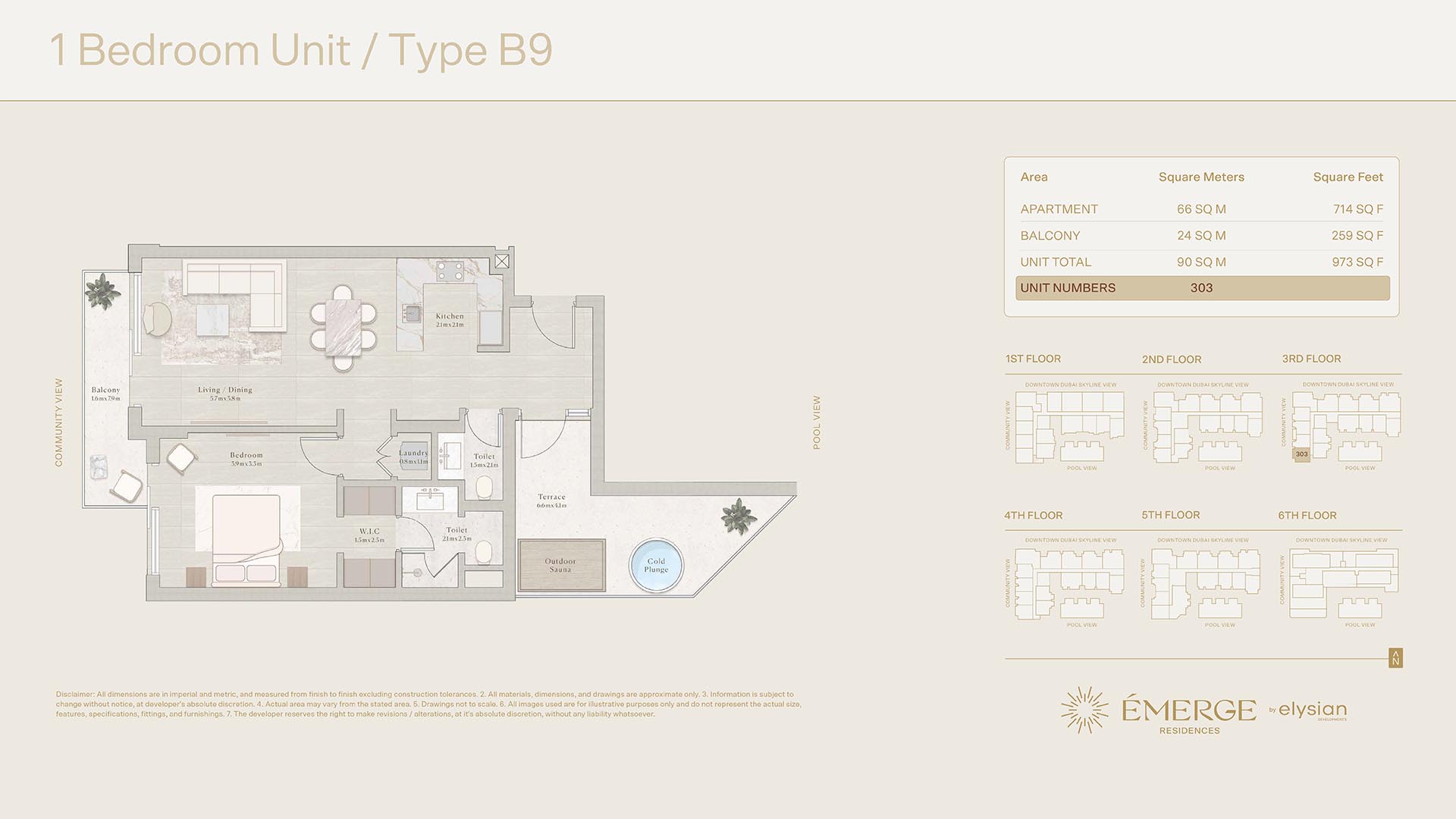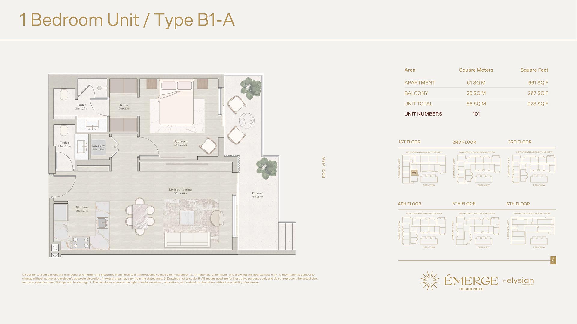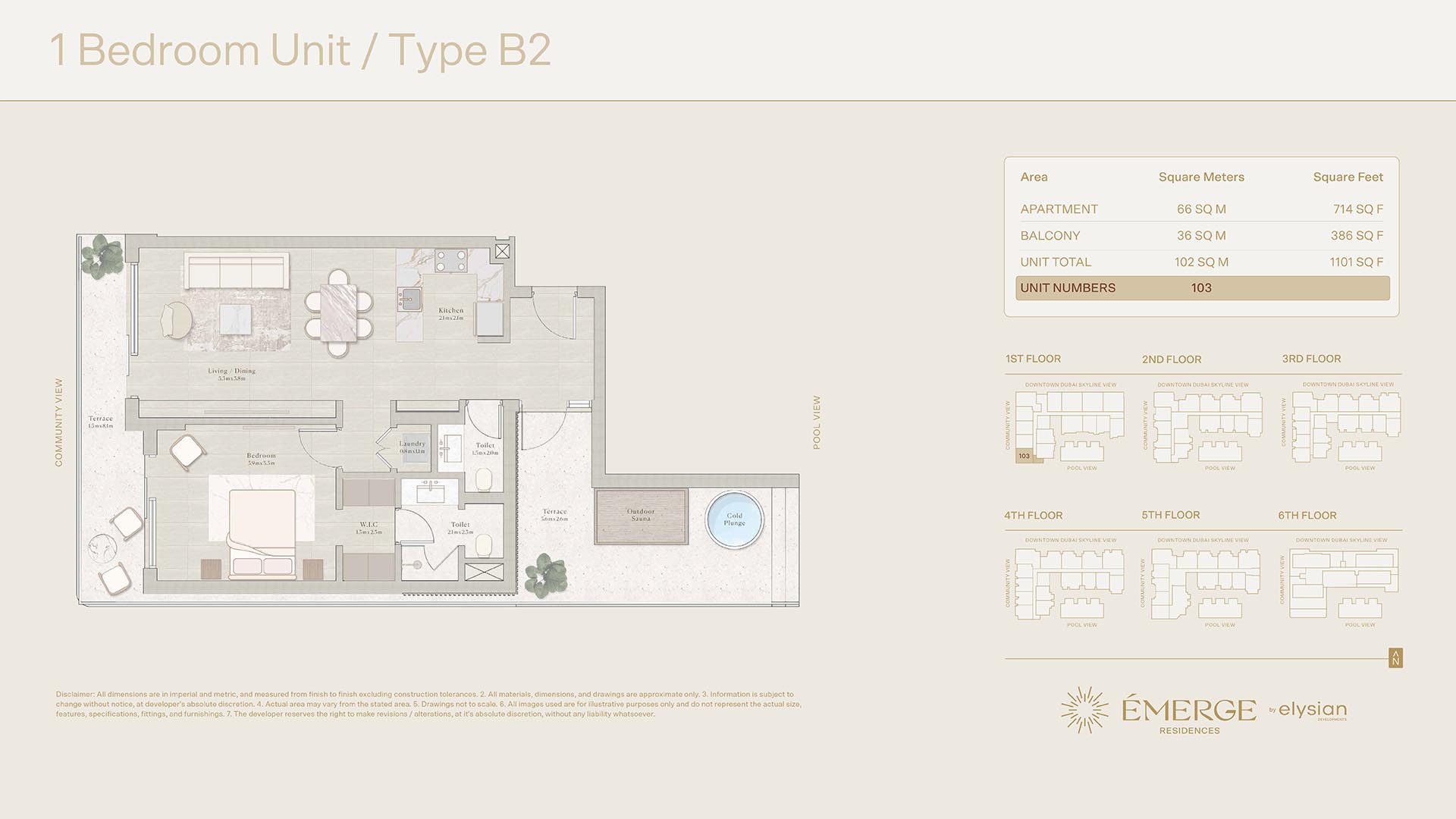 Emerge Residences is a statement of elevated and wellness lifestyle, offering within its luxury 1, 2, & 3-bedroom apartments and well-sculpted floor plans. This 6-storey boutique-style residential icon features only 78 residences, where 11 extraordinary units are designed to complement the well-being of its dwellers. The well-being collection consists of a private pool, outdoor sauna, and cold plunge. However, all homes are defined by rich and inviting sun-lit ambience with intricate, soft bright, and stylish looks. All residences come with chef-grade kitchens and integration of Miele appliances, spa-inspired bathrooms curated with Travertine-finished flooring.