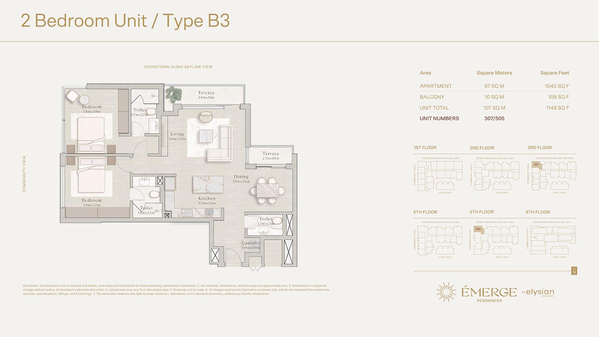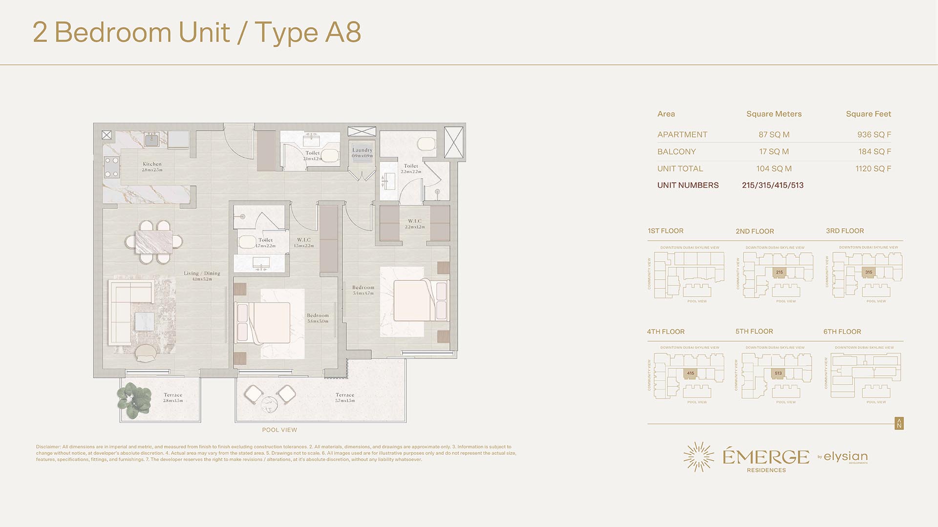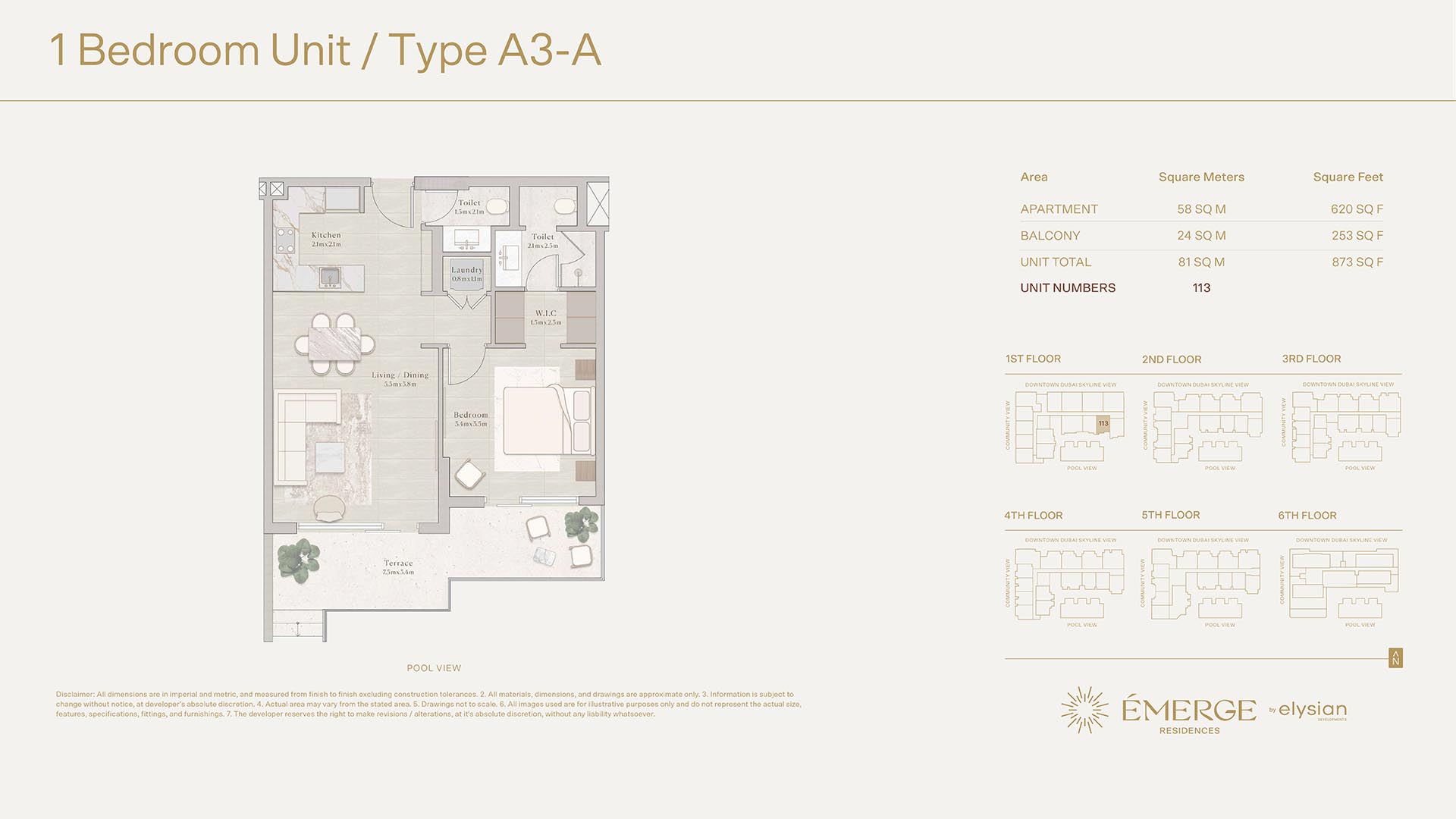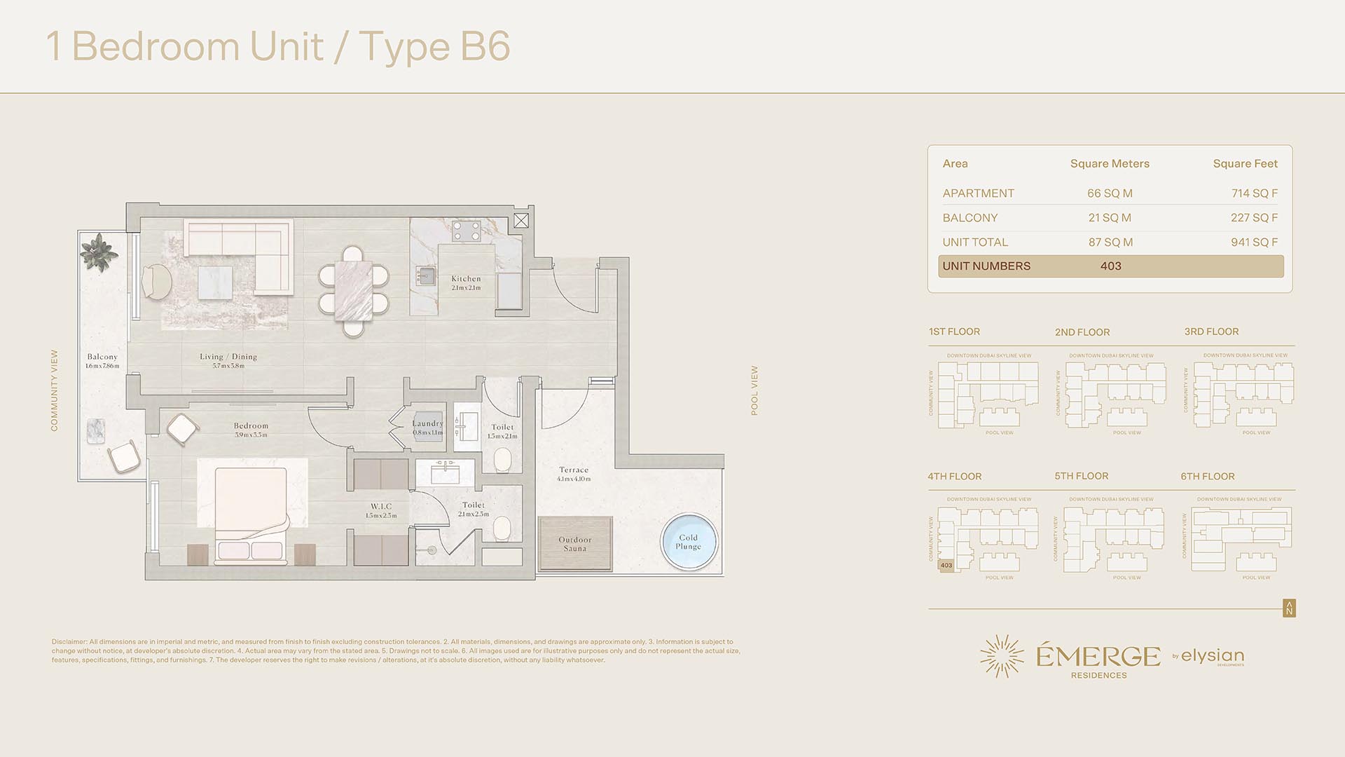 Emerge Residences is a statement of elevated and wellness lifestyle, offering within its luxury 1, 2, & 3-bedroom apartments and well-sculpted floor plans. This 6-storey boutique-style residential icon features only 78 residences, where 11 extraordinary units are designed to complement the well-being of its dwellers. The well-being collection consists of a private pool, outdoor sauna, and cold plunge. However, all homes are defined by rich and inviting sun-lit ambience with intricate, soft bright, and stylish looks. All residences come with chef-grade kitchens and integration of Miele appliances, spa-inspired bathrooms curated with Travertine-finished flooring.