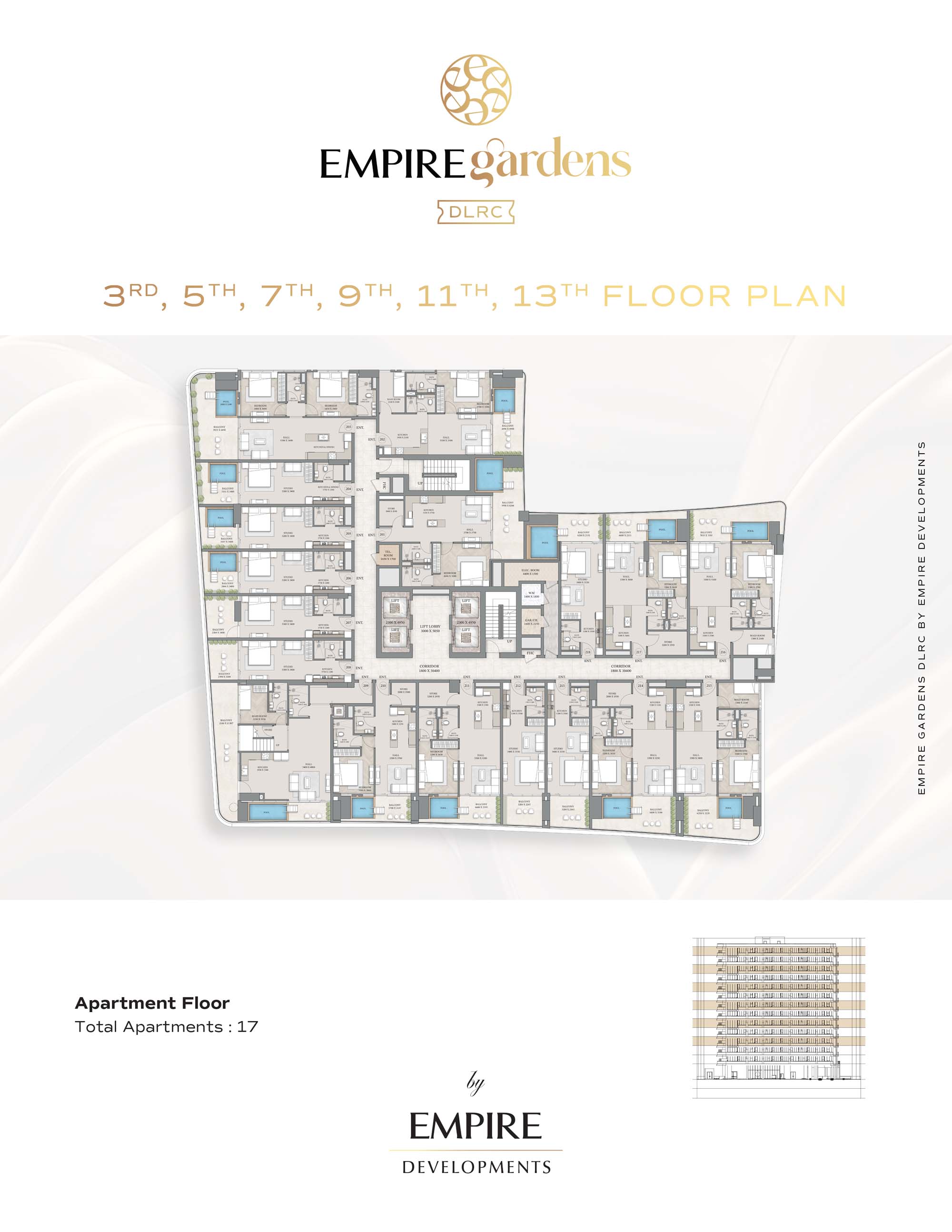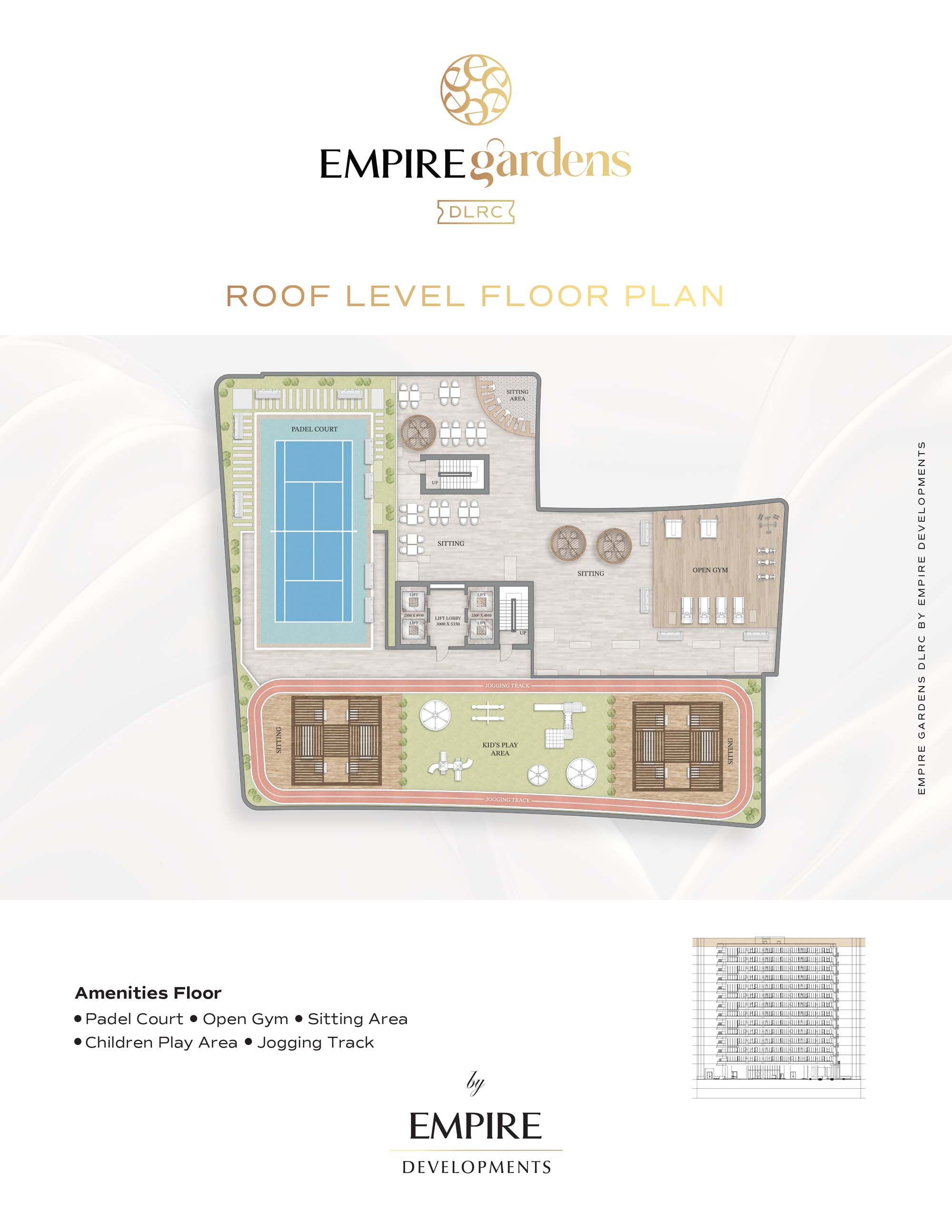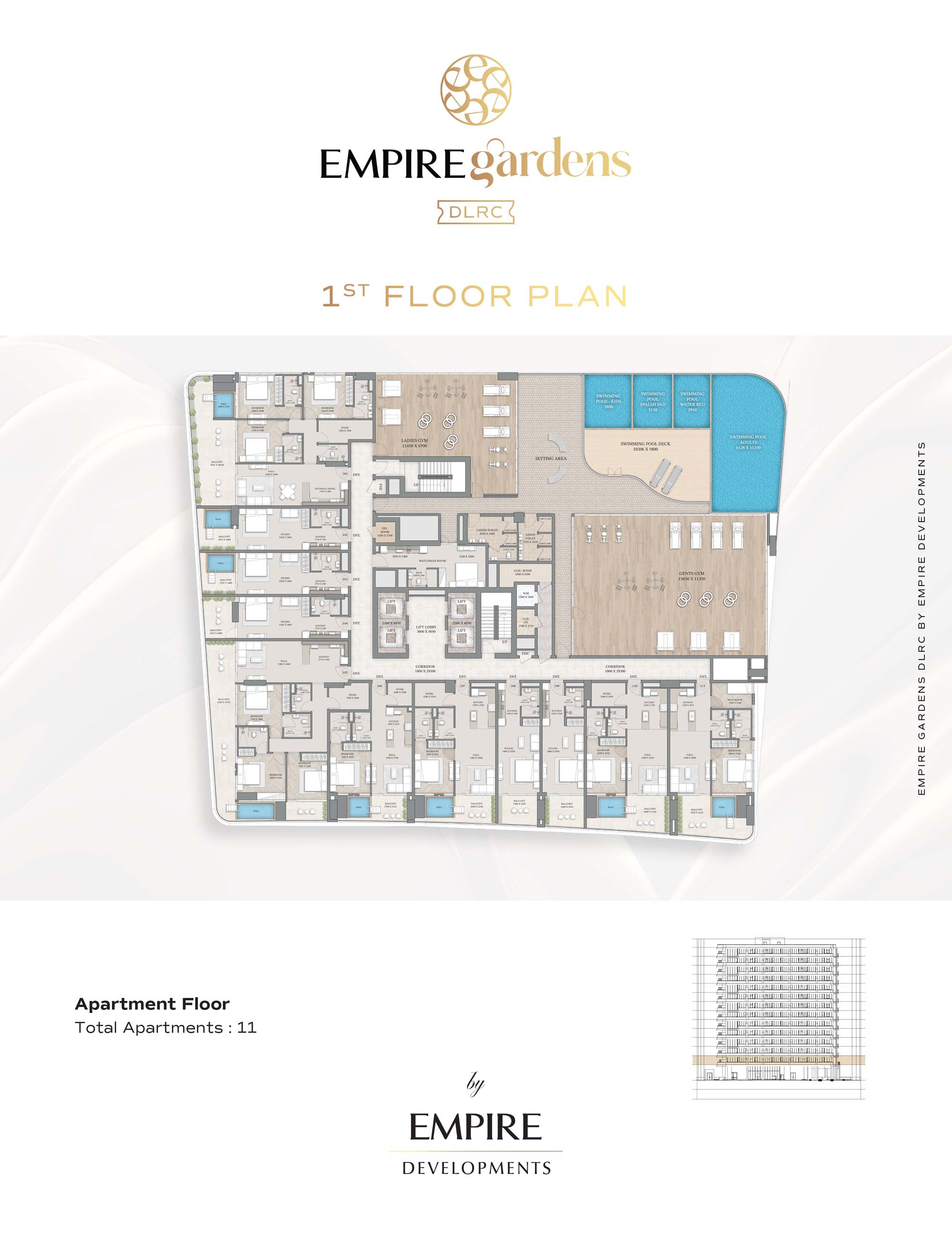 Empire Gardens has well calculated floor plans of studios, 1, 2 & 3-bedroom apartments, duplex, along with pool units. The units are characterized by open plan designs and the living, dining and personal areas are well defined in open spaces to create the perception of space. Large windows and balances are tactically introduced to enhance the natural light and ventilation. Such higher configurations add the extra bonus of en-suite bedrooms, storage areas and some even have a private pool to add extra touch of comfort as well as modern architecture to the living experience.