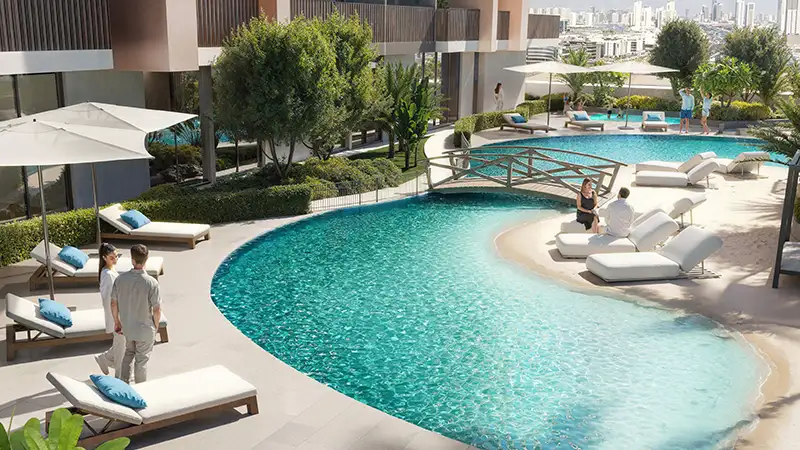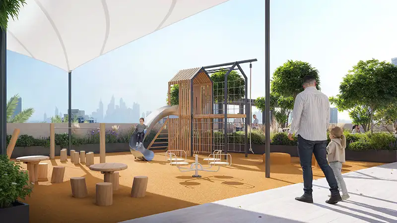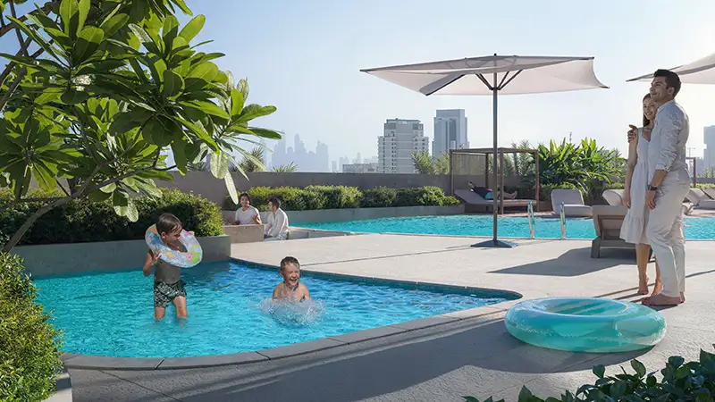 Presenting the perfect & all-inclusive mixed-use master plan of Essenlife Residence, a residential & commercial tower by Object 1 in the evolving hub of Dubai. This 28-storey captivating building offers a grand welcome at the exquisite lobbies for natives and professionals, while podiums one & two are dedicated to only office spaces. A basement and podium 3 to 5 are planned to offer the parking spaces for commercial and residential purposes. Here, the first floor above the podium offers all sorts of well-being options of a Health Club and a diverse collection of amenities, including a swimming pool, kids’ play areas, and many other playful and leisure amenities for dwellers.