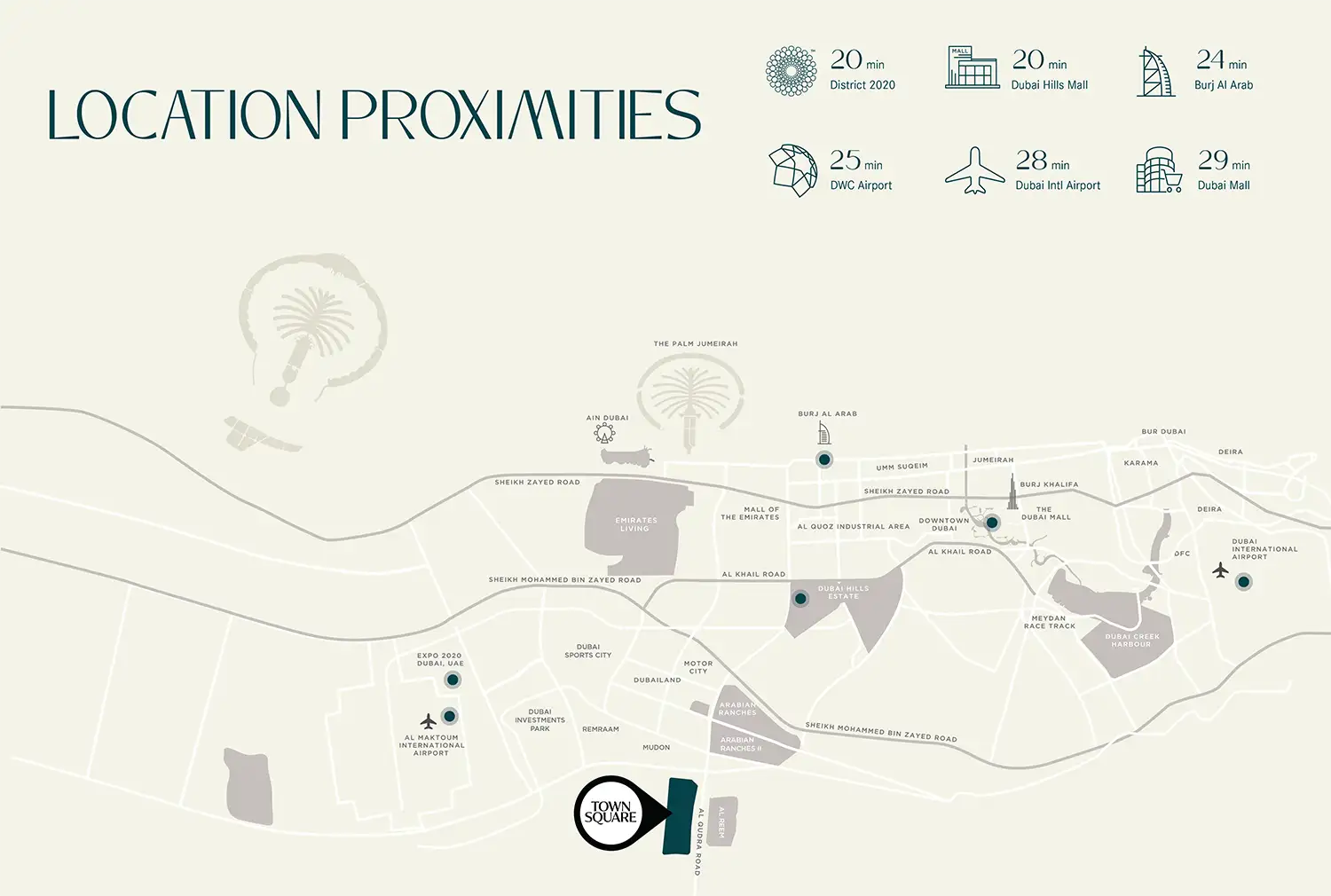 - Positioned directly alongside West Park, the project offers refreshing green views and a peaceful parkside lifestyle within Town Square Dubai.