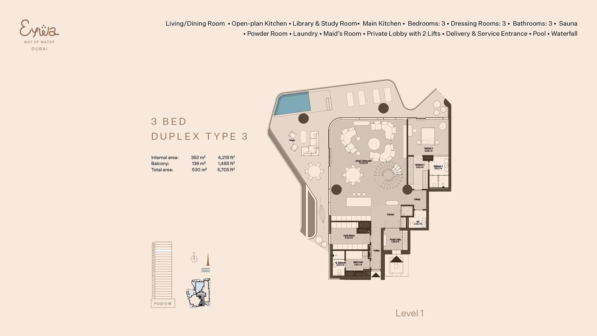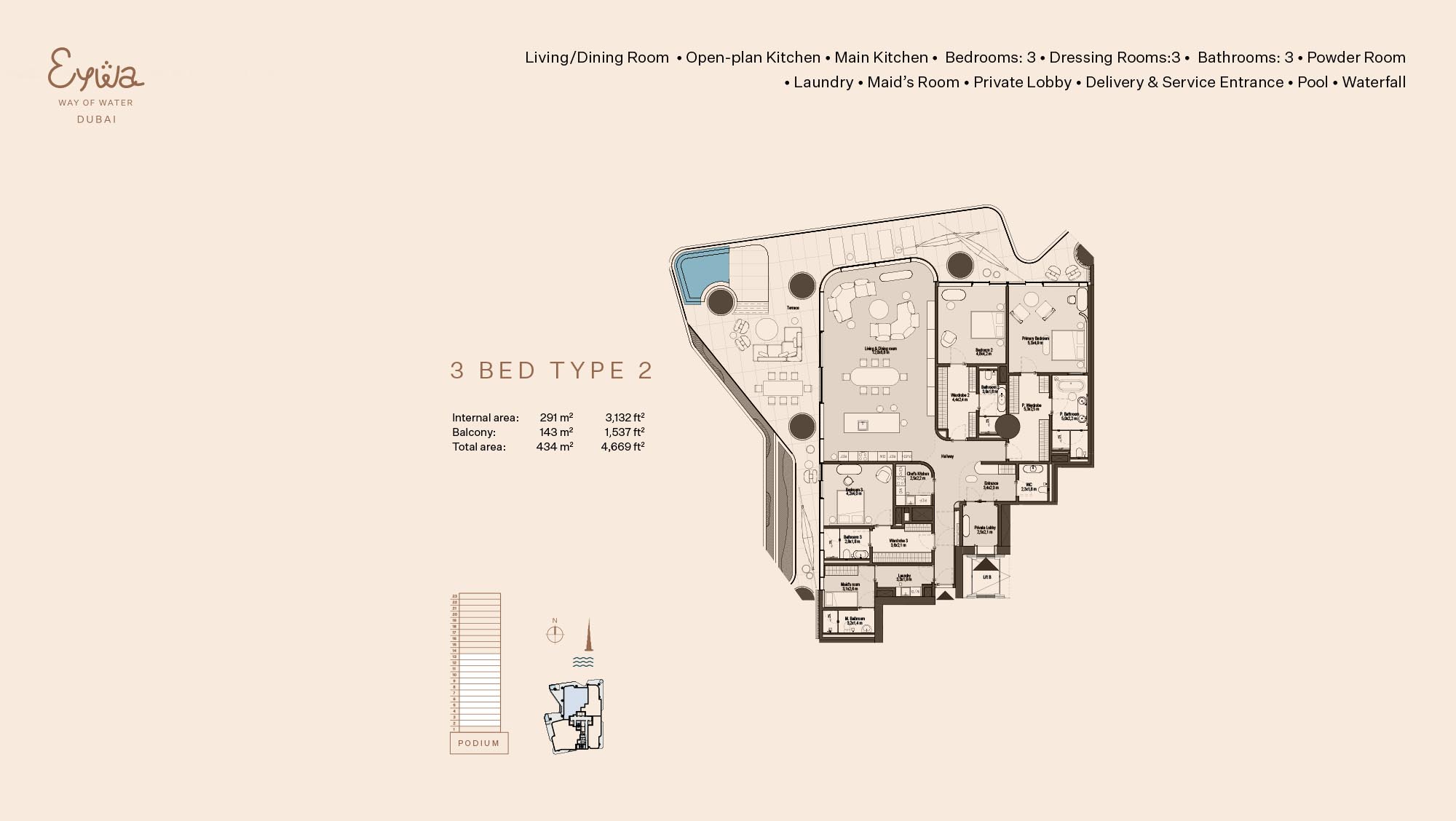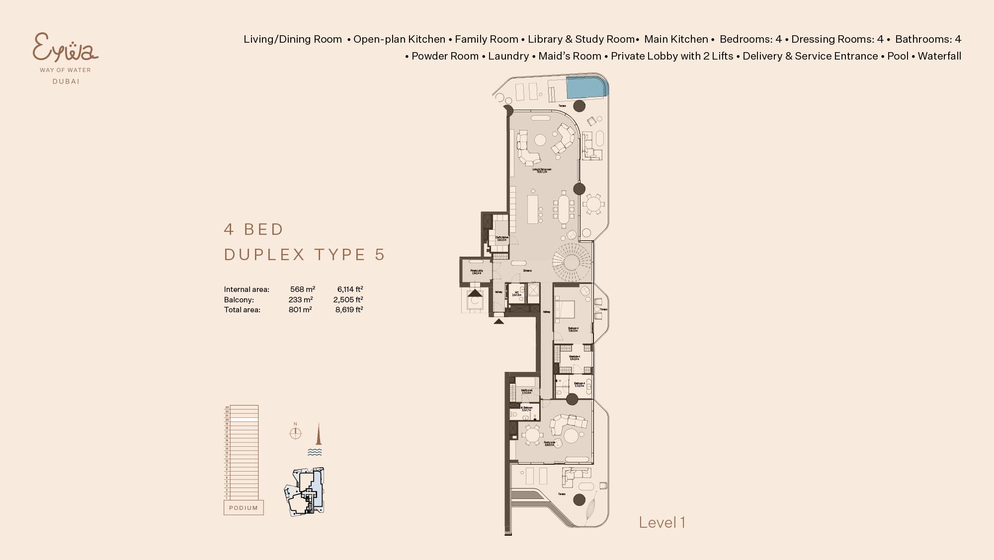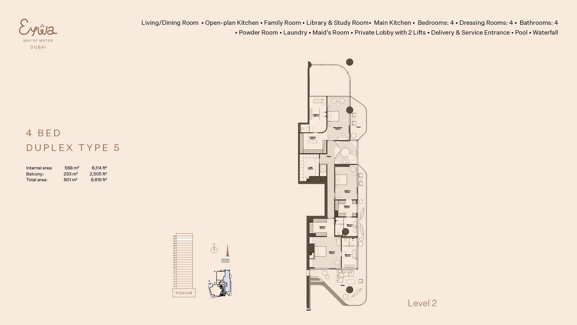 Eywa Way of Water floor plans are created keeping abreast with branded 2 to 4-bedroom apartments, 3 to 5-bed duplexes and a penthouse. The modern living needs are catered without overcrowding the neighbourhoods in any given residence. Both layouts are composed of space-saving layouts that guarantee the proper distribution of the living quarters, bedrooms, kitchen-dining areas, and balconies aimed at maximizing the amount of natural lighting and air circulating in the premises. The interiors will be designed to offer effective circulation as well as a feeling of freedom in and through the house. The inside area is also joined by large windows and long balconies to the outside space, which provides the feeling of improved living experience.