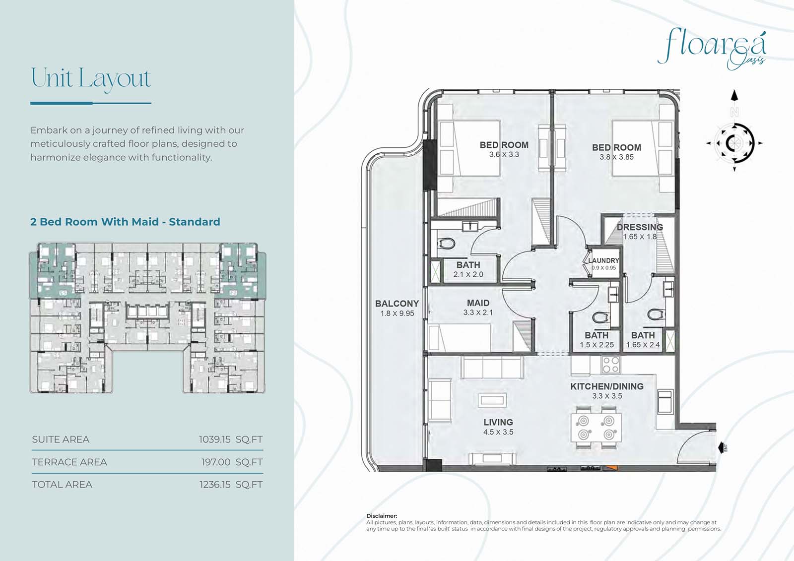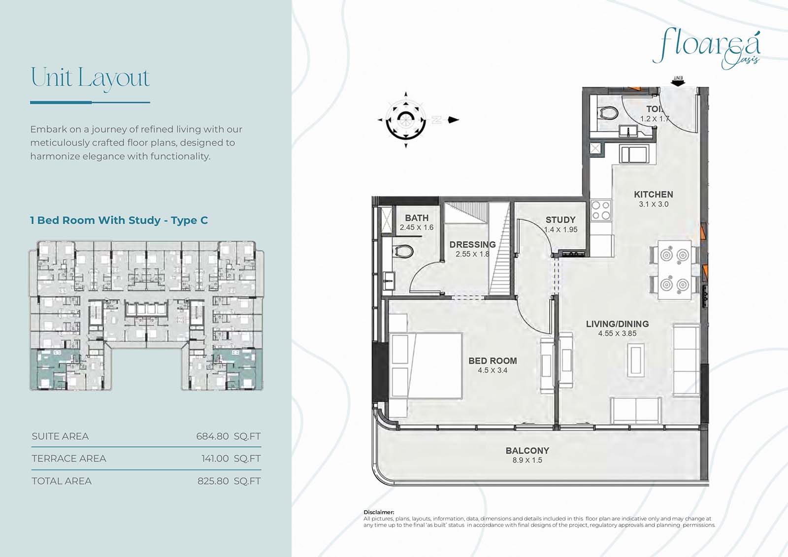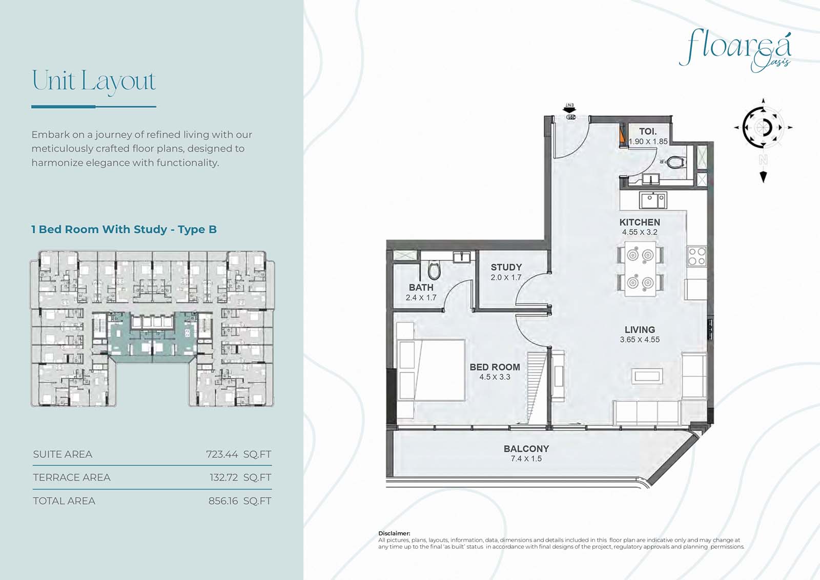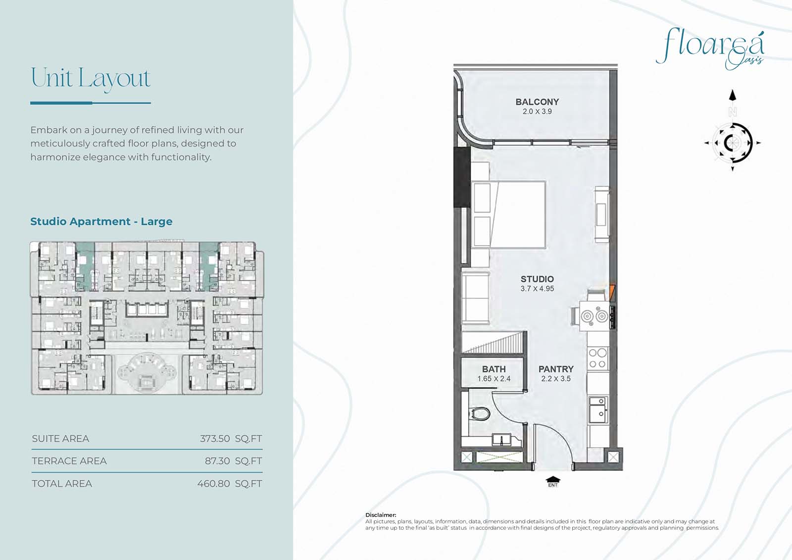 Floor plans of immaculate, stylish, and functional studios, 1 & 2-bedroom apartments are available in the latest and attentively crafted premium residence of Floarea Oasis. This mid-rise stylish and open plan building acquires a precisely curated selection of 225 home units. Each unit is beautifully planned with feature walls and Italian tiles while the urban, innovative, and functional design enhances the overall comfy and urban experiences. All the kitchens come with Teca cabinetry and fully fitted smart features to ensure exceptional essence of culinary and dining activities.