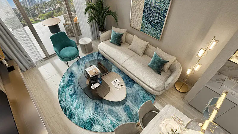 Flora Bay at Dubai Islands is the symbol of coastal modernity and high-style residential development presented by Cay Residences Development with premium apartments. As soon as you walk along its luxurious reception foyer, the development states to whom it belongs: serene beachfront living enclosed with contemporary luxury. The architecture is very much dominant, where soft and fluid lines create an impression of the soft waves on the ocean, which connects aesthetically with the surroundings of the aquatic element.