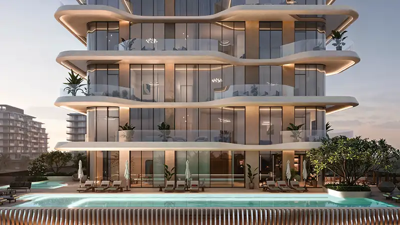 Welcome to the Flora Shore at Dubai Islands is a sublime, unique, & modern residential benchmark by Calgary Properties with luxurious 2, 3 & 4-bedroom waterfront apartments. Observe the appealing visuals of this architecture, a low-rise with G+2P+12F+Rooftop configured and crafted with precise, blending the blooming nature with ocean and contemporary abodes. Recognized by the golden hues, sleek lines, smooth curves, expensive glass walls, and stretched out balconies, this rising masterpiece is a true statement of opulence and infrastructural sophistication. Each sanctuary creates a harmonious ambience that invites you into the plush, curated, & ample storage, where grandeur & premium finishes, dynamic design, and quality furnishing foster a life full of serene comfort, style, and effortless convenience.