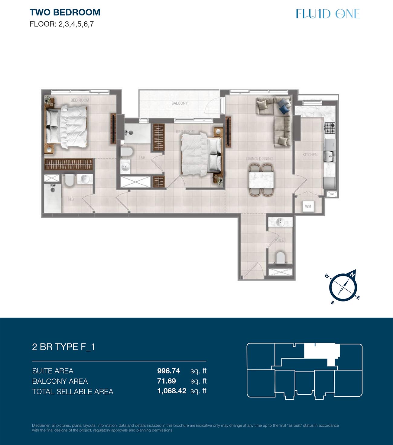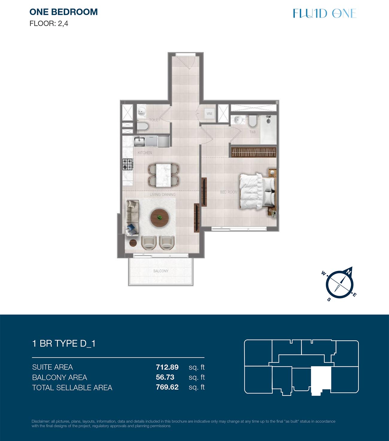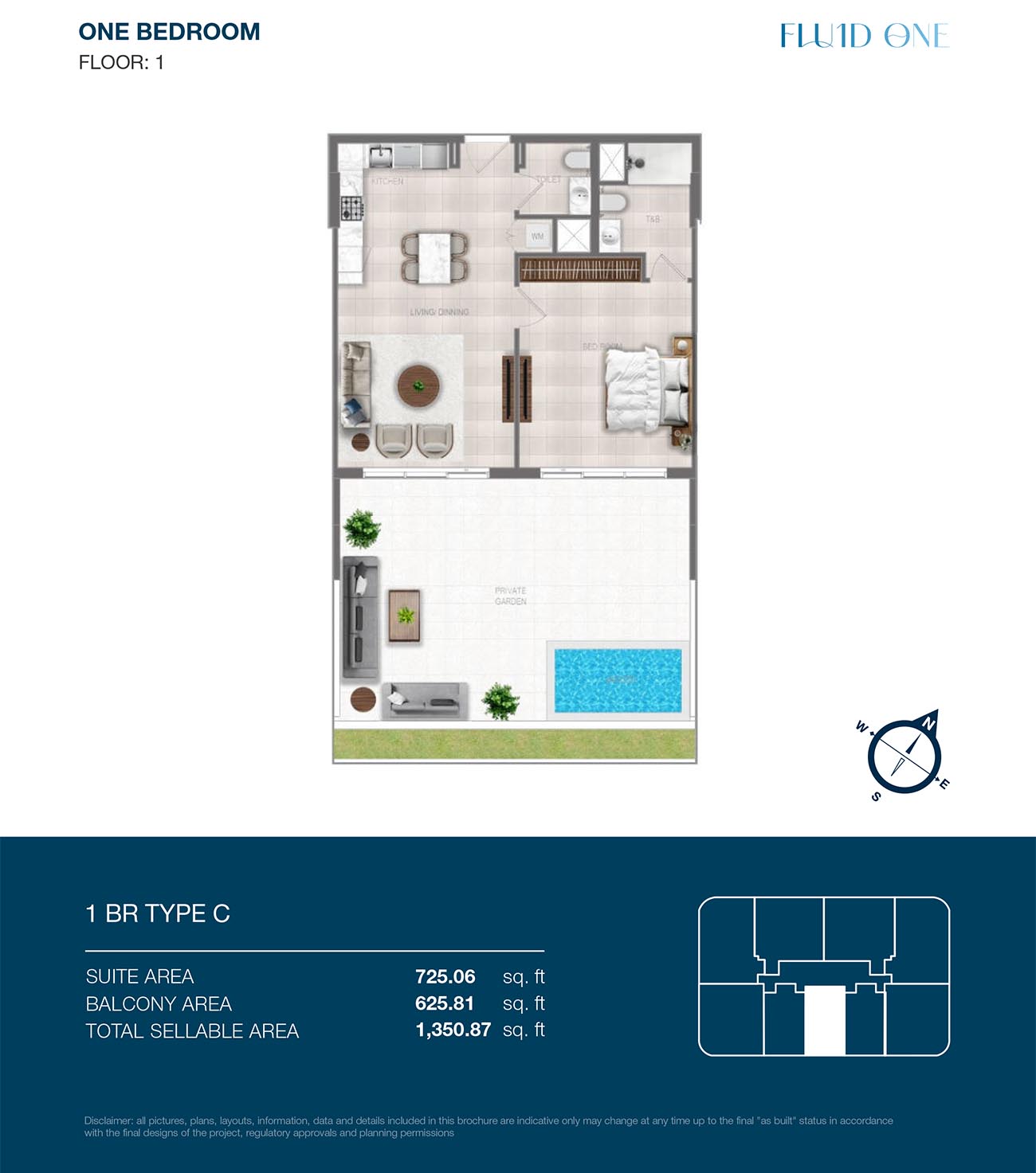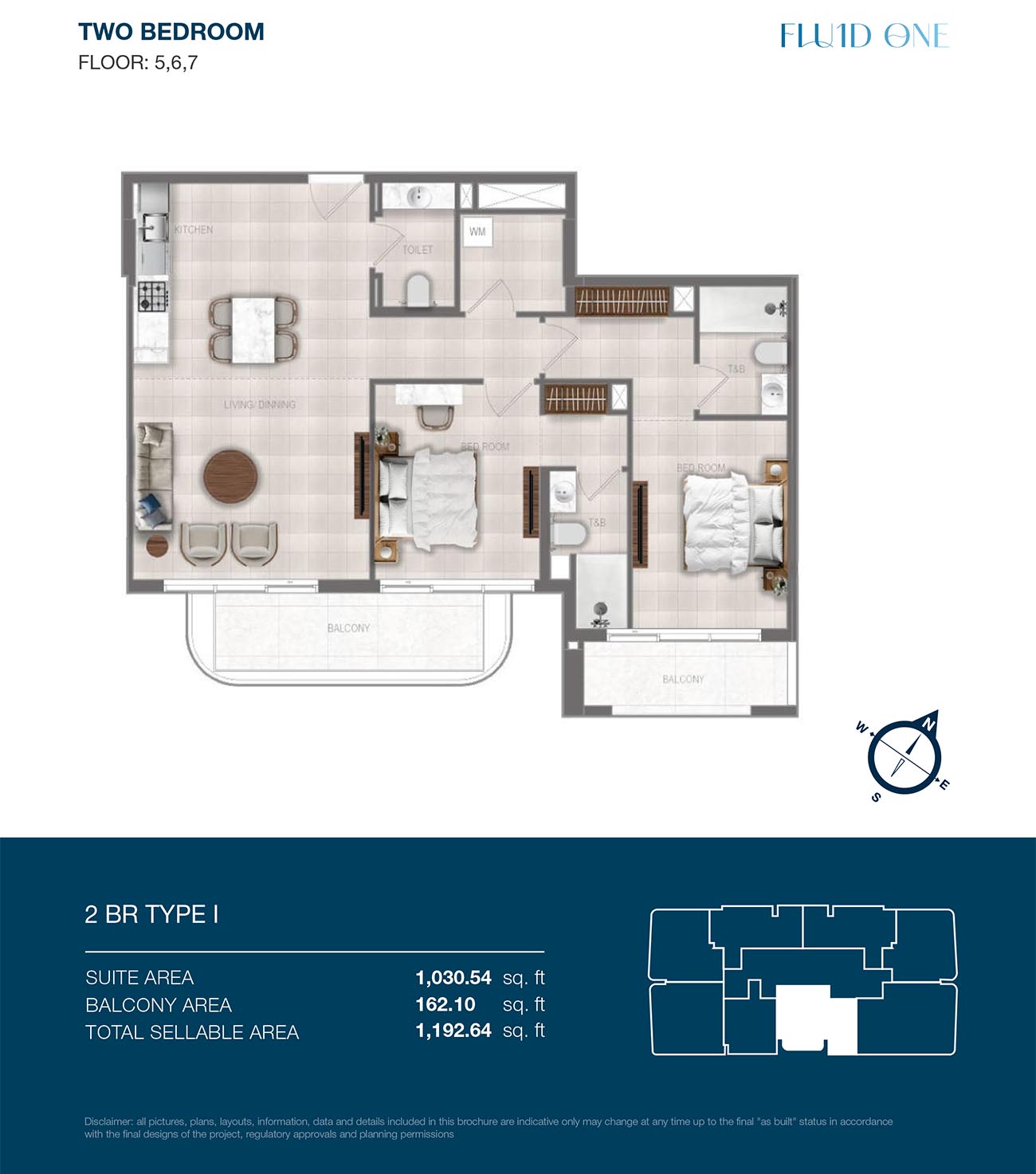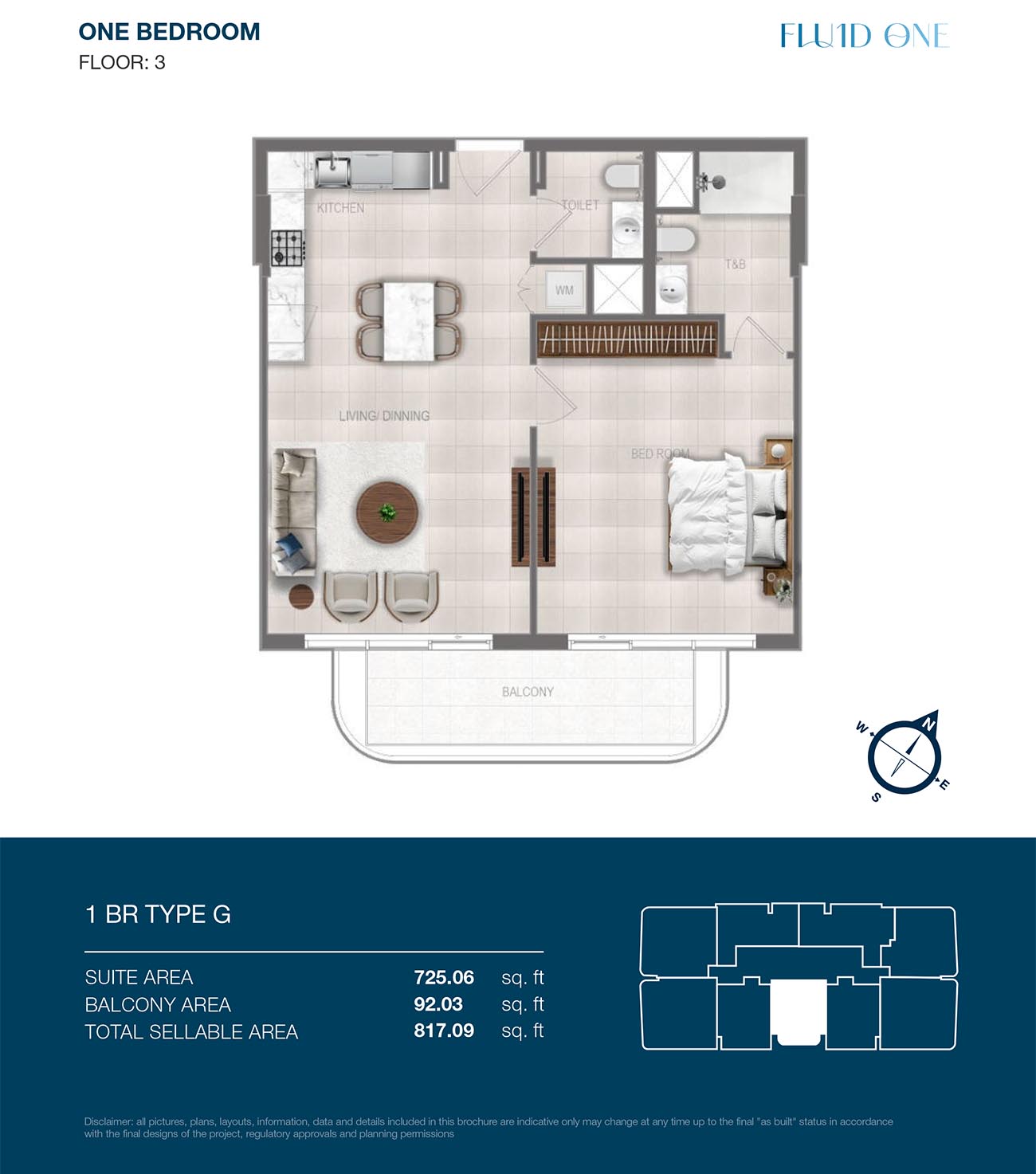 Fluid One is inspired by the aesthetic of waterfront with limited edition floor plans of 1, 2, 2.5 and 3.5 bedroom apartments with premium views. The modern living is considered in the design of each floor plan, and the layouts are intuitive and comfortable and functional. Wide balconies look out on the sea, Mina Rashid, and the Dubai skyline. On floor 8, there are the signature lifestyle facilities, such as the gym, swimming pool, kids swimming pool, clubhouse, and a sun-lounger-equipped pool deck, which is strictly organized in a more organic space sequence with the value of easy accessibility and privacy. Each design beams the idea of stress-free, relaxed life on the island.