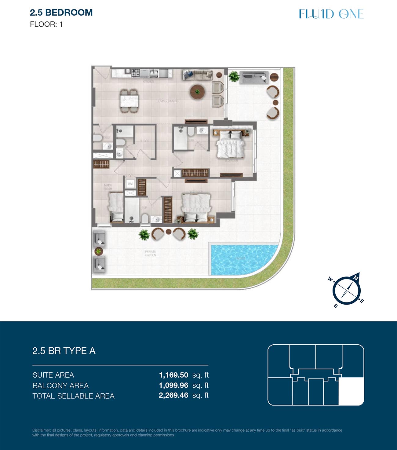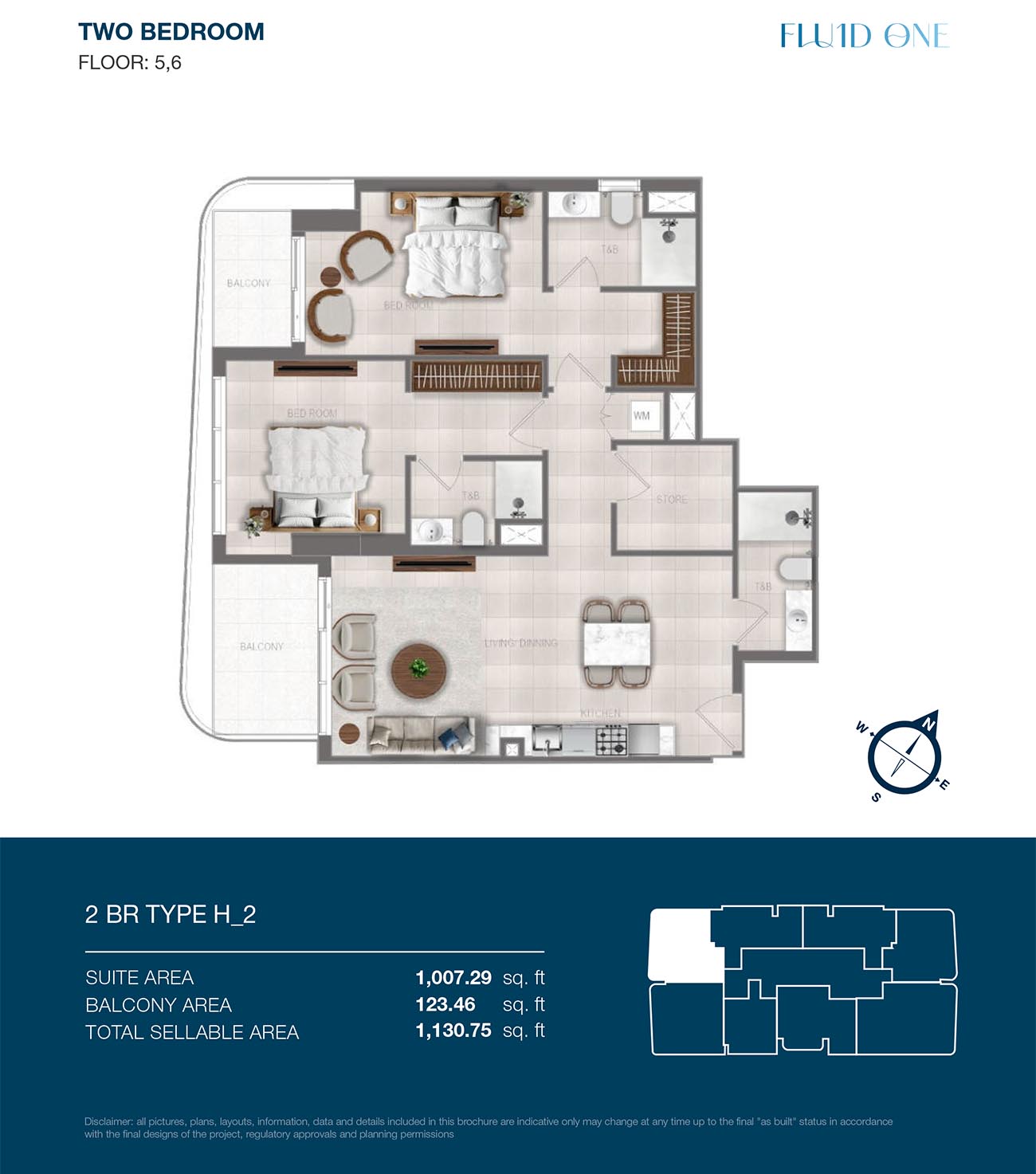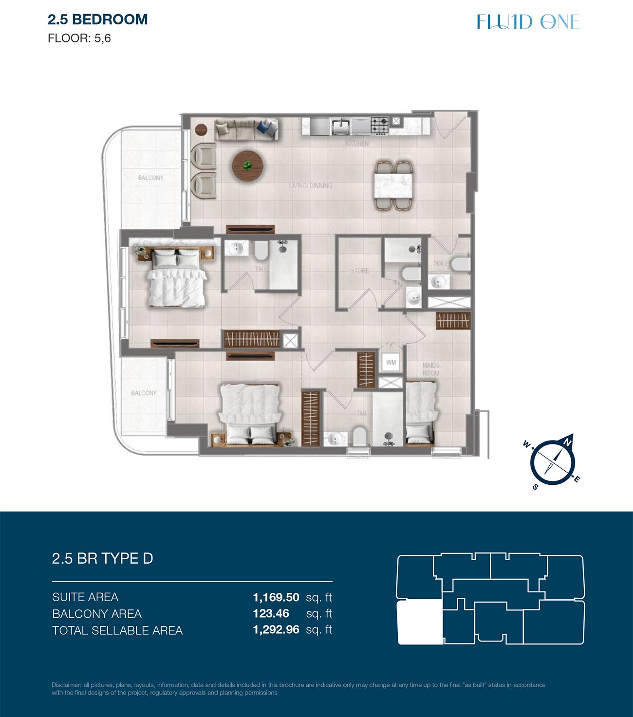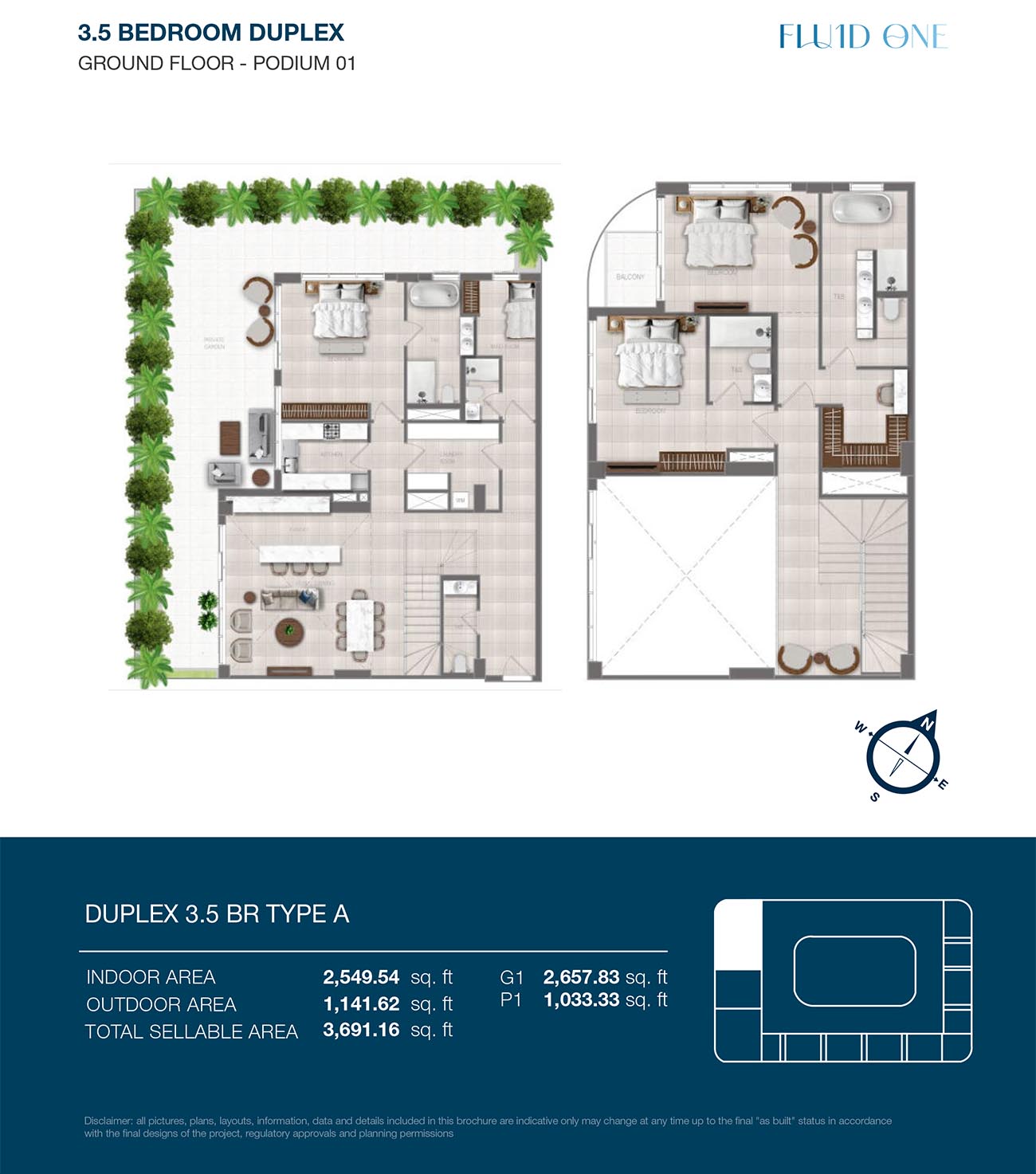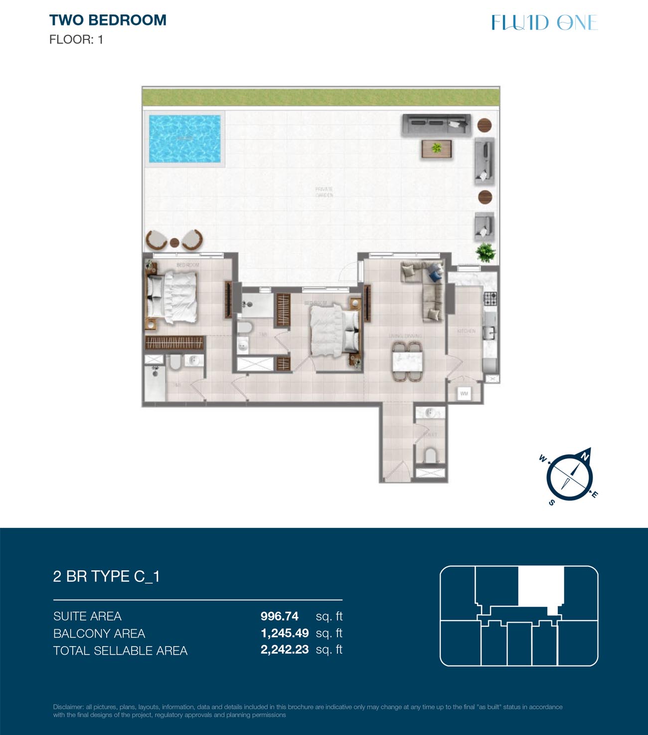 Fluid One is inspired by the aesthetic of waterfront with limited edition floor plans of 1, 2, 2.5 and 3.5 bedroom apartments with premium views. The modern living is considered in the design of each floor plan, and the layouts are intuitive and comfortable and functional. Wide balconies look out on the sea, Mina Rashid, and the Dubai skyline. On floor 8, there are the signature lifestyle facilities, such as the gym, swimming pool, kids swimming pool, clubhouse, and a sun-lounger-equipped pool deck, which is strictly organized in a more organic space sequence with the value of easy accessibility and privacy. Each design beams the idea of stress-free, relaxed life on the island.