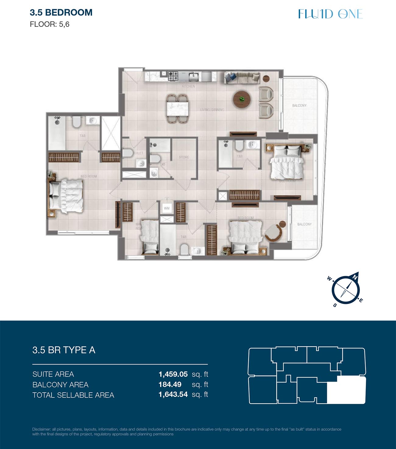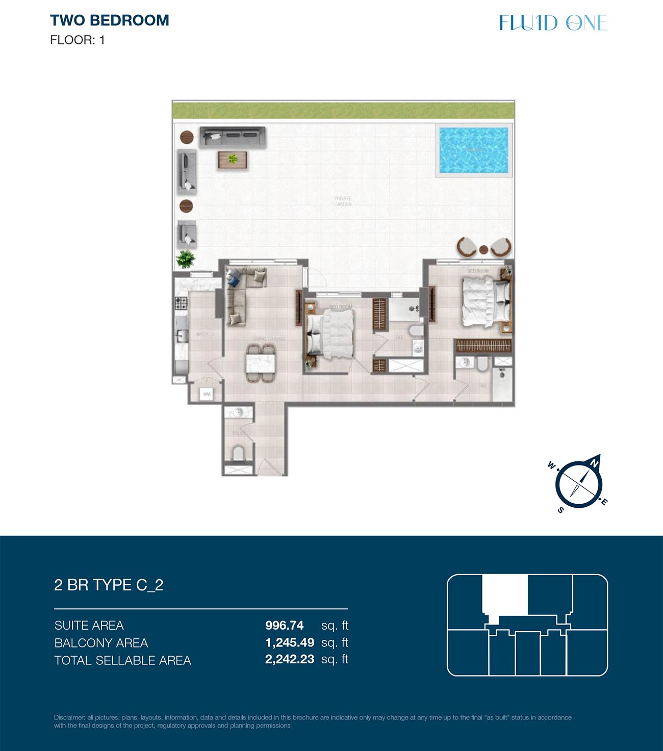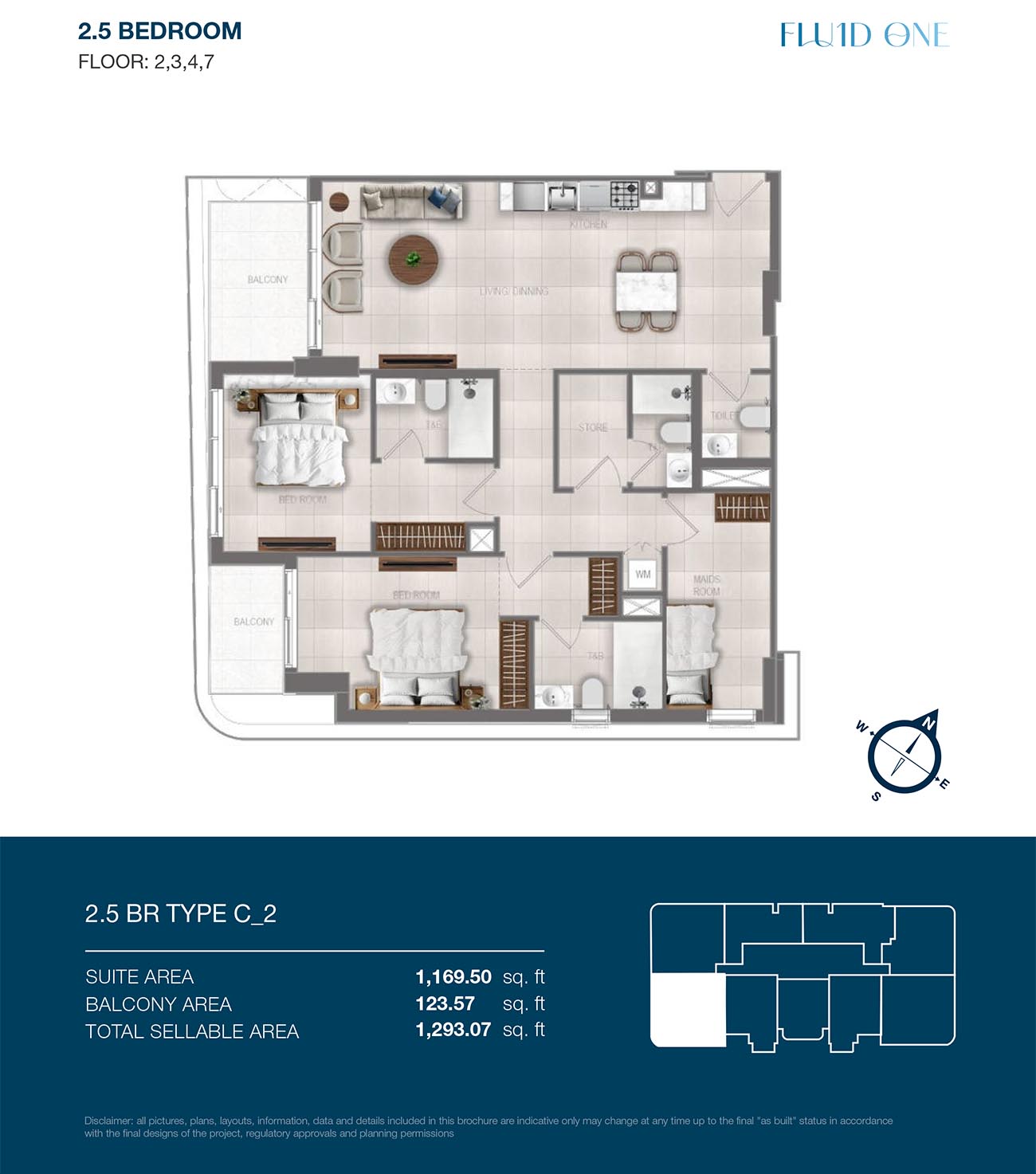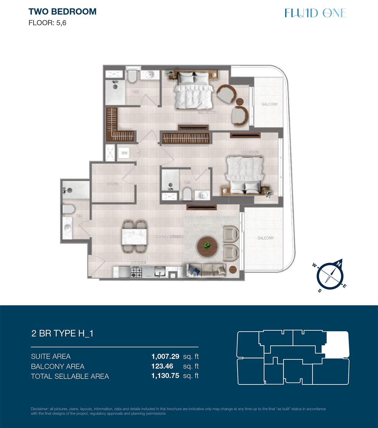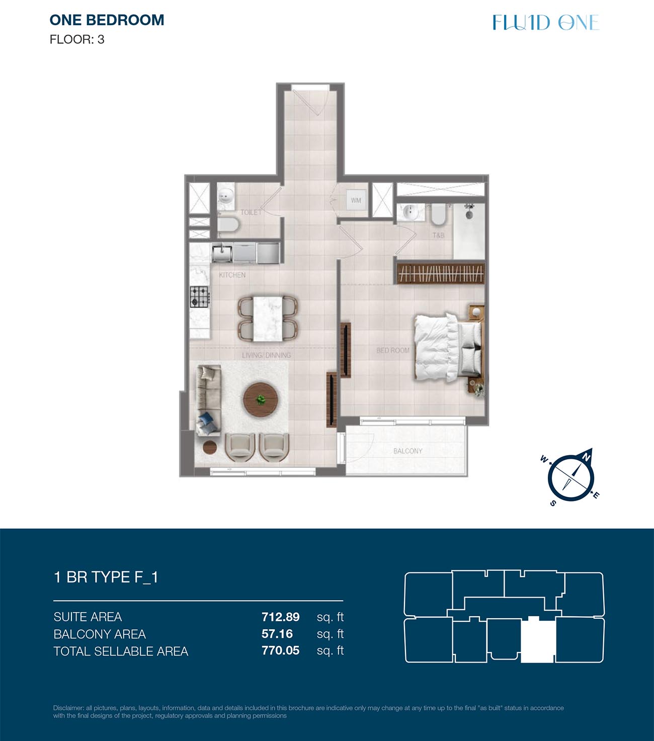 Fluid One is inspired by the aesthetic of waterfront with limited edition floor plans of 1, 2, 2.5 and 3.5 bedroom apartments with premium views. The modern living is considered in the design of each floor plan, and the layouts are intuitive and comfortable and functional. Wide balconies look out on the sea, Mina Rashid, and the Dubai skyline. On floor 8, there are the signature lifestyle facilities, such as the gym, swimming pool, kids swimming pool, clubhouse, and a sun-lounger-equipped pool deck, which is strictly organized in a more organic space sequence with the value of easy accessibility and privacy. Each design beams the idea of stress-free, relaxed life on the island.