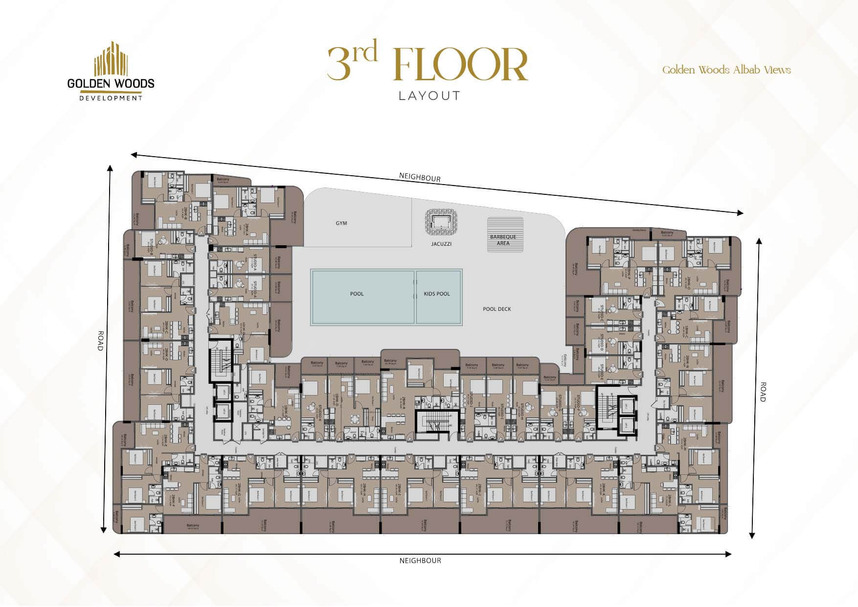 Golden Woods Albab Views provides luxury dwellings that feature different contemporary housing options at ease. The units were designed to create maximum space while delivering practical design with great visual appeal leading to the perfect living conditions. The combination of contemporary floor plans with modern kitchens and large balconies makes this development attractive because it successfully amalgamates comfortable luxury with practical needs.