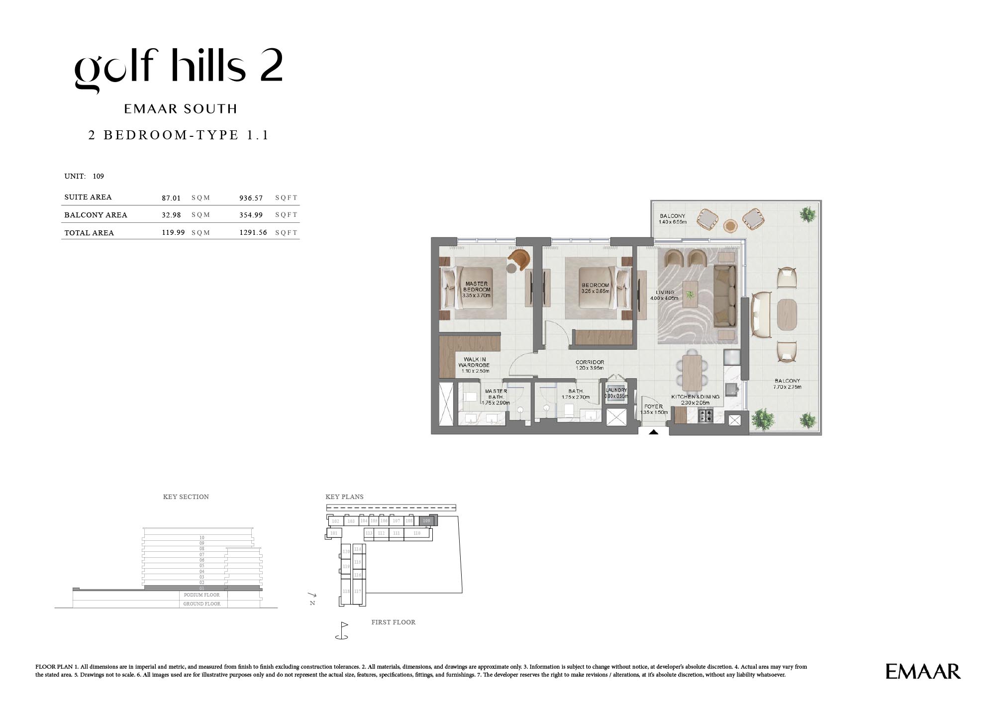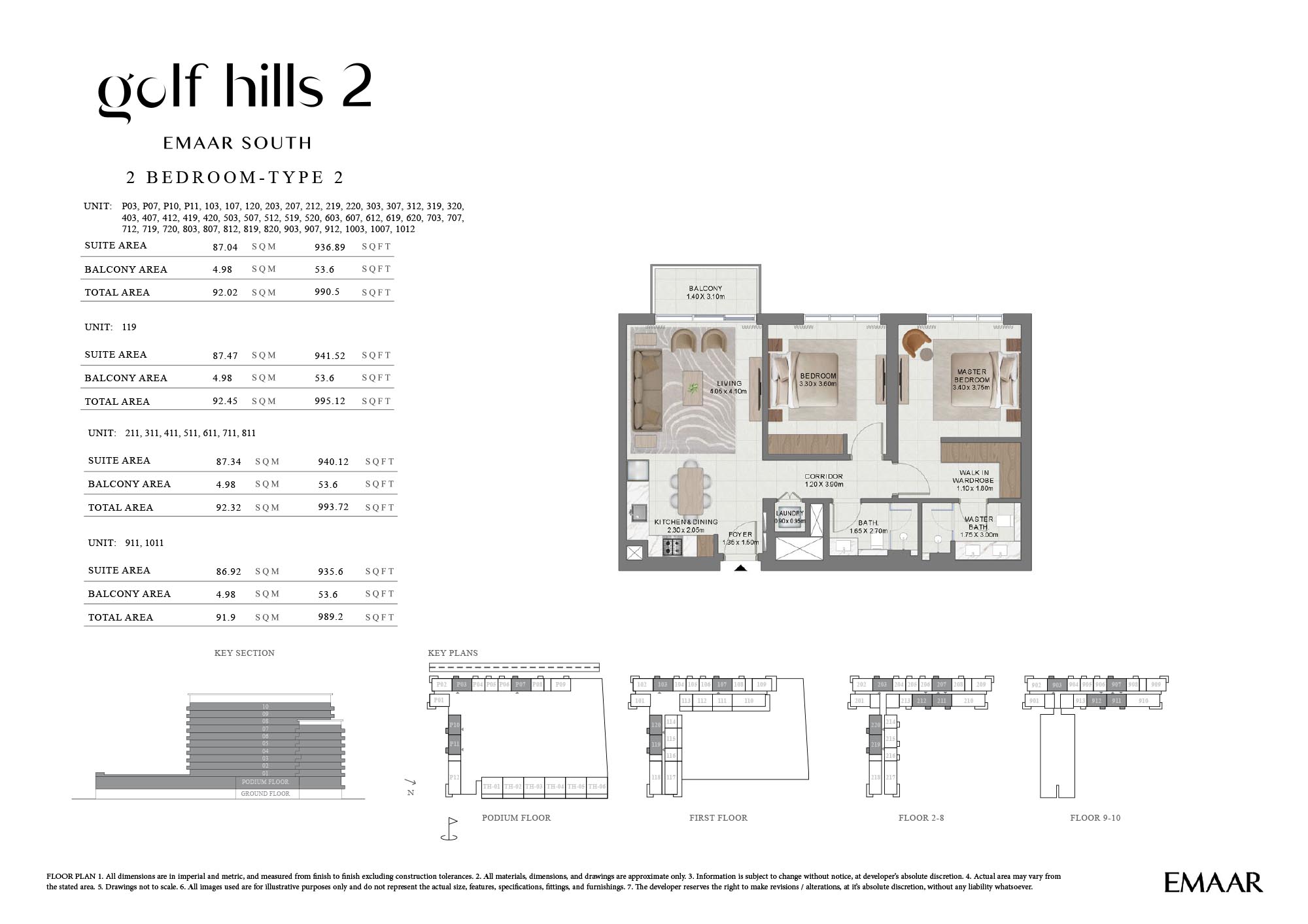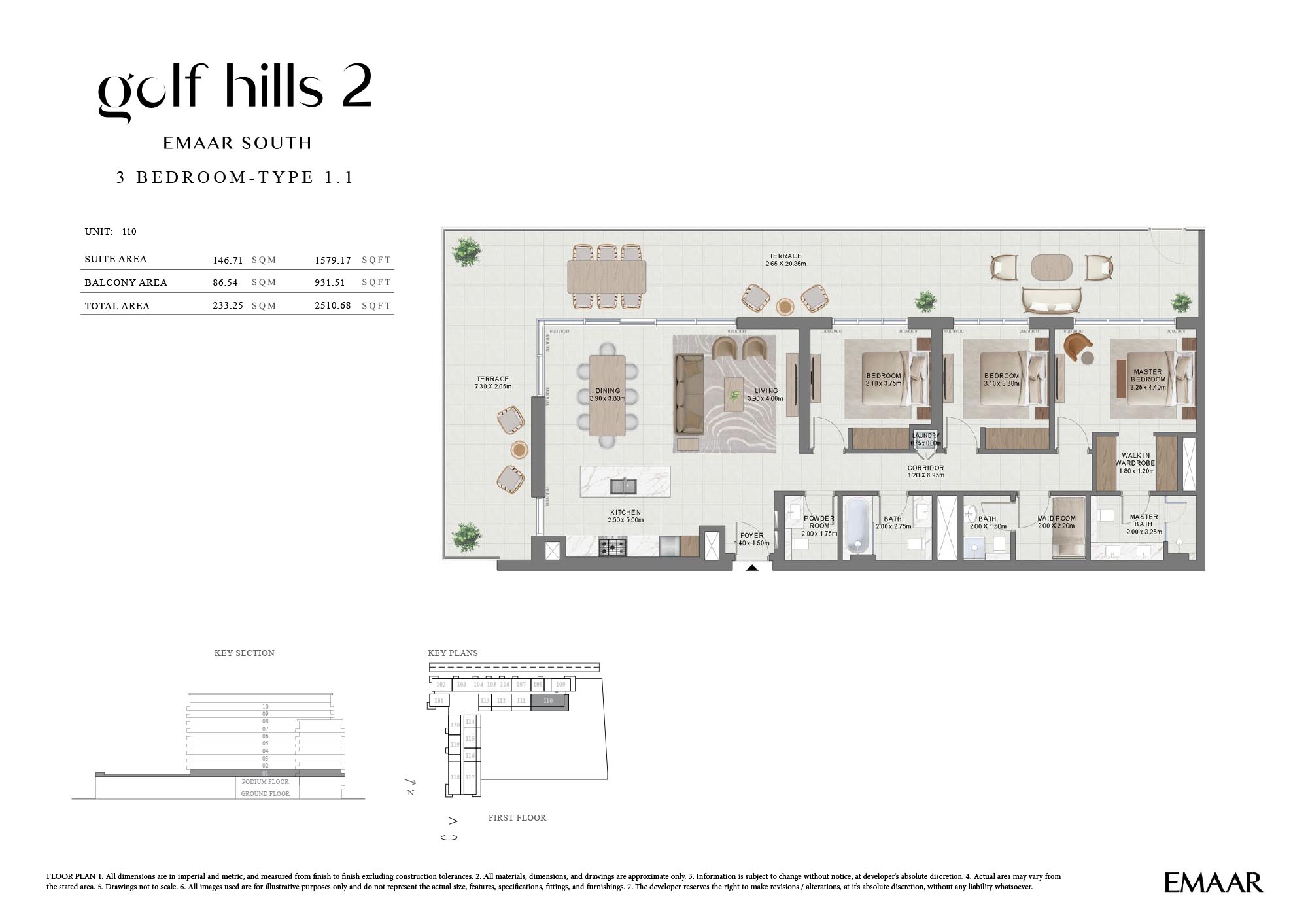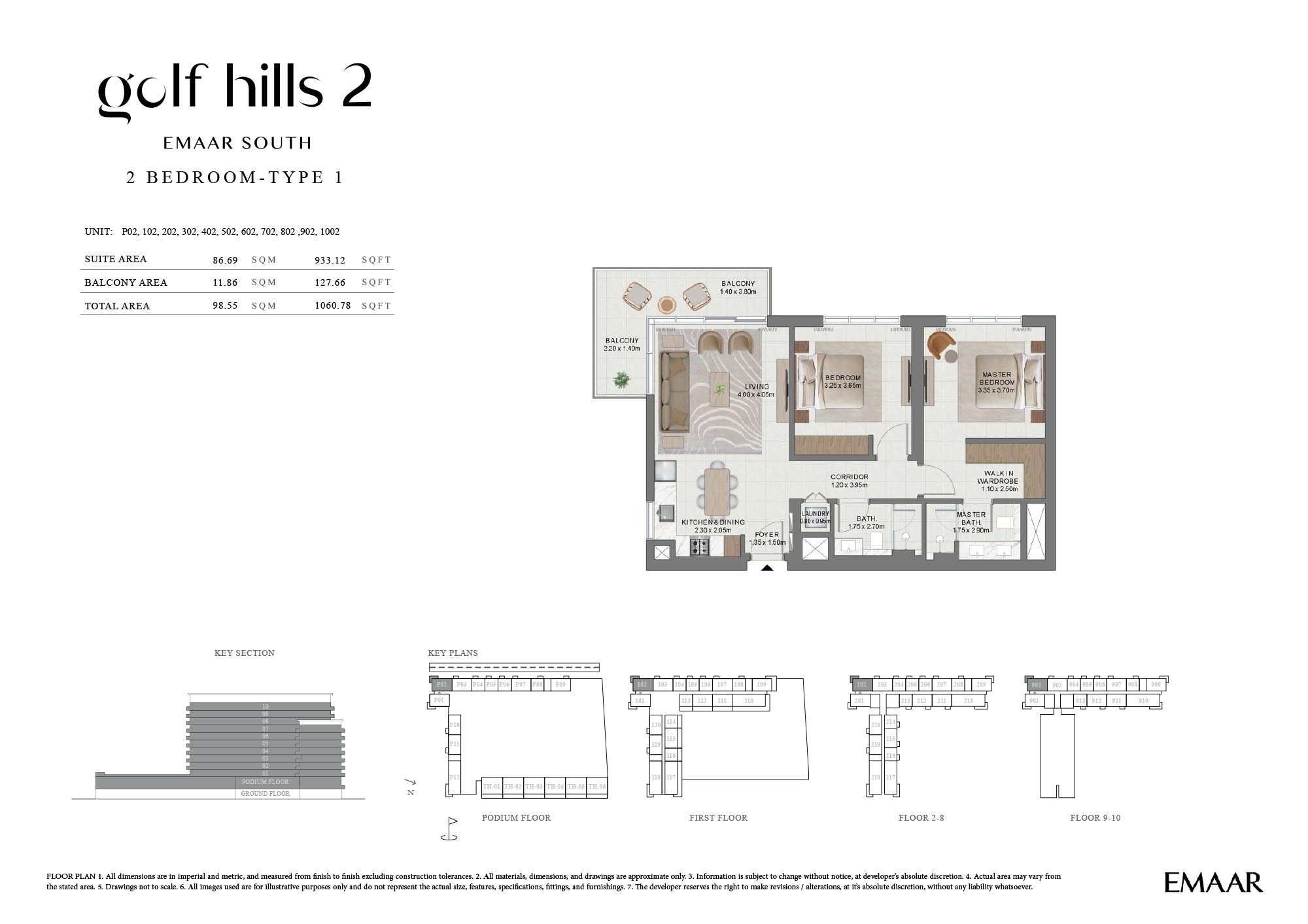 Find out the latest floor plans of Emaar Golf Hills 2, where residents find exquisite, stylish, and curated 1, 2 and 3-bedroom apartments and 3-bedroom townhouses. The building is strategically positioned to view out and at maximum air owing to the creation of close yet expansive neighbourhoods. Each unit, whether its apartment or townhouse is distinguished as an exceptional realm with an aesthetic setting, where a neutral palette, soft textures, smooth and expensive finishes, and a furnished setting in the open living room create spaces to connect and relax with families. All the bedrooms feature walk-in wardrobes and expensive windows, while the bathrooms with international fittings & fixtures create private, bright and comfortable spaces for elevating living.