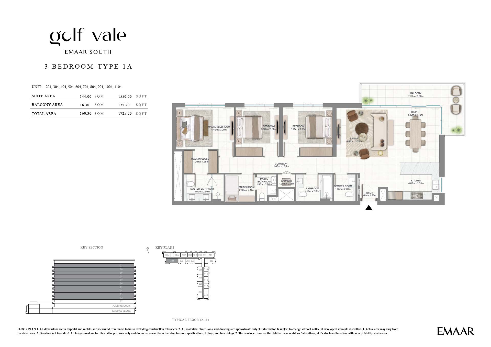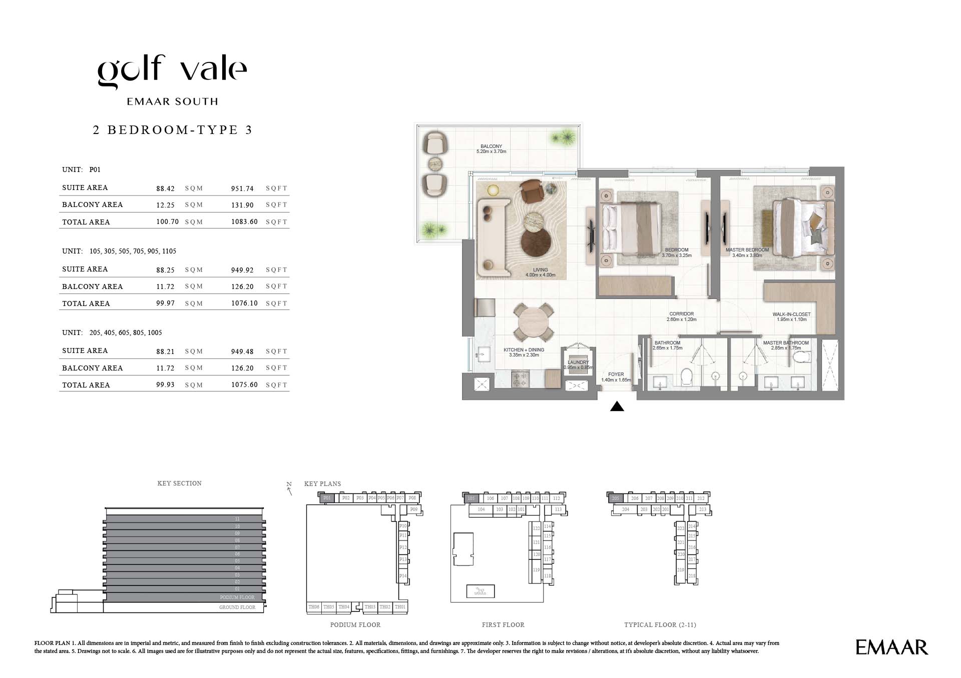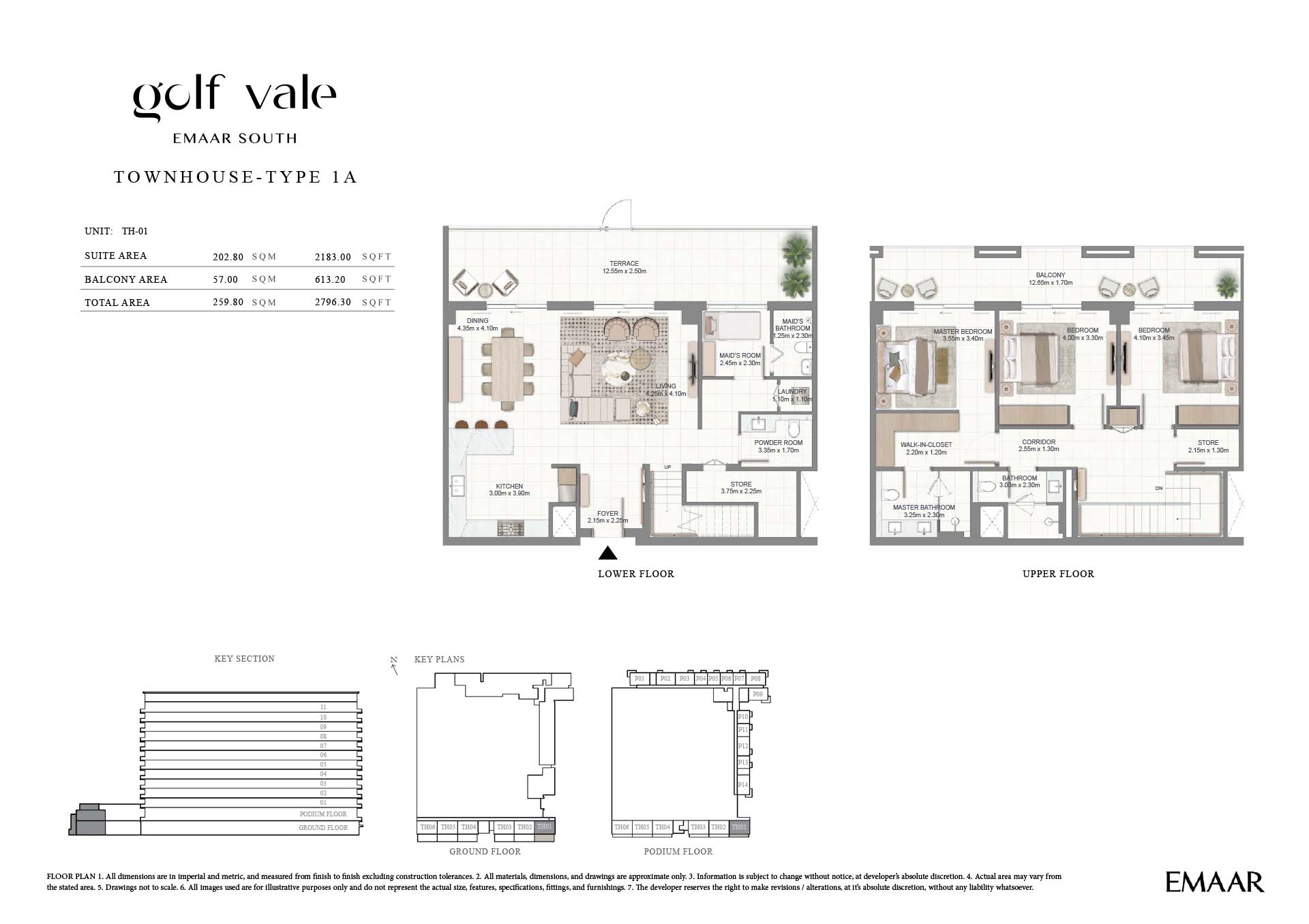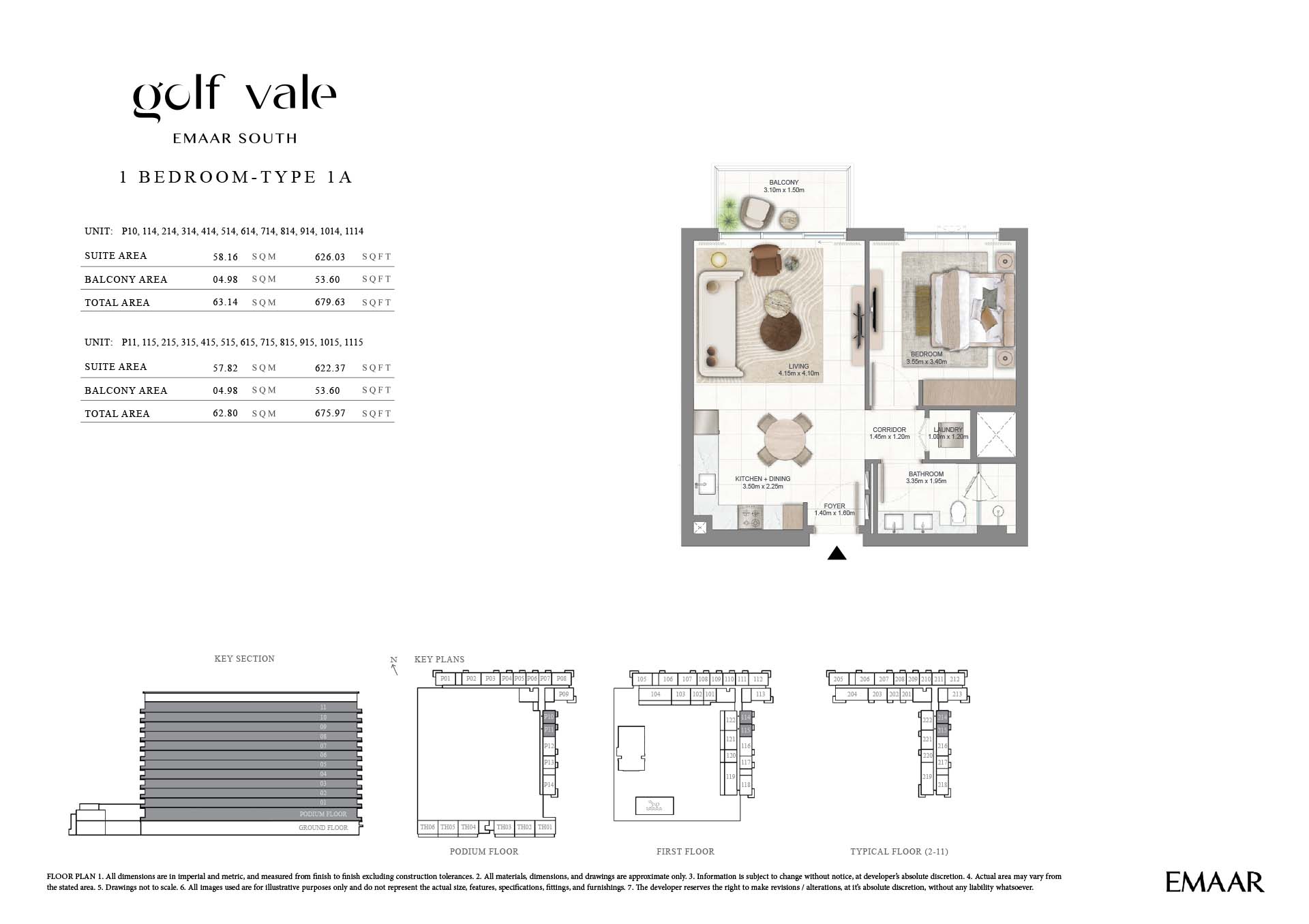 Emaar Golf Vale floor plan comprises varieties of well-planned 1, 2, and 3 bedroom apartments and 3-bedroom townhouses that focus on comfort, space optimization and modern lifestyle. The homes will also have open-space living and dining areas that ensure that they provide the feeling of spaciousness, yet they are surrounded by the practicality. The kitchens have modern finishes and functional designs, which make daily lifestyle in the kitchen convenient and trendy. Bedrooms are comfortable and come with built storage and bathrooms that are well designed.
