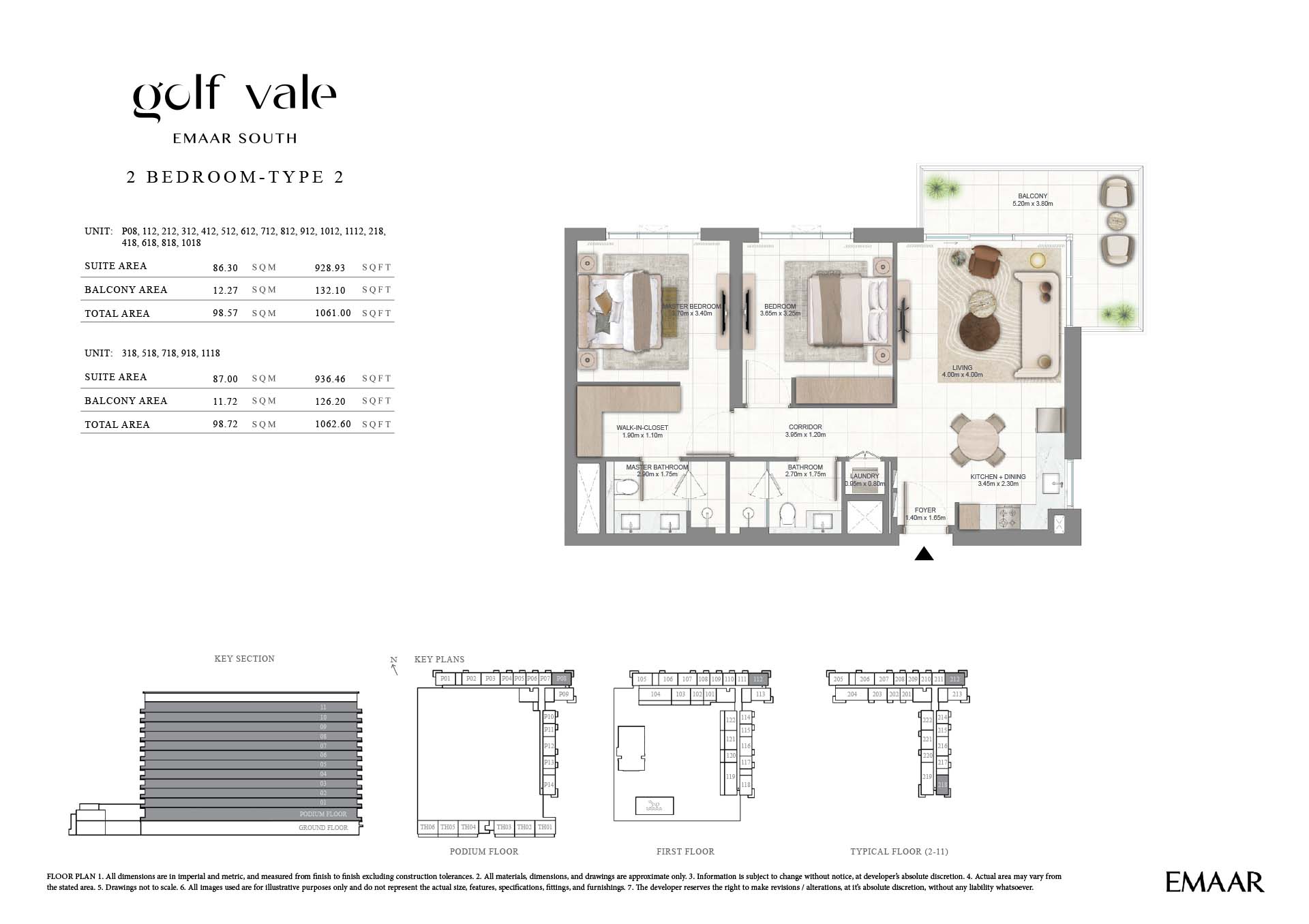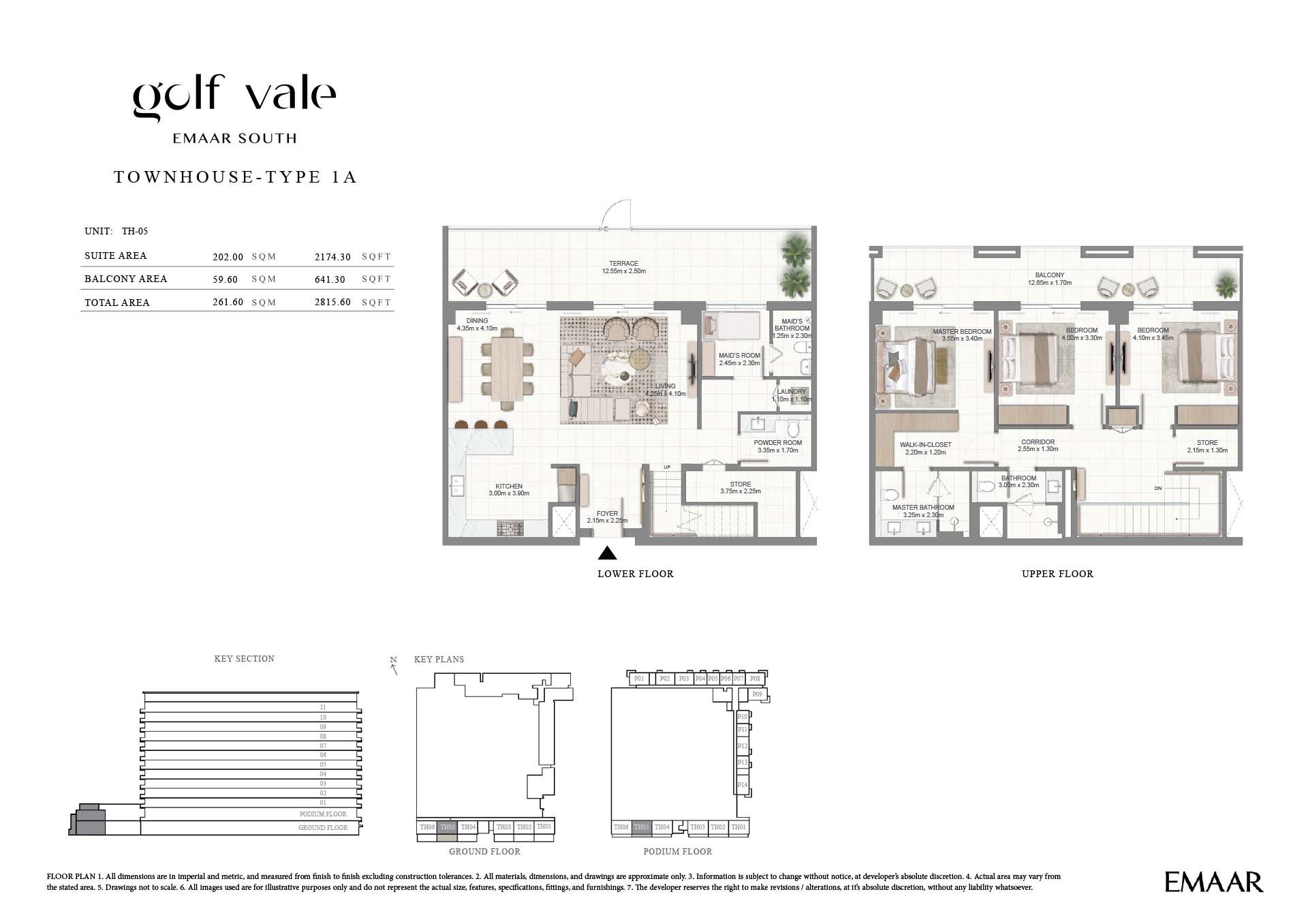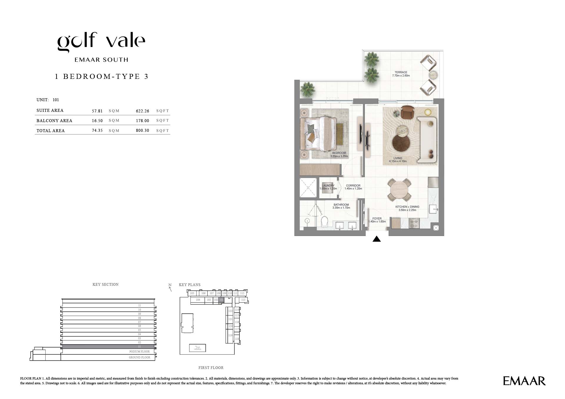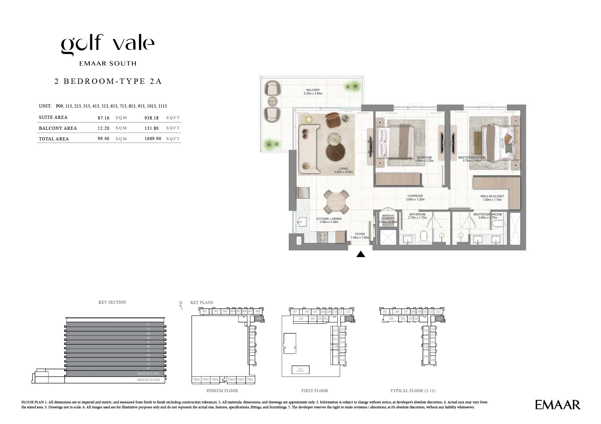 Emaar Golf Vale floor plan comprises varieties of well-planned 1, 2, and 3 bedroom apartments and 3-bedroom townhouses that focus on comfort, space optimization and modern lifestyle. The homes will also have open-space living and dining areas that ensure that they provide the feeling of spaciousness, yet they are surrounded by the practicality. The kitchens have modern finishes and functional designs, which make daily lifestyle in the kitchen convenient and trendy. Bedrooms are comfortable and come with built storage and bathrooms that are well designed.
