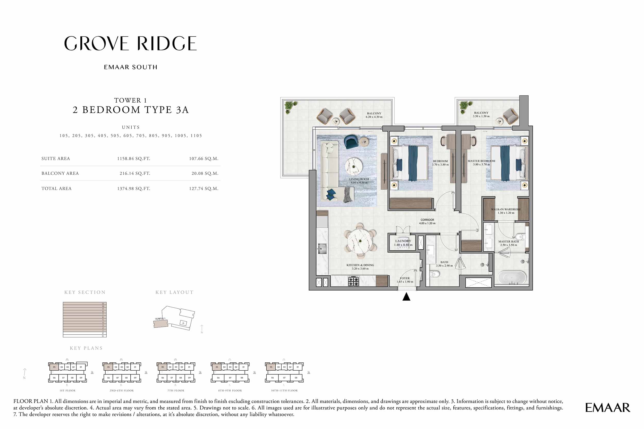| Tower 1 | 2 Bedrooms | 1st-11th Floor (Type 3A-Unit-105-1105) | 1374.98 Sq Ft | Click Here |