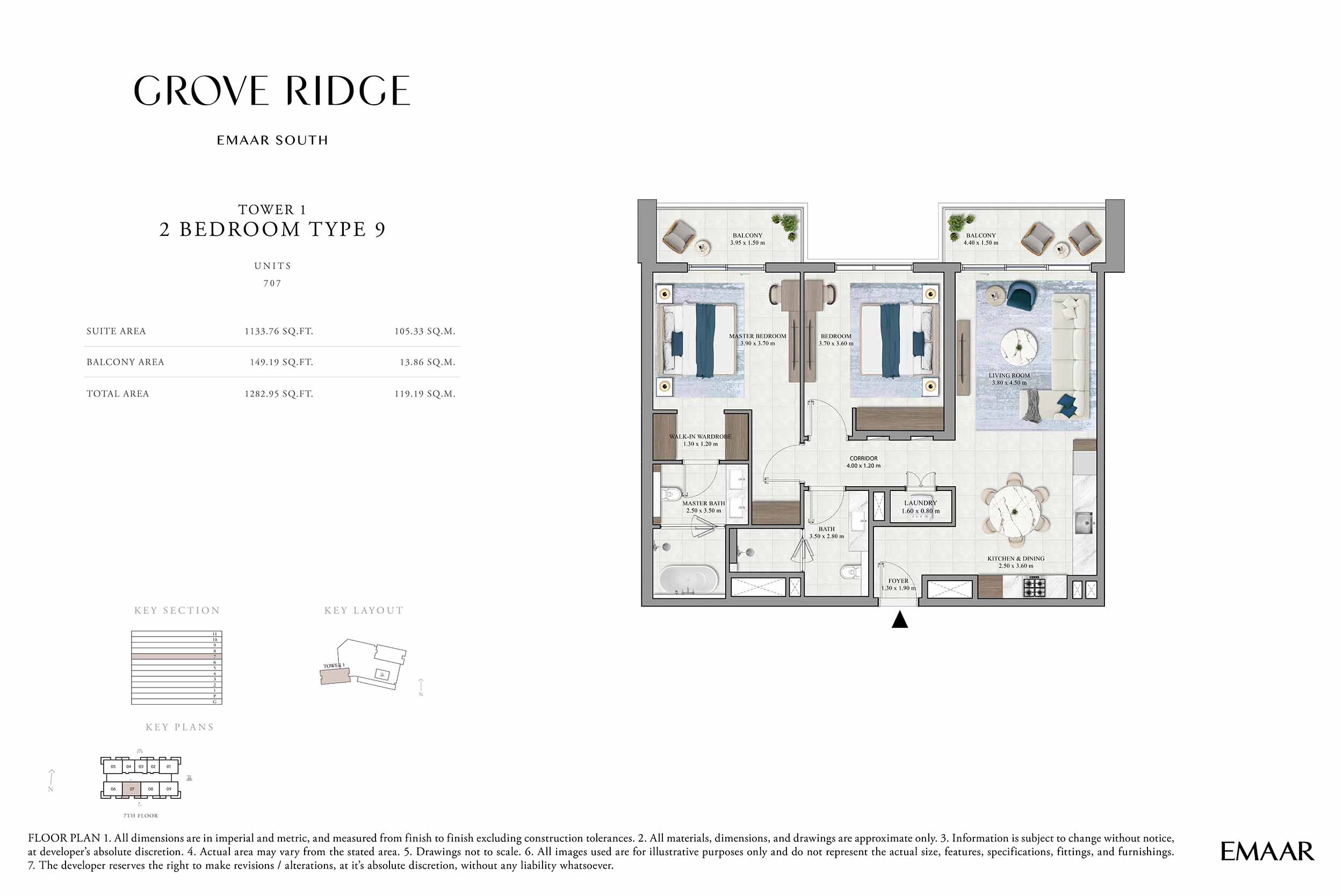 | Tower 1 | 2 Bedrooms | 7th Floor (Type 9-Unit-707) | 1282.95 Sq Ft | Click Here |