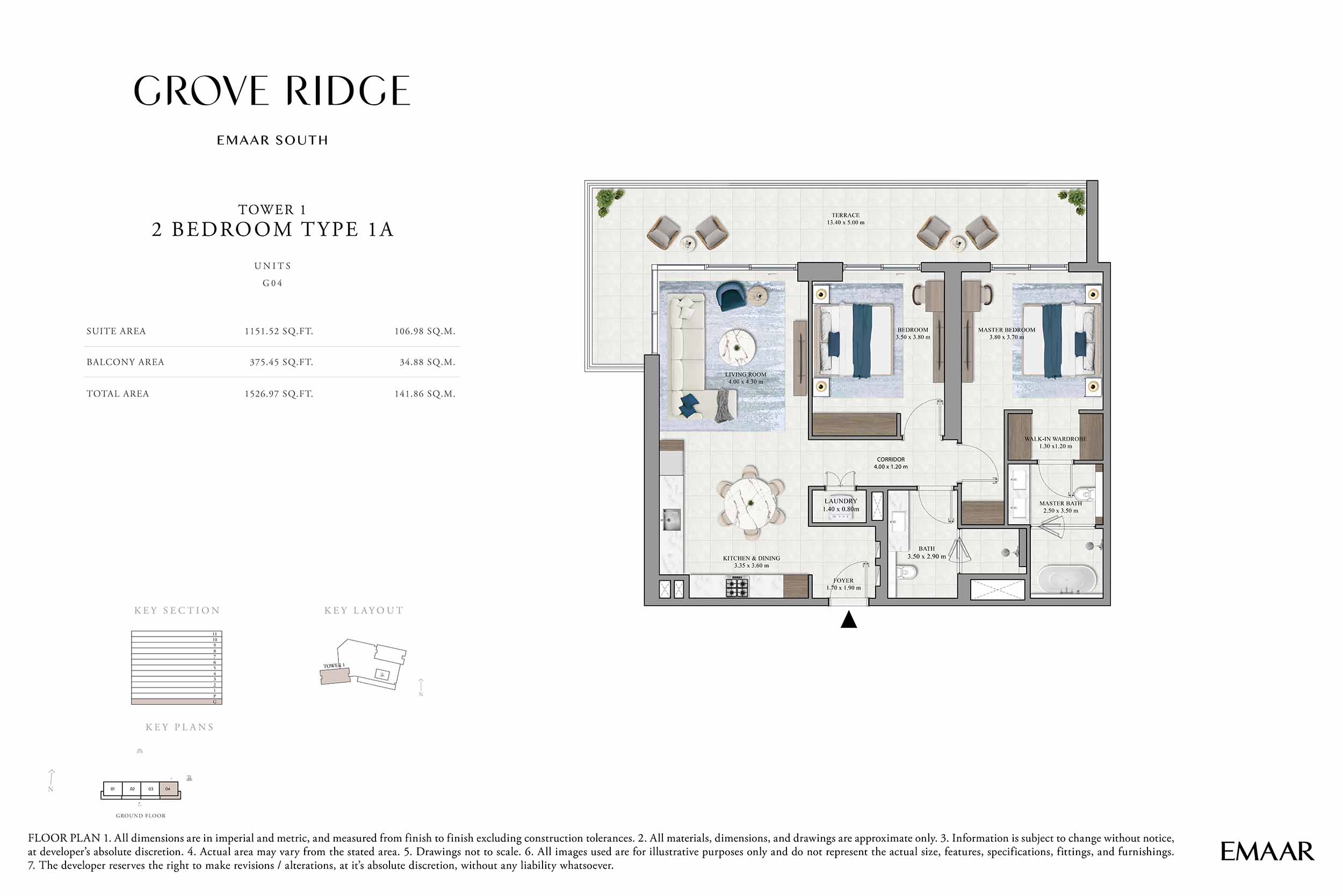 | Tower 1 | 2 Bedrooms | Gorund Floor (Type 1A-Unit-G04) | 1526.97 Sq Ft | Click Here |