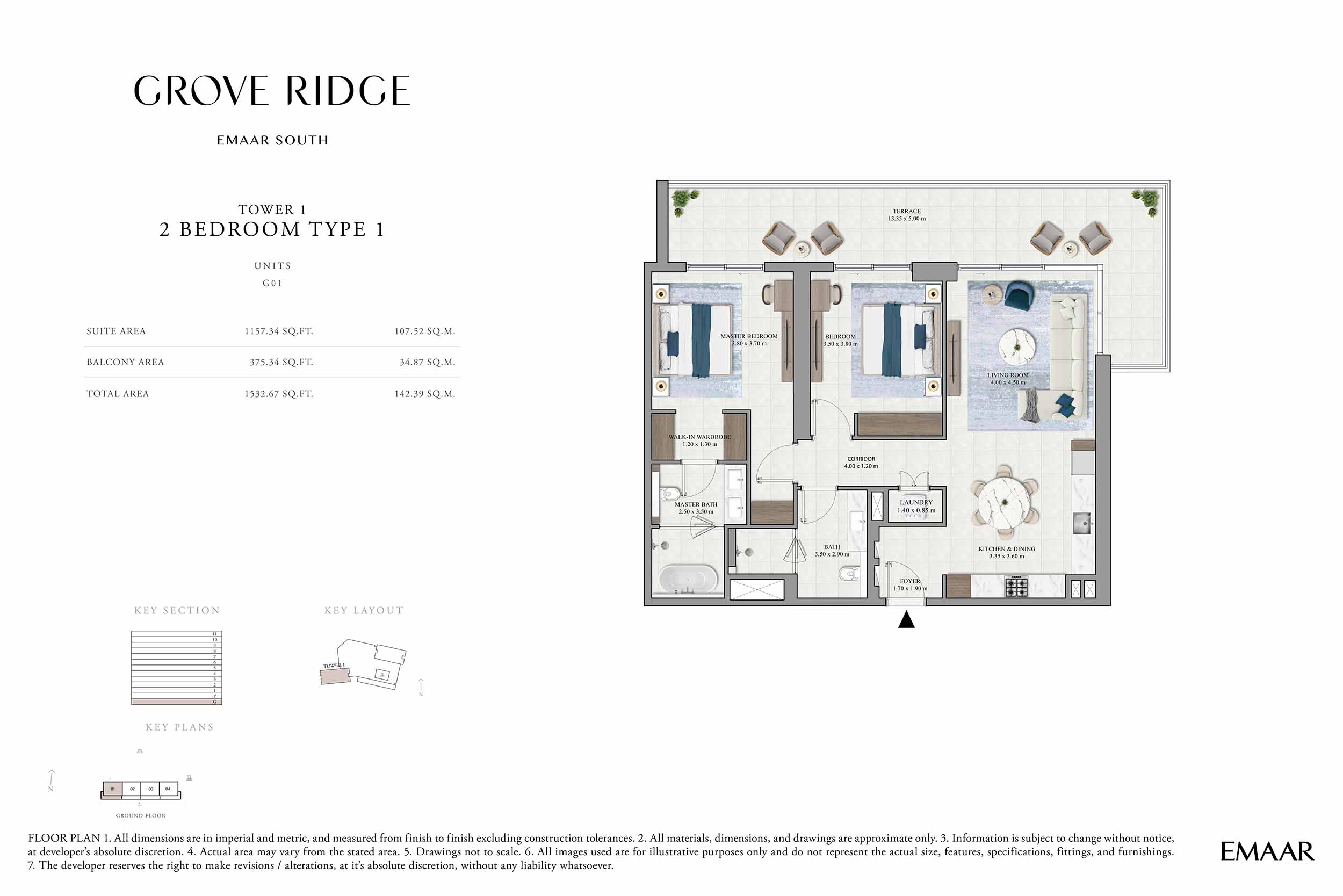 | Tower 1 | 2 Bedrooms | Gorund Floor (Type 1-Unit-G01) | 1532.67 Sq Ft | Click Here |
